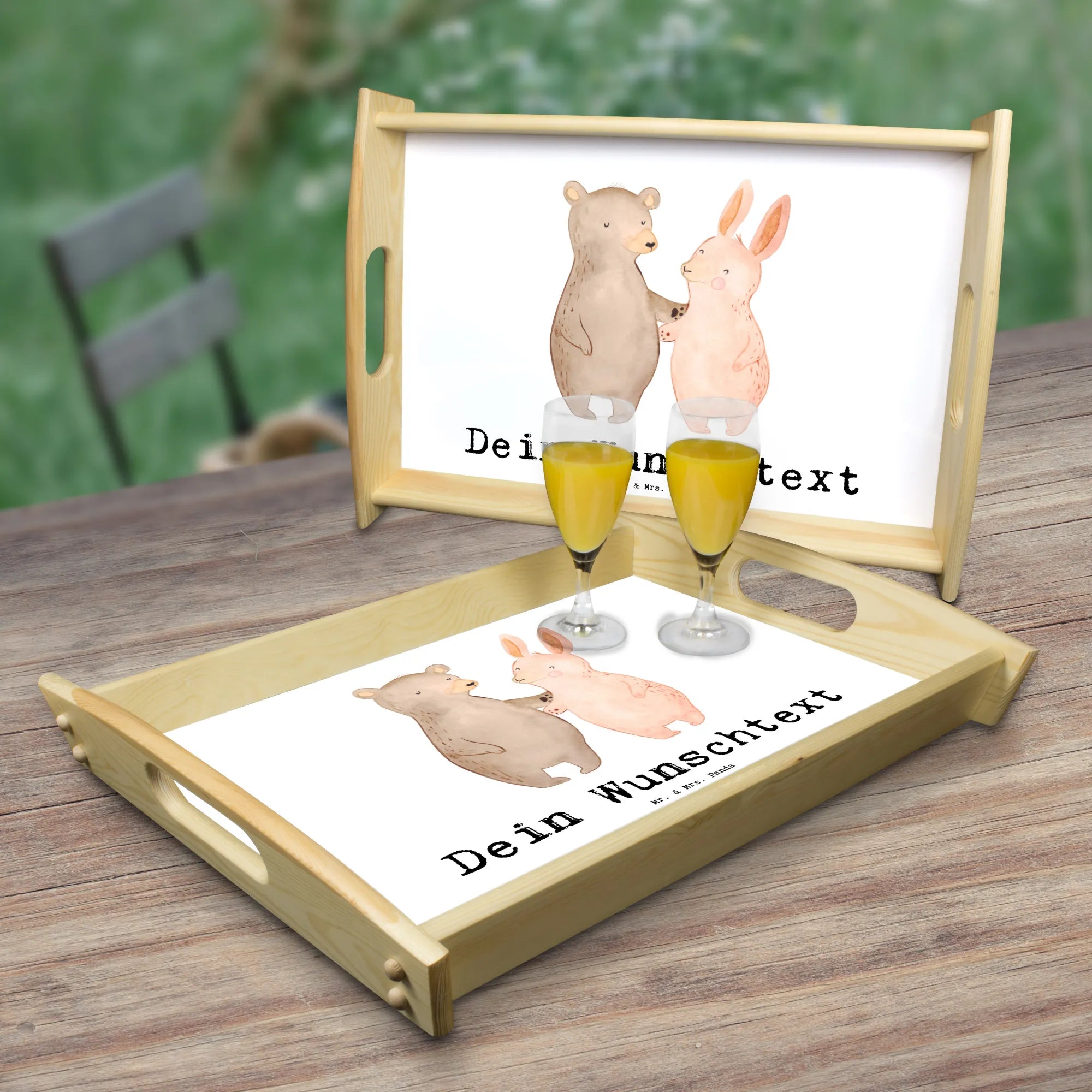 Bring joy to your gatherings with our personalized serving tray from Mr. & Mrs. Panda! Made from high-quality glazed real wood, this stunning tray measures 480 mm x 365 mm x 65 mm, making it perfect for both everyday use and special occasions. With delightful motifs and sayings, you can personalize it with your own text or names to make it truly special. Designed with ergonomics in mind, it features handles for easy carrying and anti-slip pads to keep everything in place. Its scratch-resistant surface ensures it maintains its beauty, and cleaning is a breeze with a damp cloth—just steer clear of soaking it! Remember, custom pieces may require a little extra time to create. Enjoy unforgettable moments with this lovely tray, which also serves as a thoughtful gift!