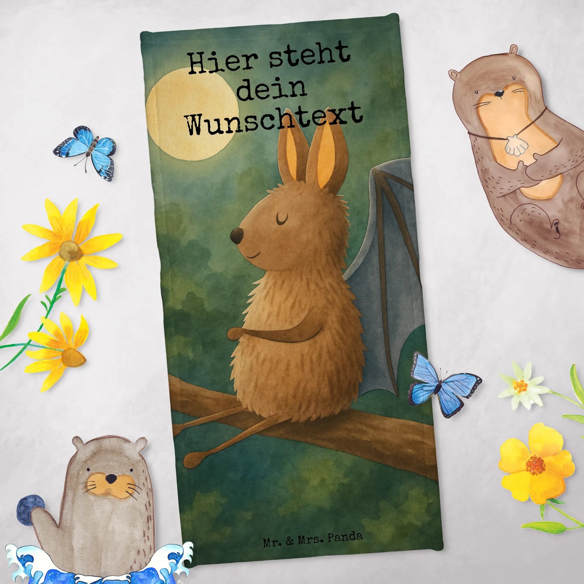Personalisiertes Badehandtuch Fledermaus Sitzen Design