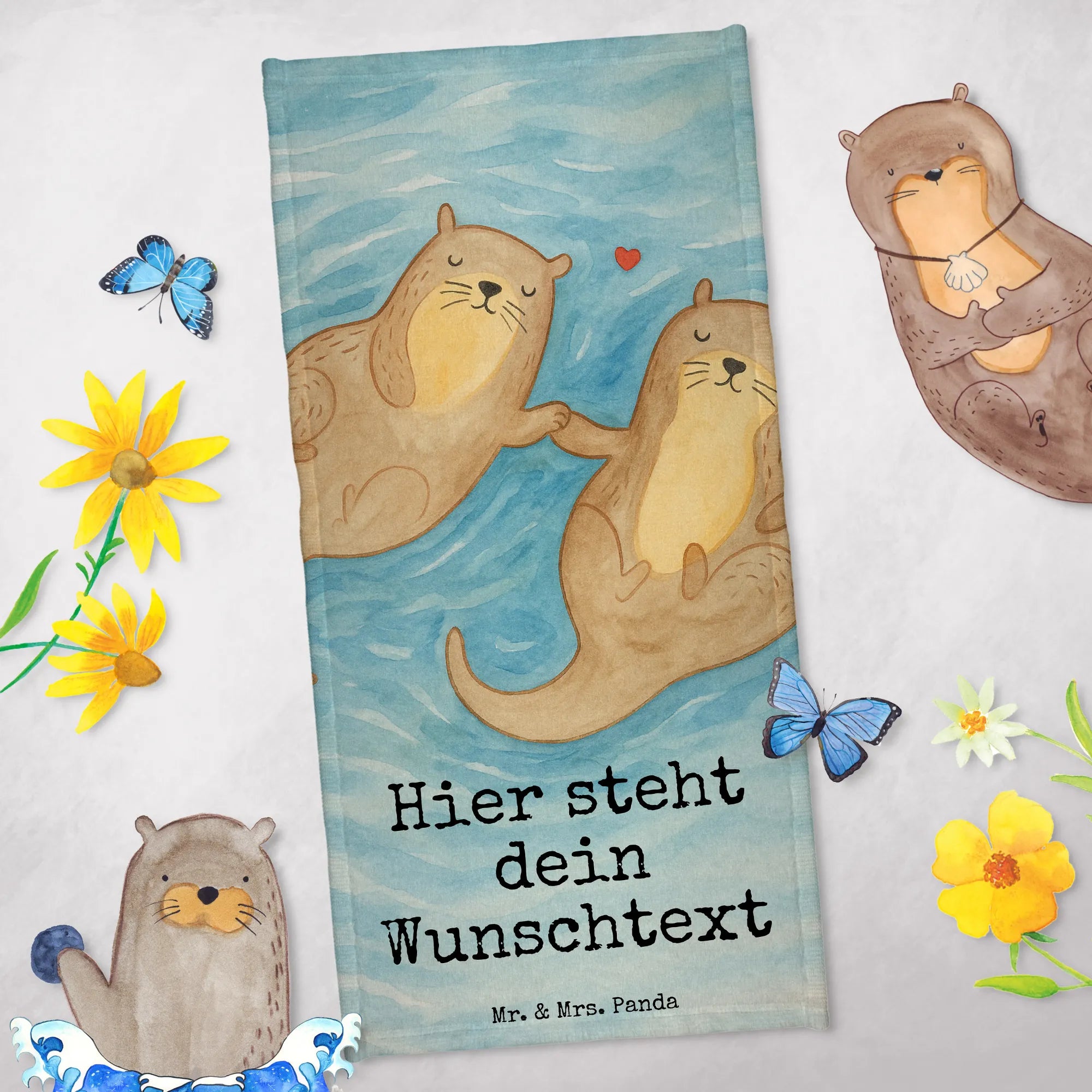 Personalized Bath Towel otter holding hands Design