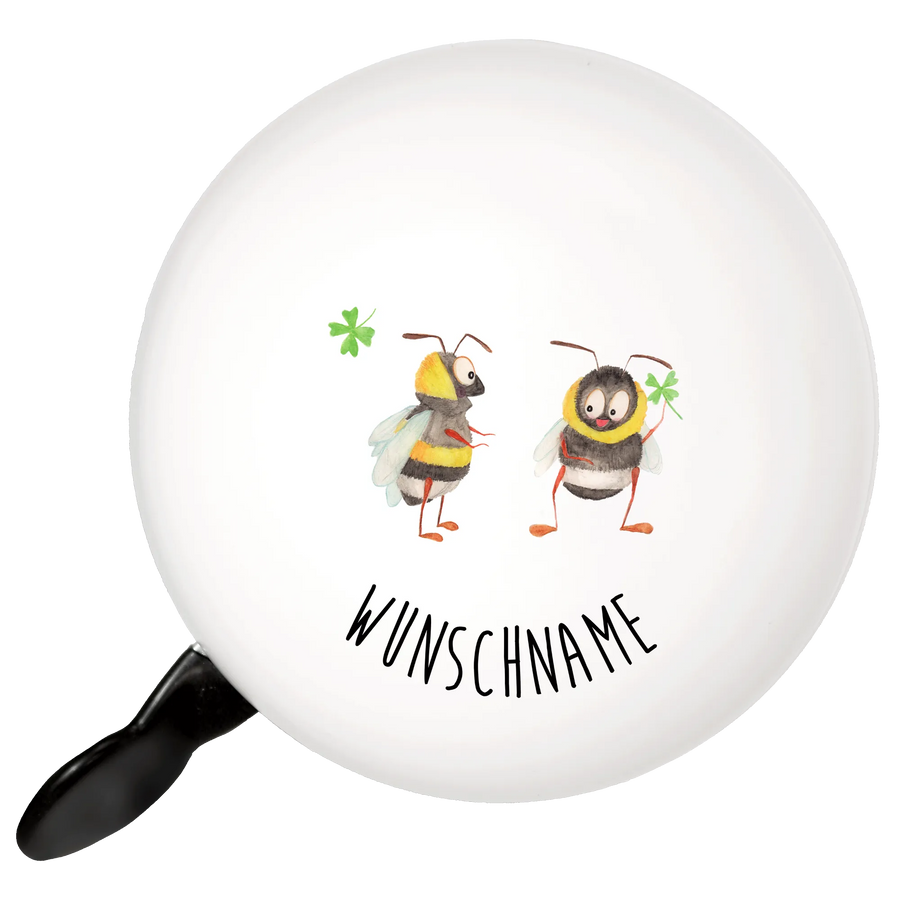 Personalisierte Fahrradklingel Hummeln mit Kleeblatt