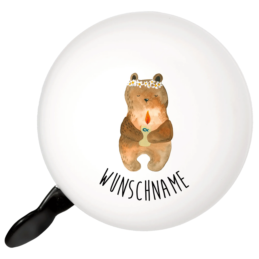 Die personalisierte Fahrradklingel mit dem süßen Kommunion-Bär aus der Kollektion Bär ist das perfekte Geschenk für den besonderen Tag der Kommunion. Der liebevolle Bär, der eine Kerze in der Hand hält und mit einer Blumenkrone geschmückt ist, symbolisiert das blühende Leben und das Licht der Seele.