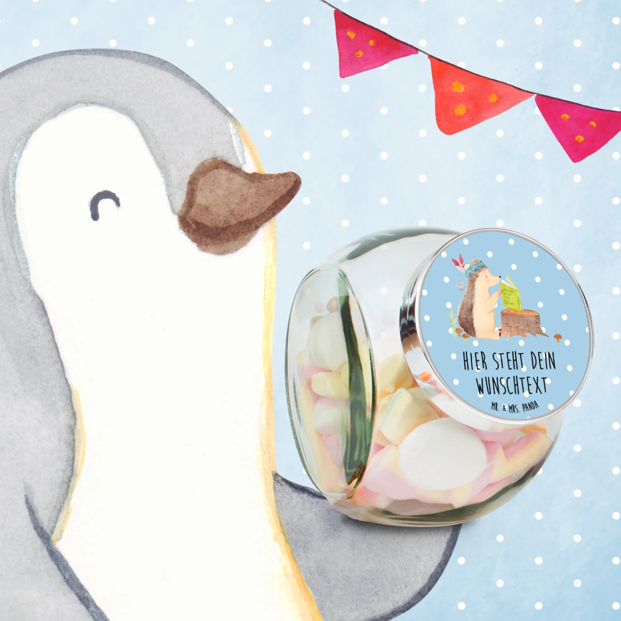 Personalized Candy Jar Hedgehog feather headdress - XL 2000ml - Blue Pastel