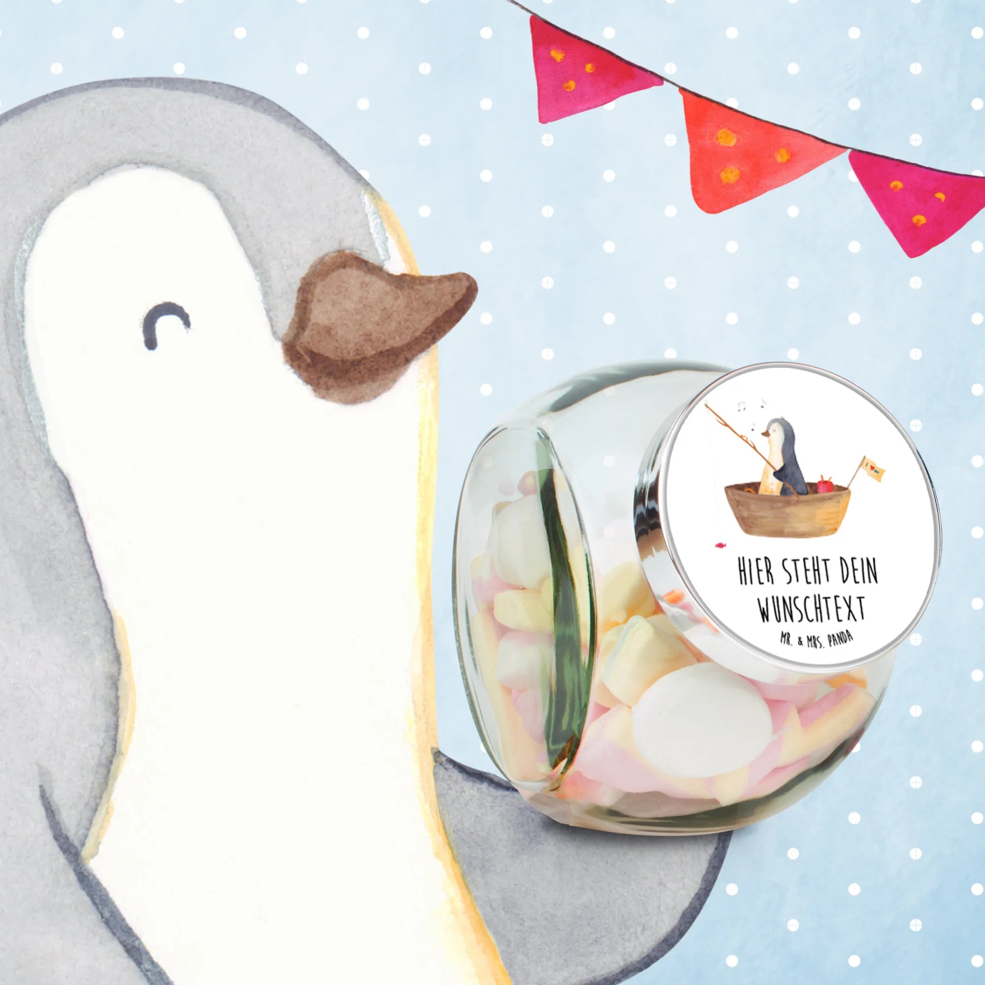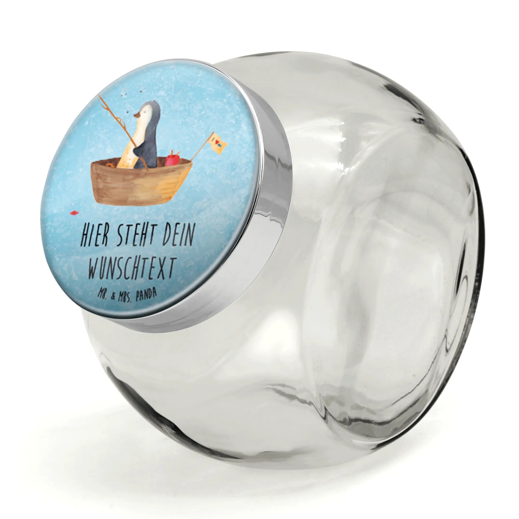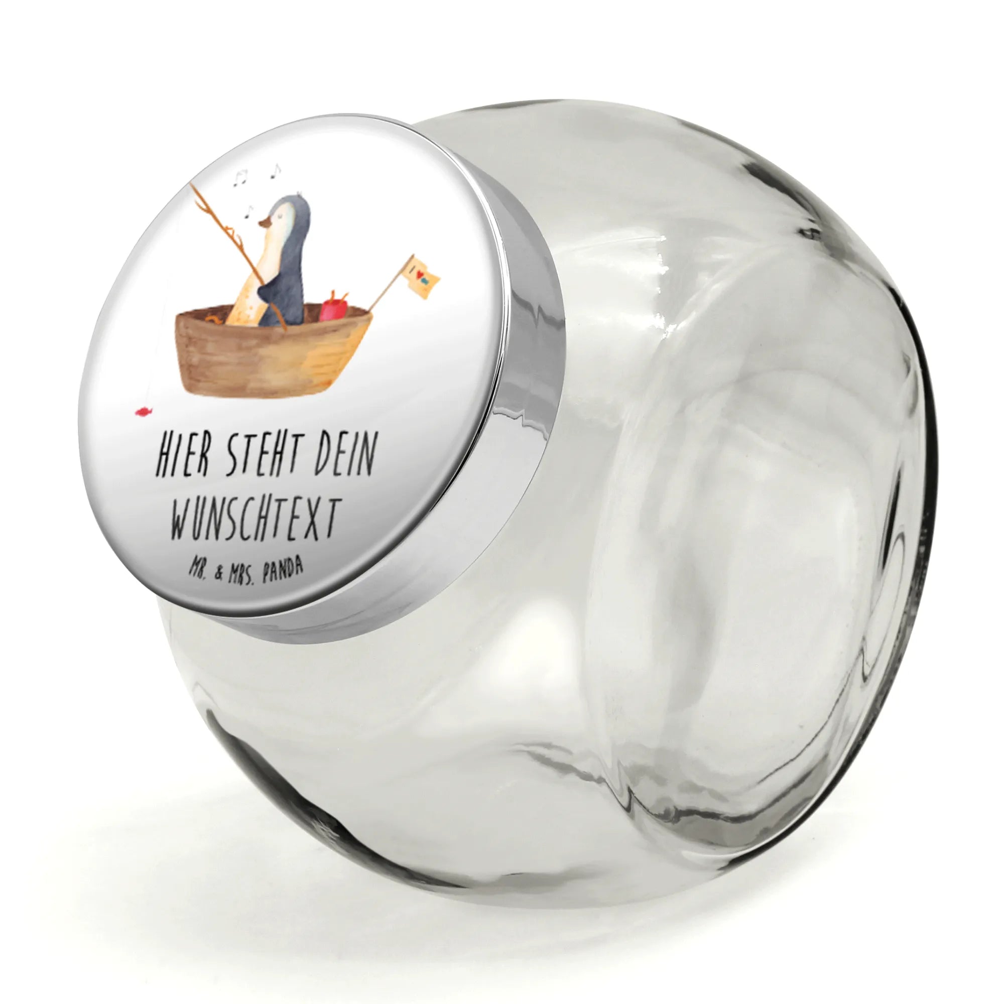 Personalized Candy Jar Penguin fishing boat - XL 2000ml - White