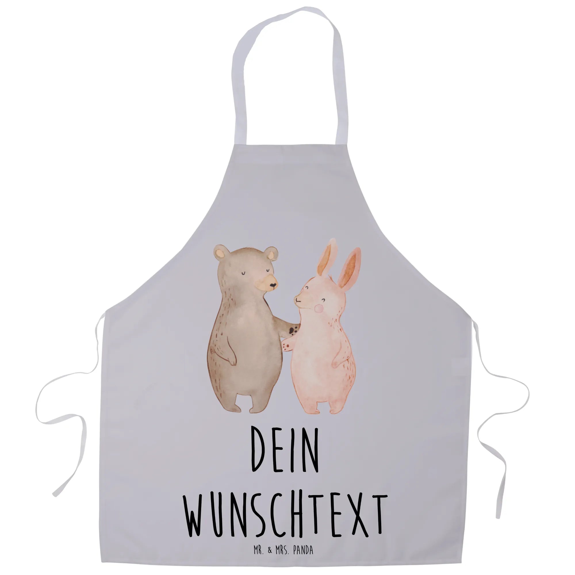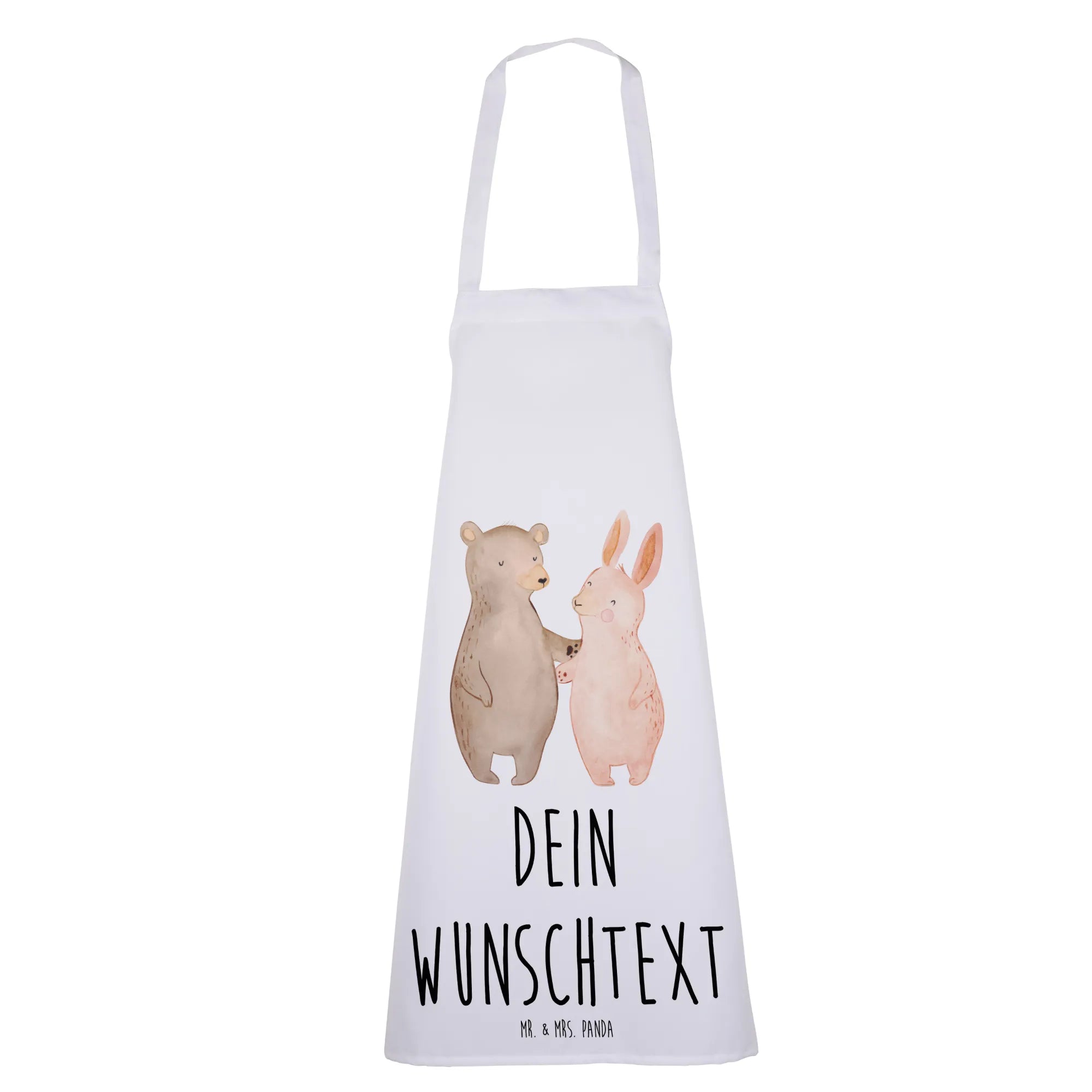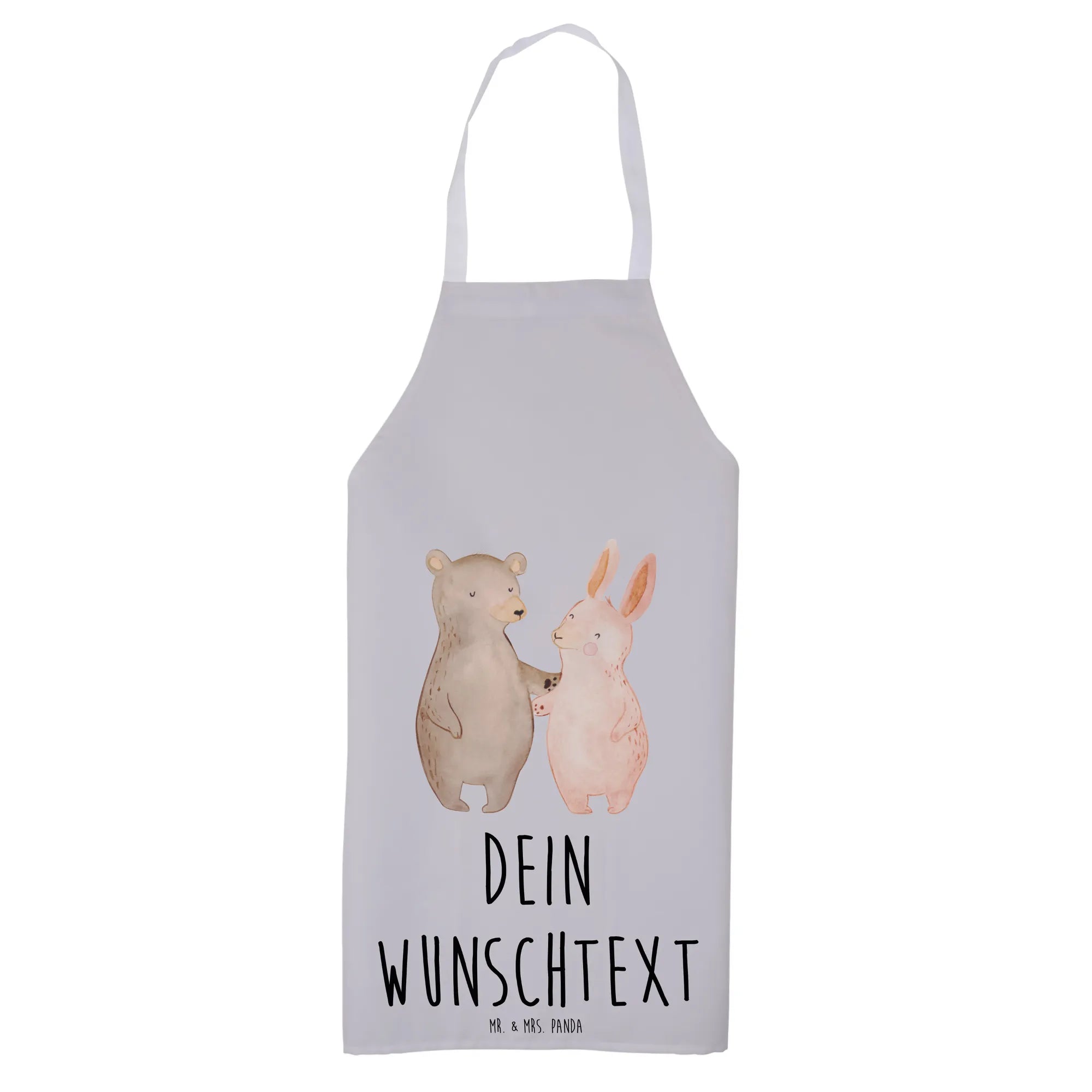 Personalized Cooking Apron bear and rabbit Embrace - White