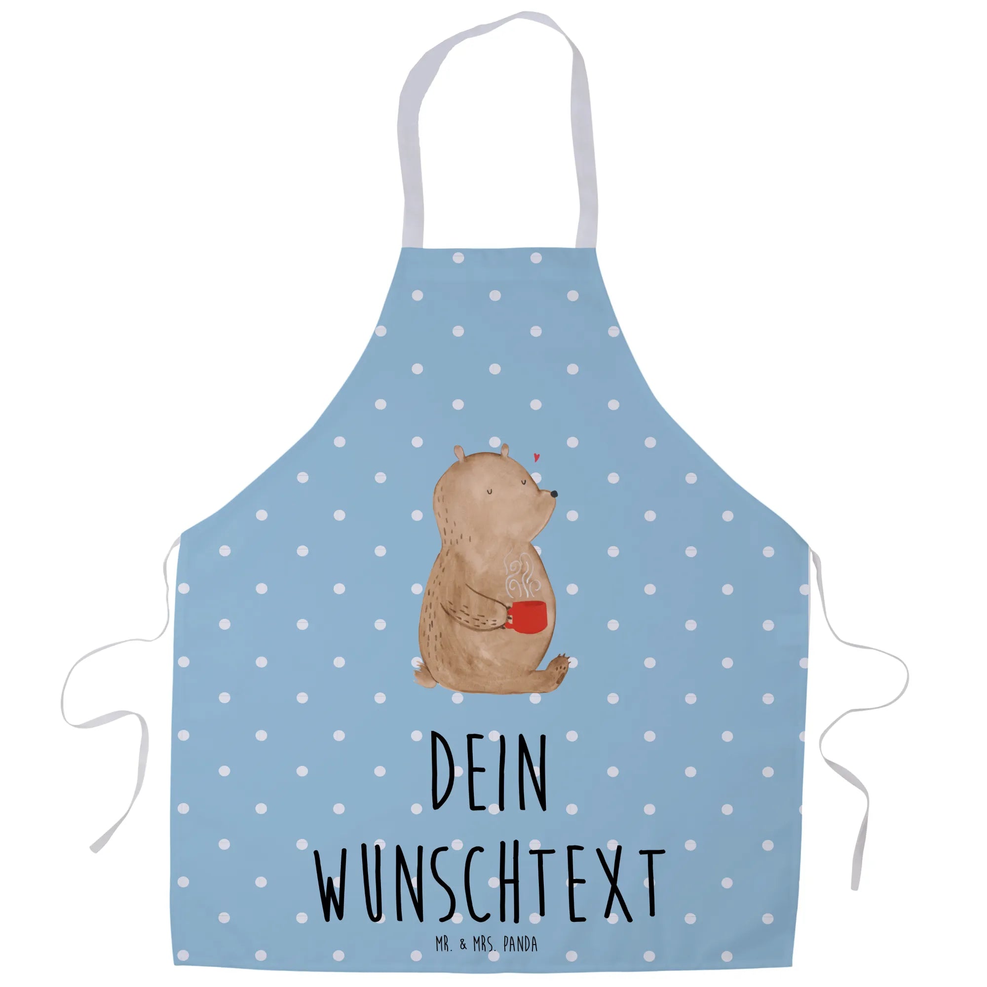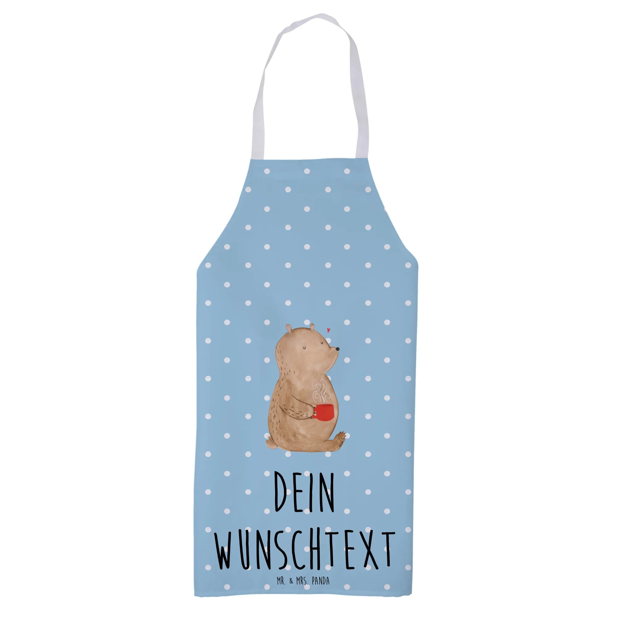 Personalized Cooking Apron bear Coffee - Pastel Blue