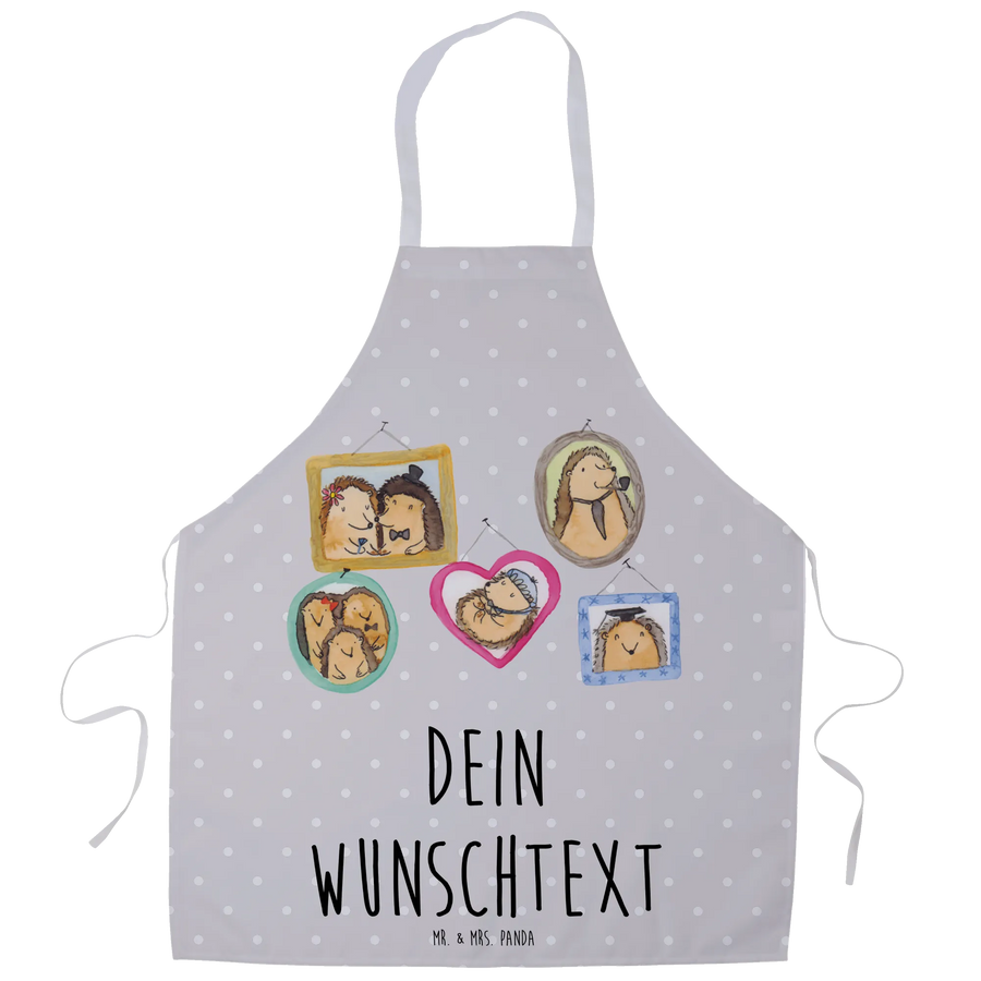Personalized Cooking Apron Hedgehog family - Grey Pastel