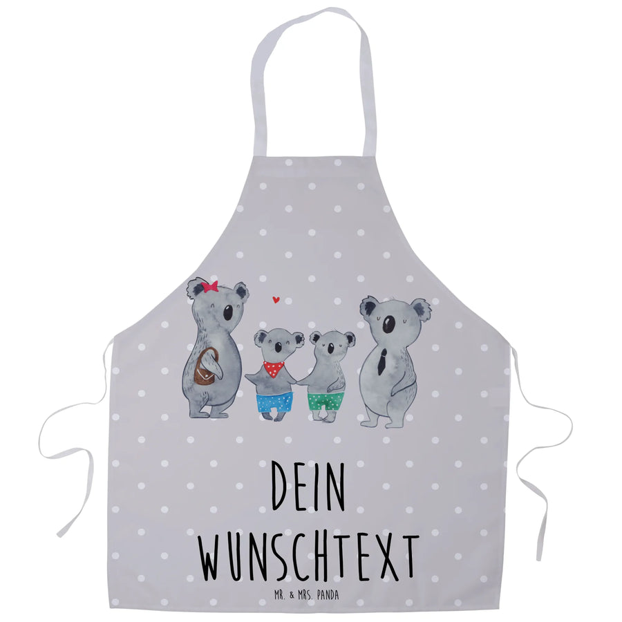 Personalized Cooking Apron Koala family with two kids - Grey Pastel