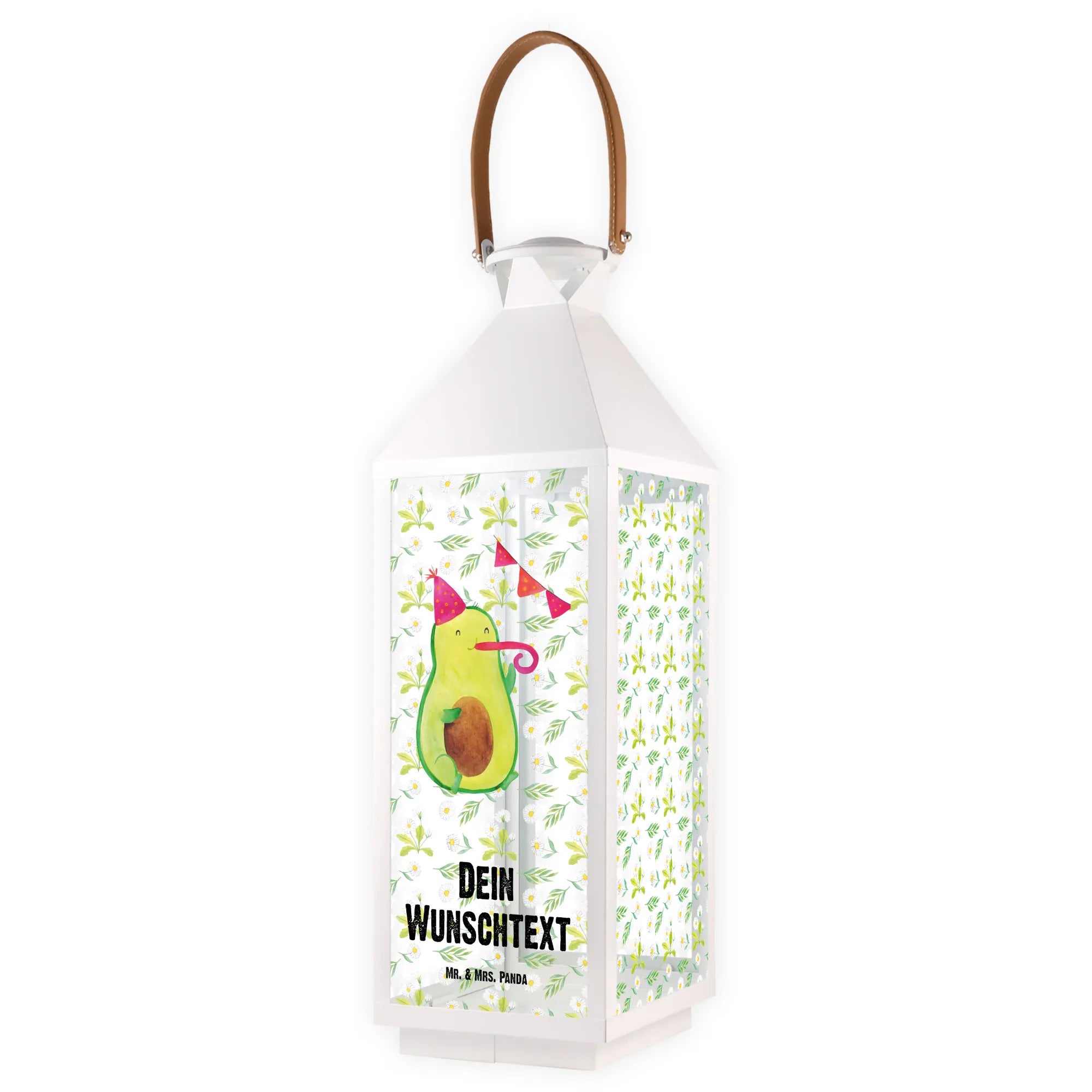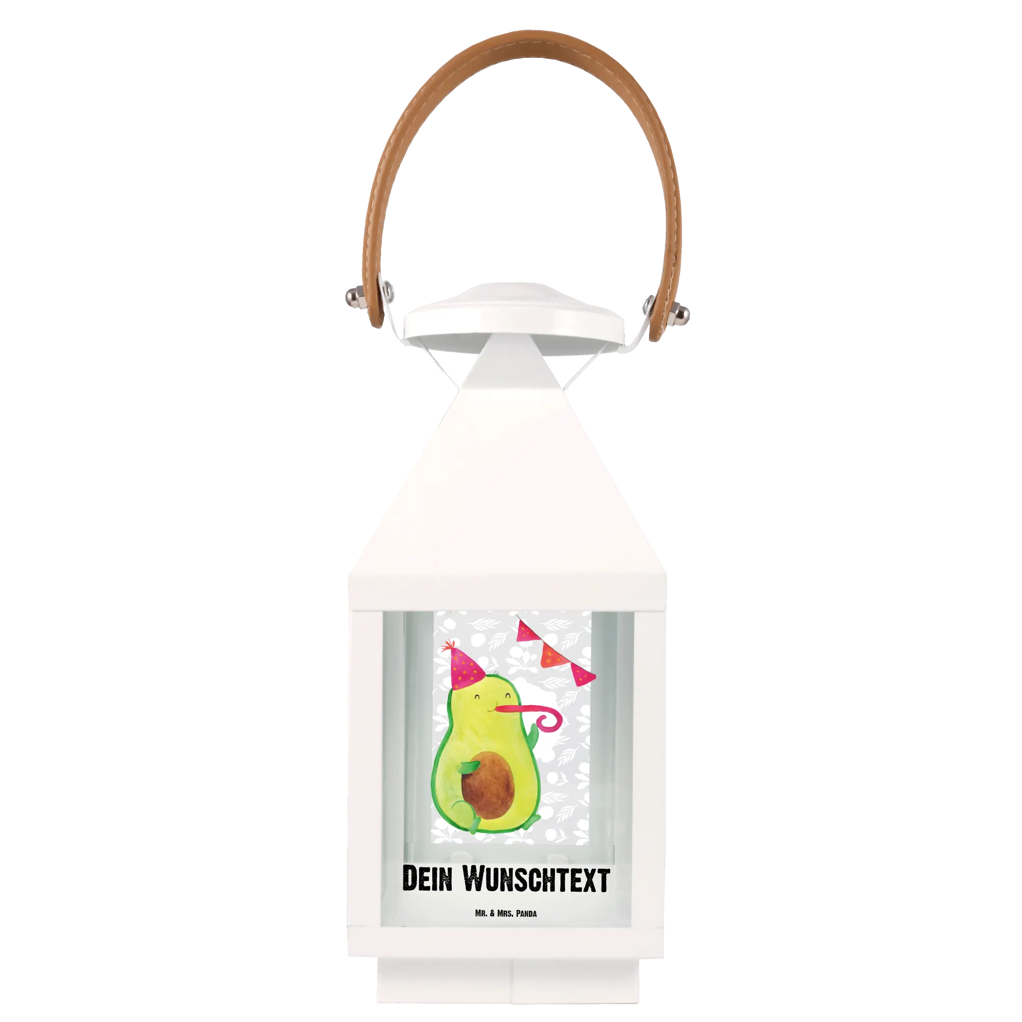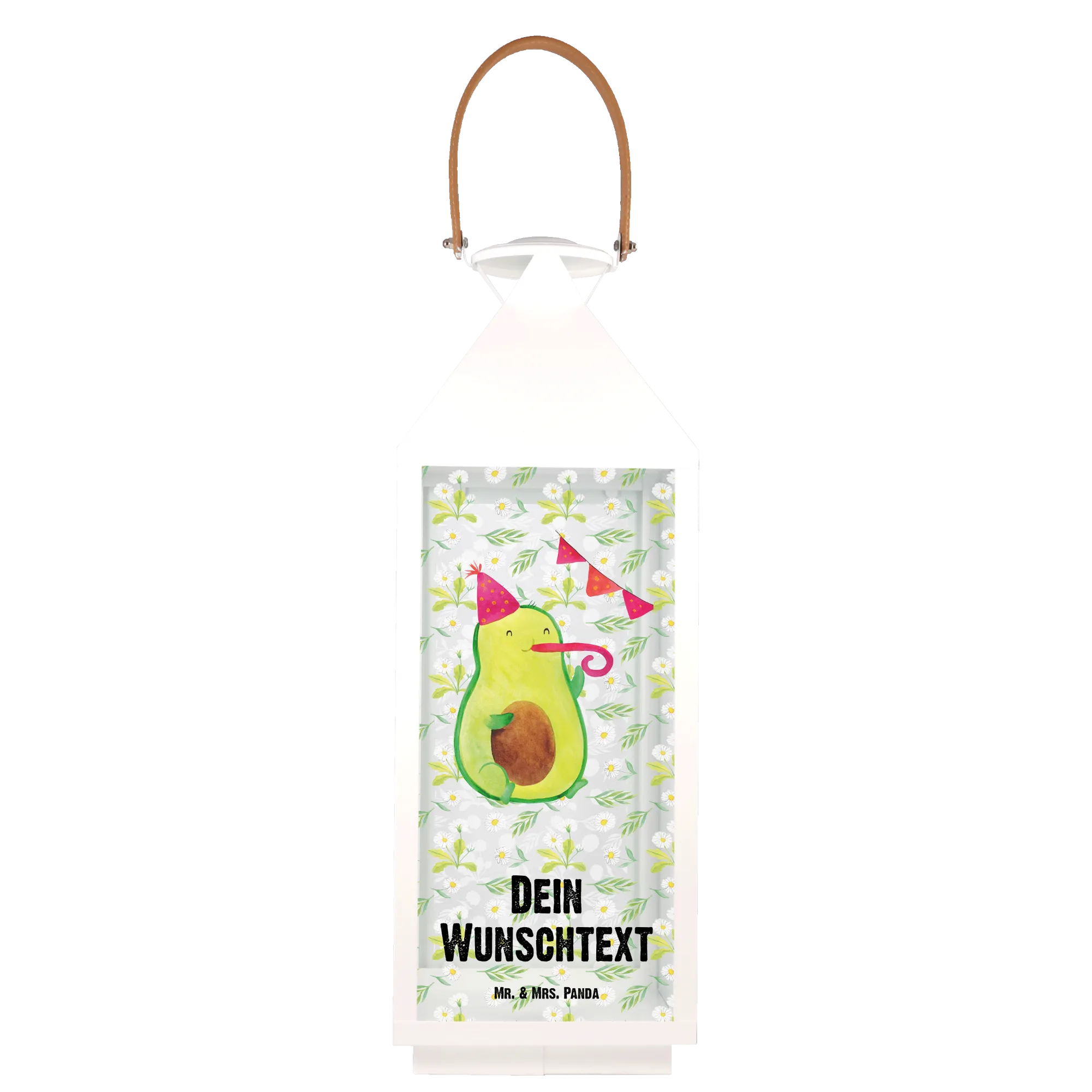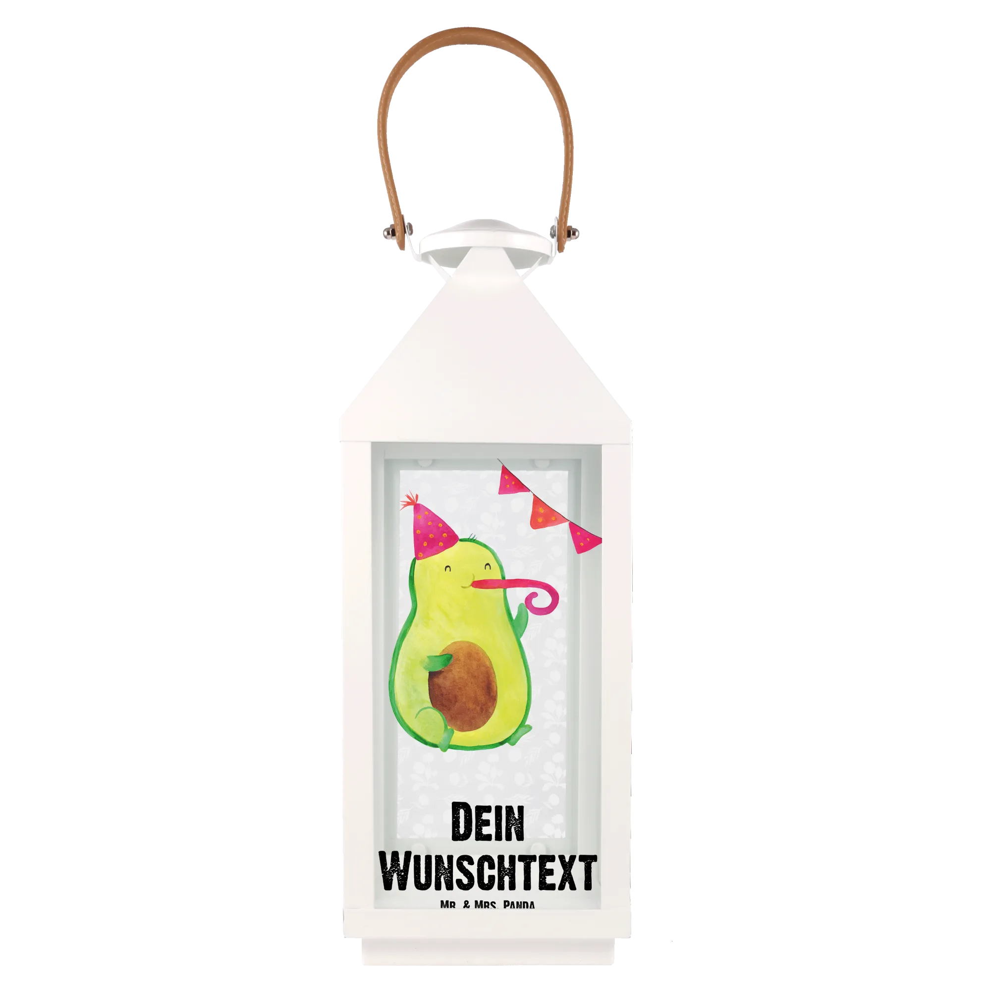 Die personalisierte Deko Laterne Avocado Party Time von Mr. & Mrs. Panda ist das perfekte Geschenk für alle, die das Leben feiern und eine Portion Spaß in ihren Garten oder auf den Balkon bringen möchten. Mit ihrem einzigartigen Design, das eine süße Avocado zeigt, die einen Partyhut trägt und fröhlich in eine Partypfeife pustet, zaubert diese Laterne jedem ein Lächeln ins Gesicht.