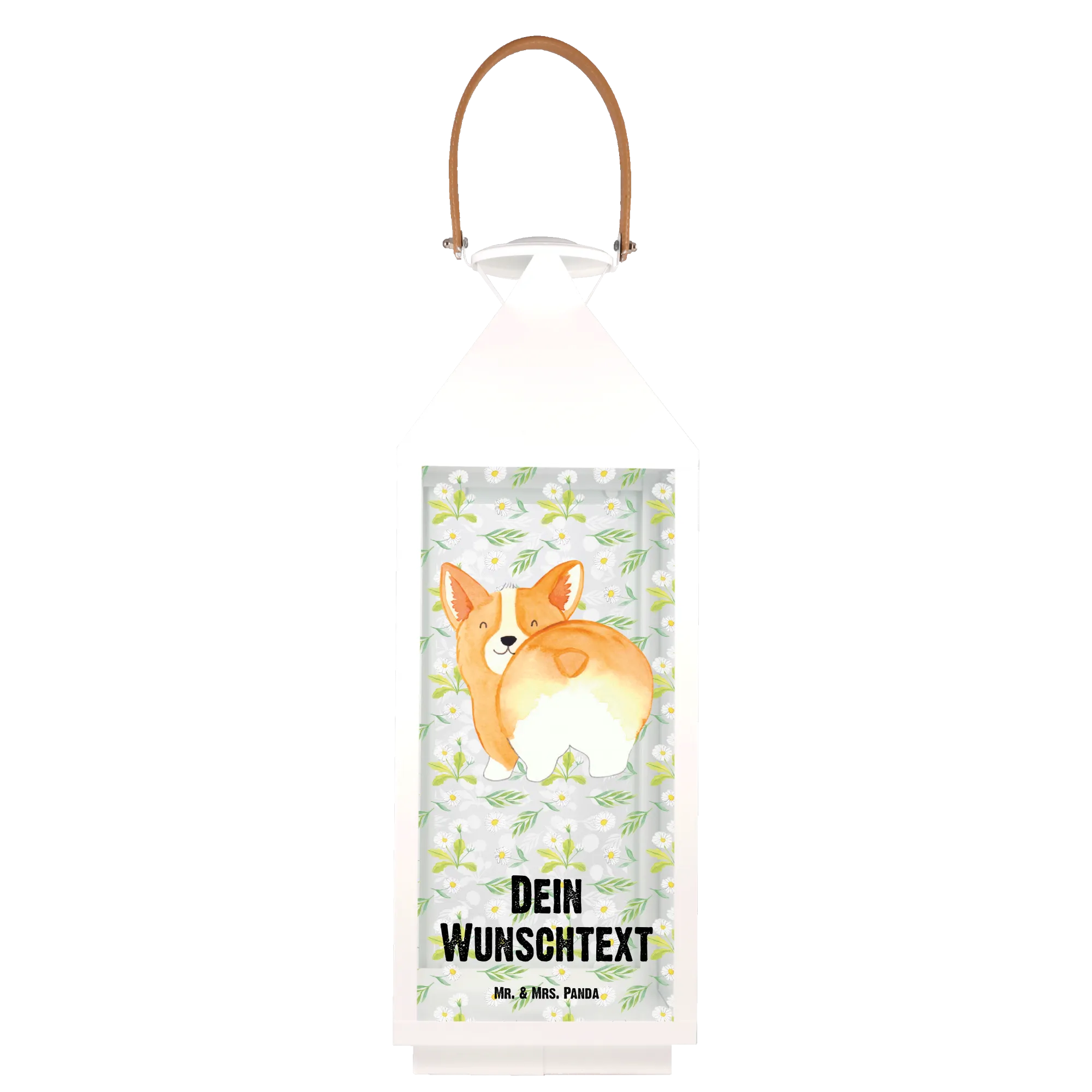 Die personalisierte Deko Laterne "Corgie Po" von Mr. & Mrs. Panda ist das perfekte Geschenk für alle Hundeliebhaber! Mit einem süßen Corgi-Motiv, das begeistert seinen Po in die Kamera hält, ist diese Laterne nicht nur ein echter Blickfang, sondern auch ein liebevolles Statement für jeden Hundebesitzer.
