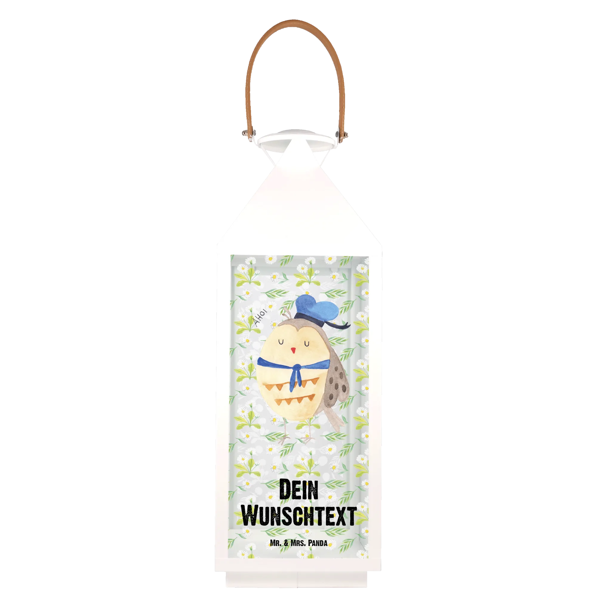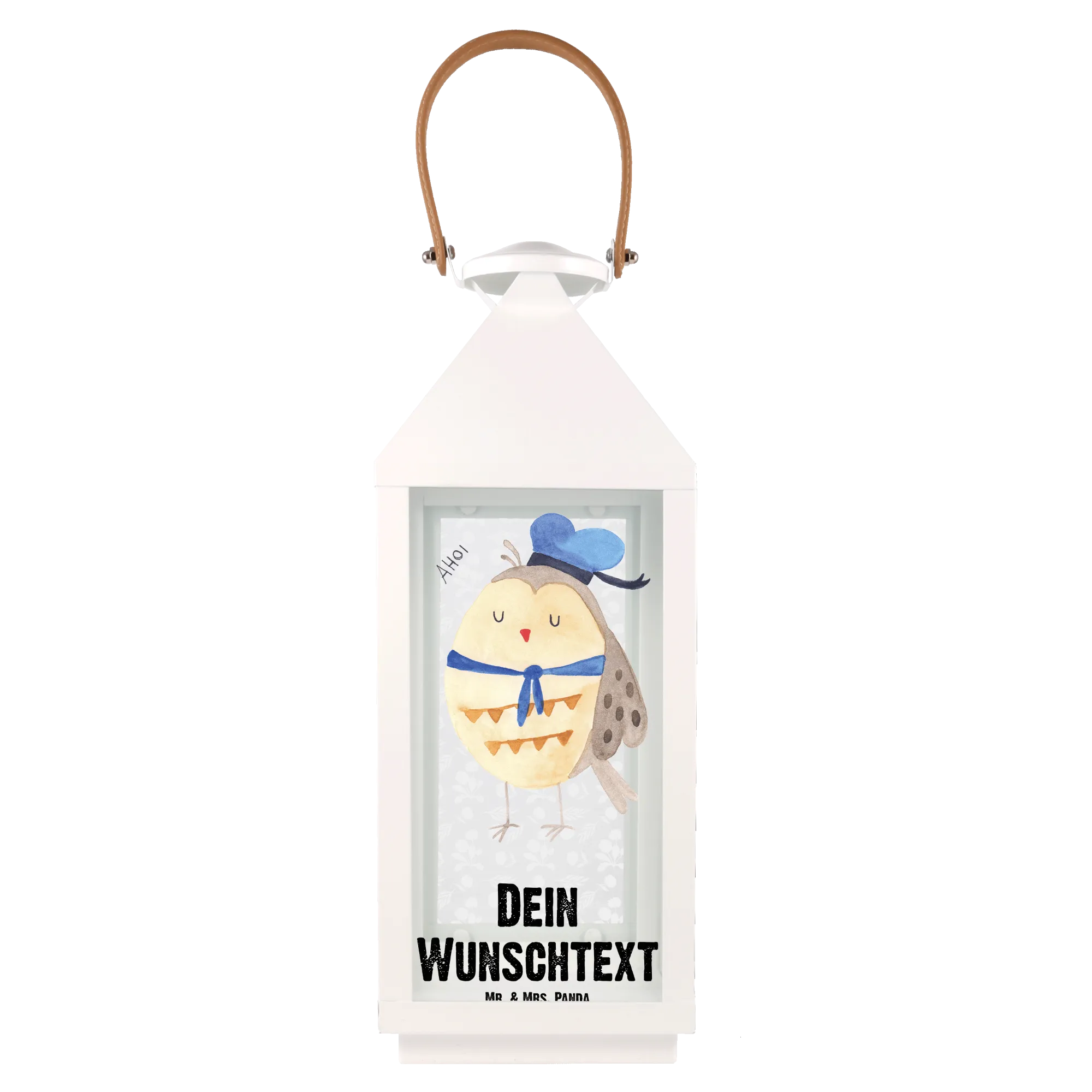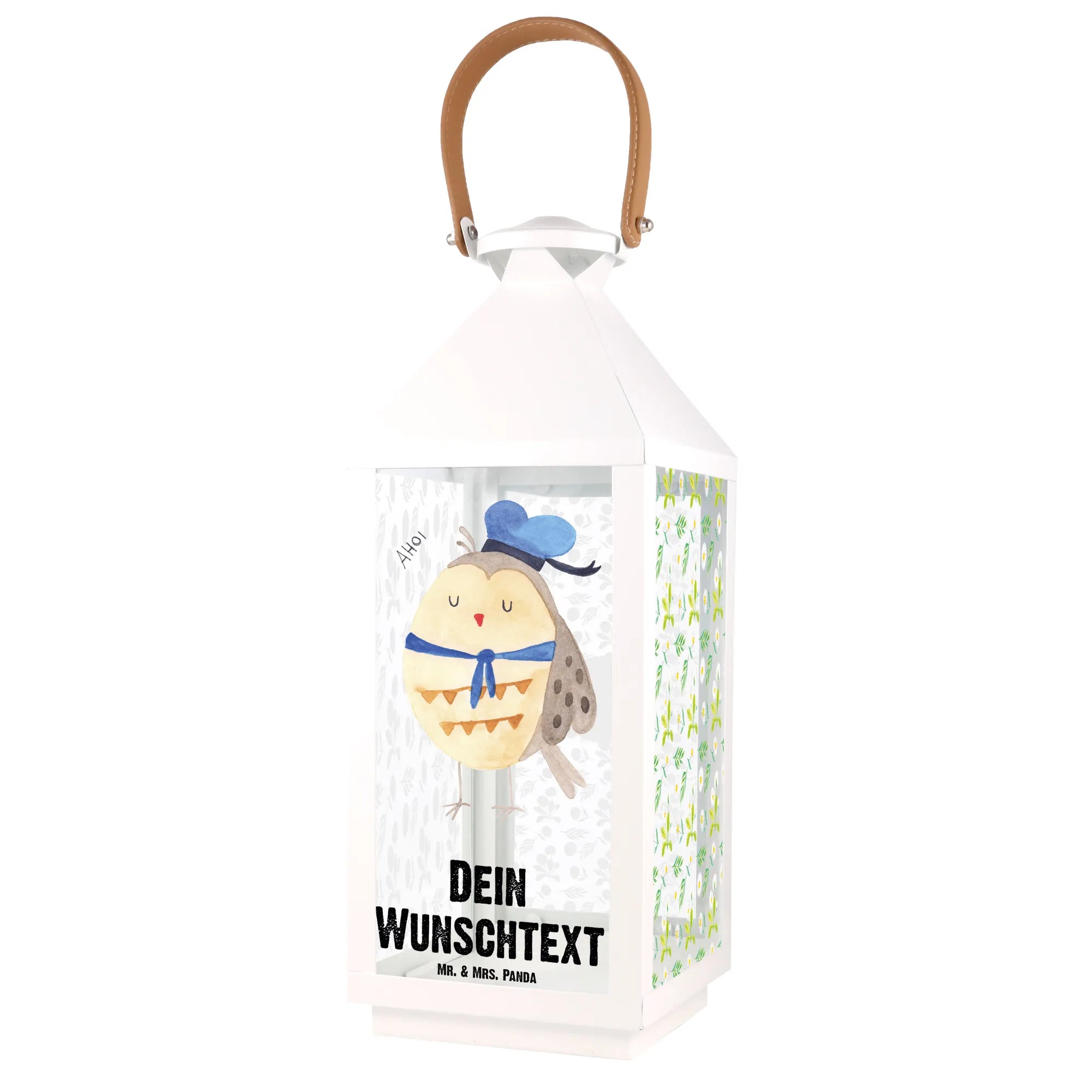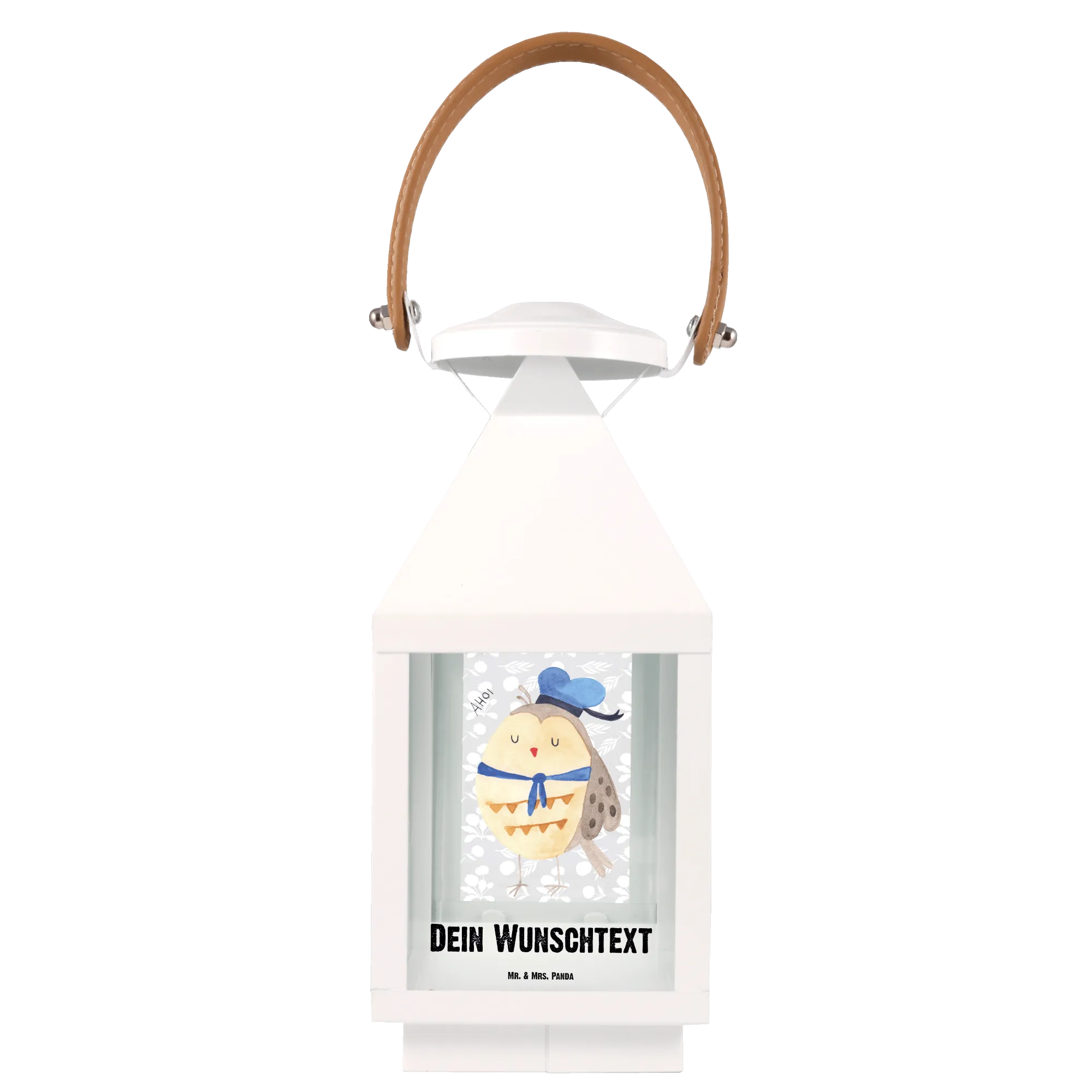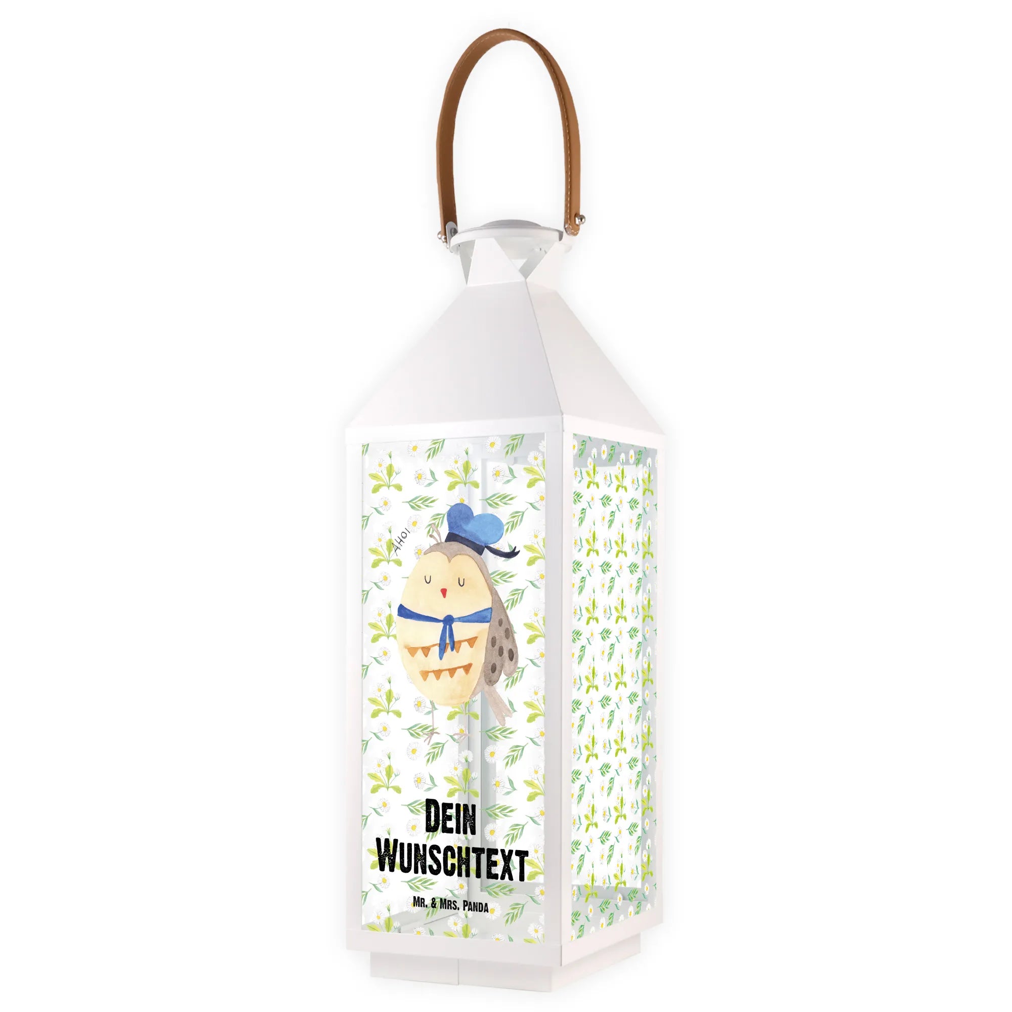 Die personalisierte Deko Laterne Eule Matrosen von Mr. & Mrs. Panda ist das perfekte Geschenk für alle Eulen-Liebhaber und maritime Seelen. Mit ihrem niedlichen Design, das eine Eule mit Matrosenhut zeigt, verbreitet sie ein fröhliches Ambiente auf deiner Terrasse oder deinem Balkon. Diese Laterne ist nicht nur eine Tischleuchte, sondern ein echter Blickfang, der deinem Garten oder deinem Wohnraum eine ganz besondere Note verleiht.