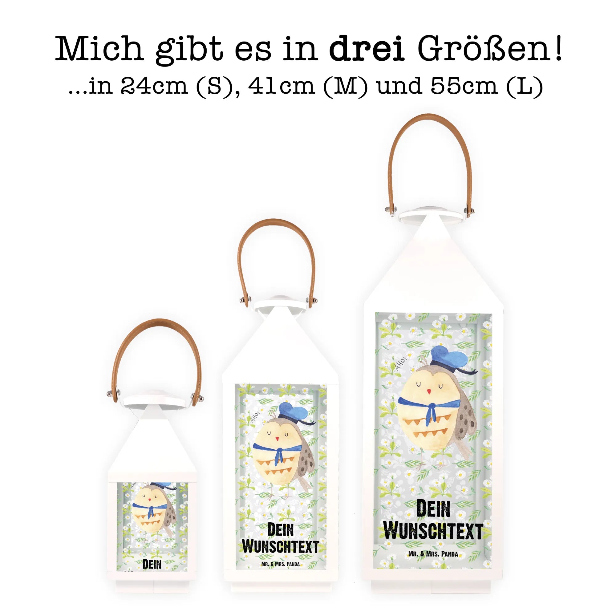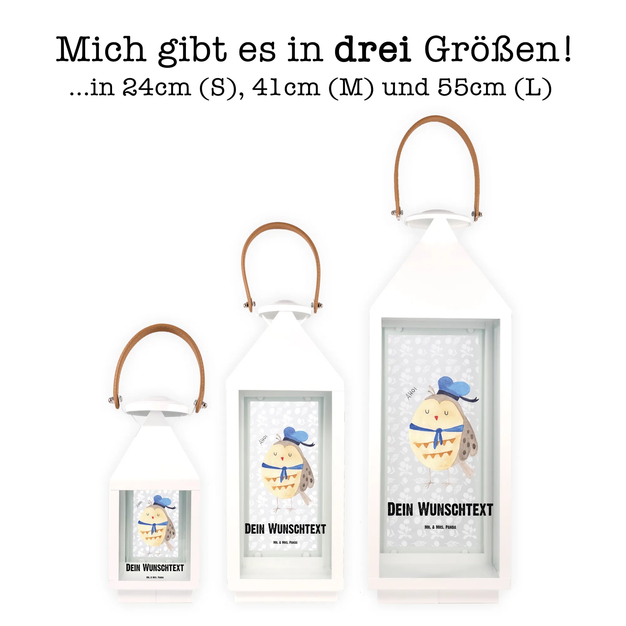 Personalisierte Deko Laterne Eule Matrosen - XL