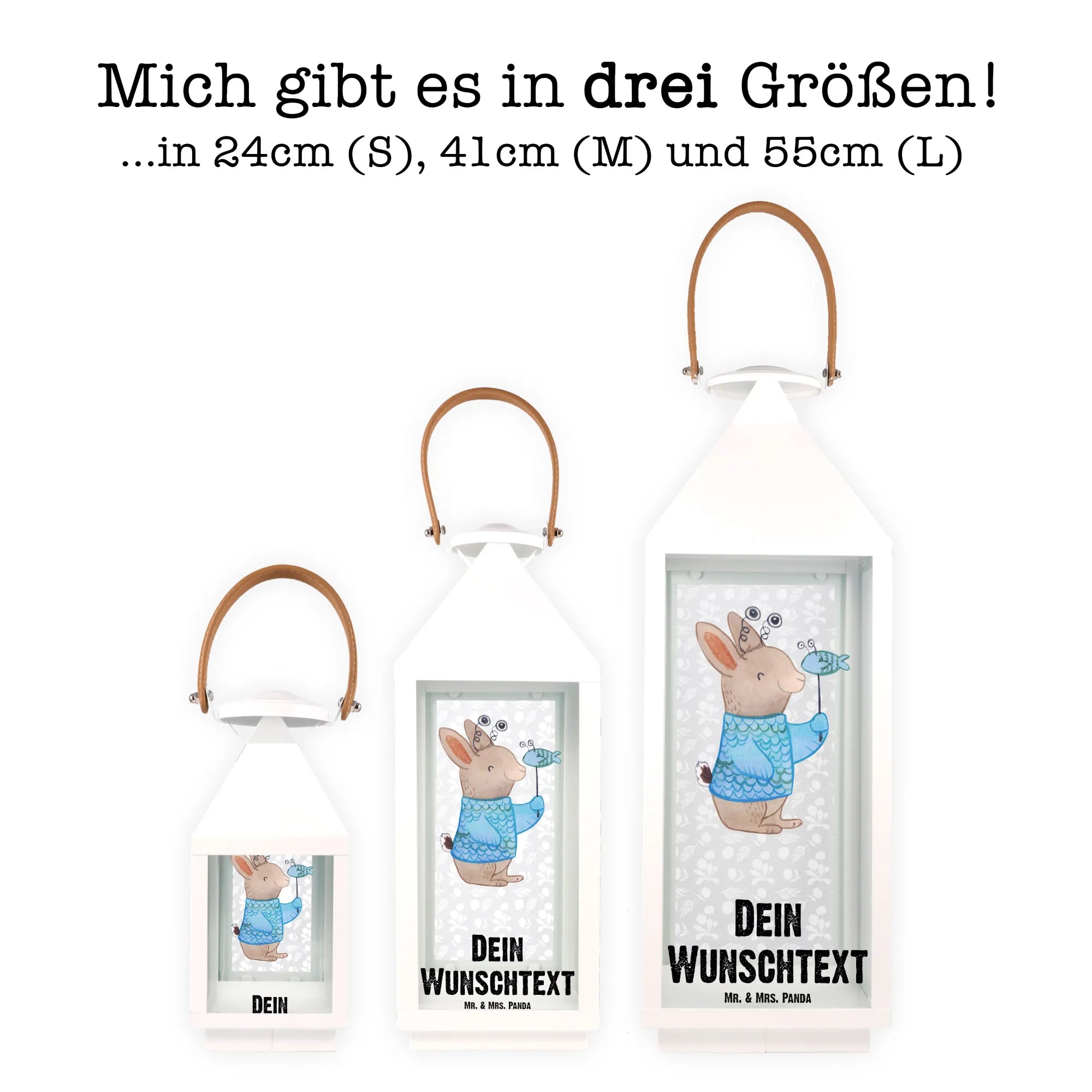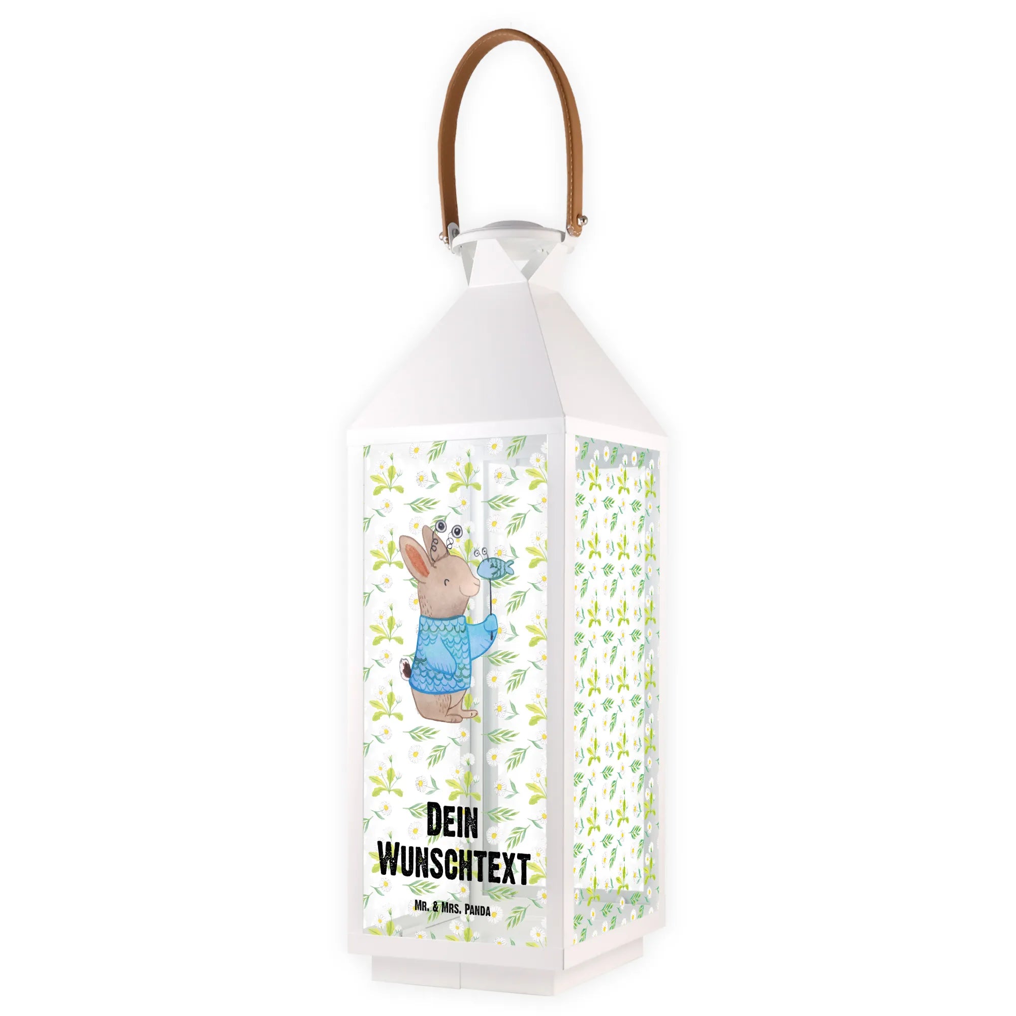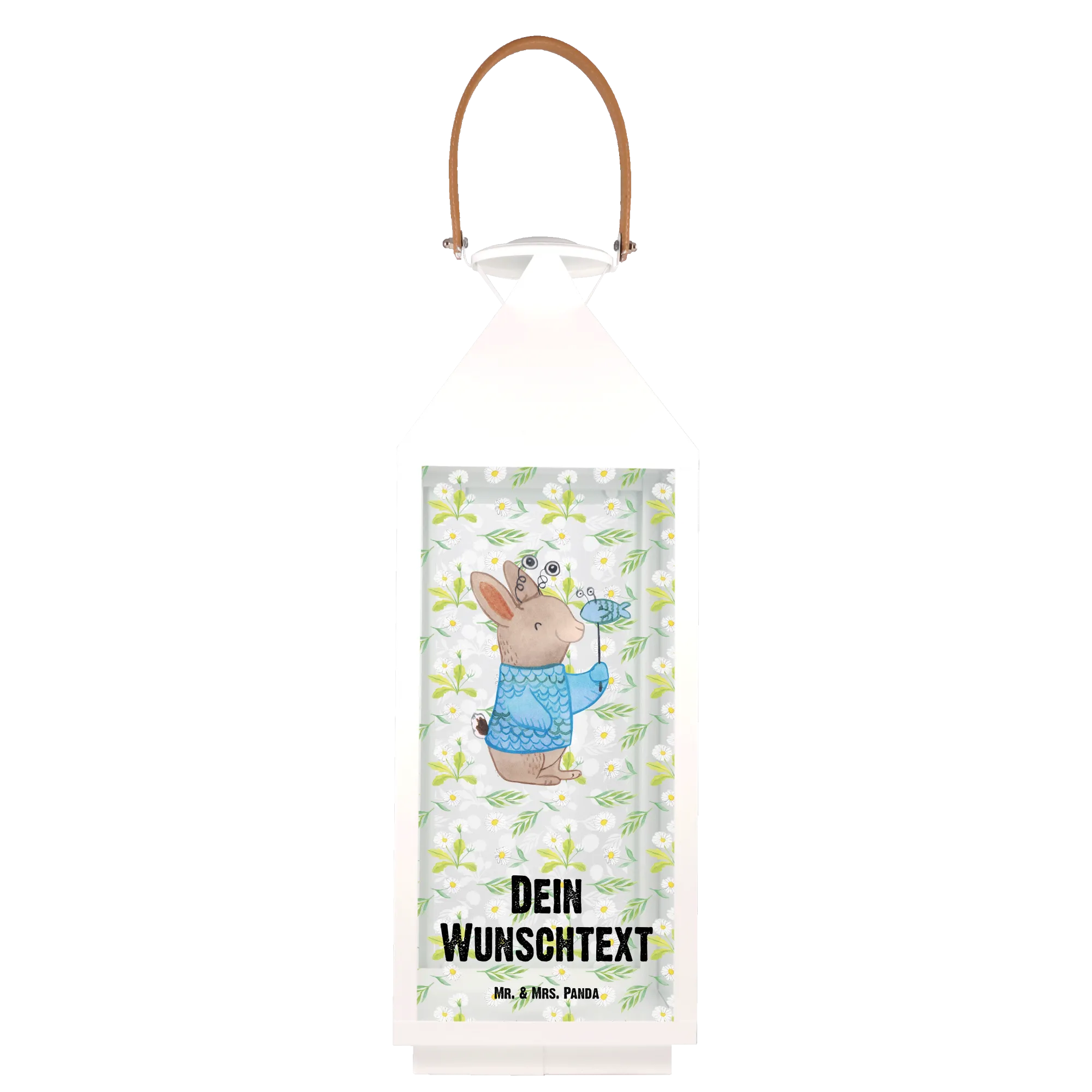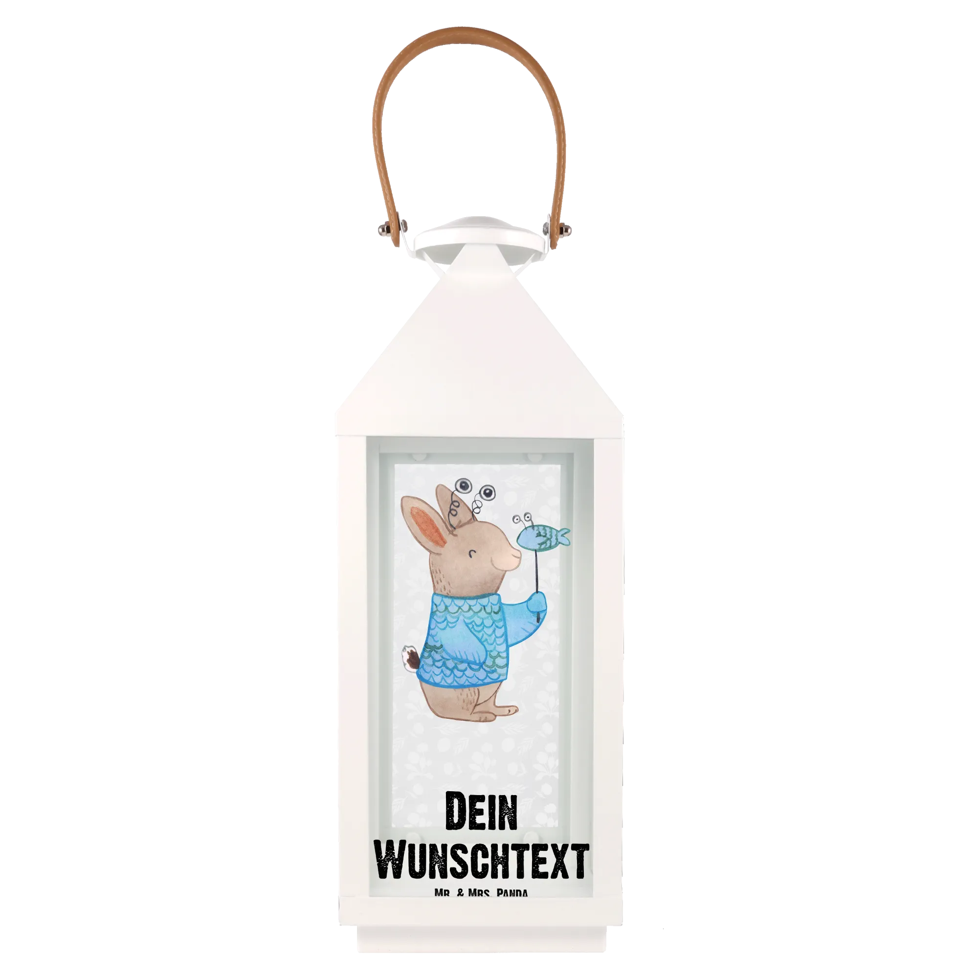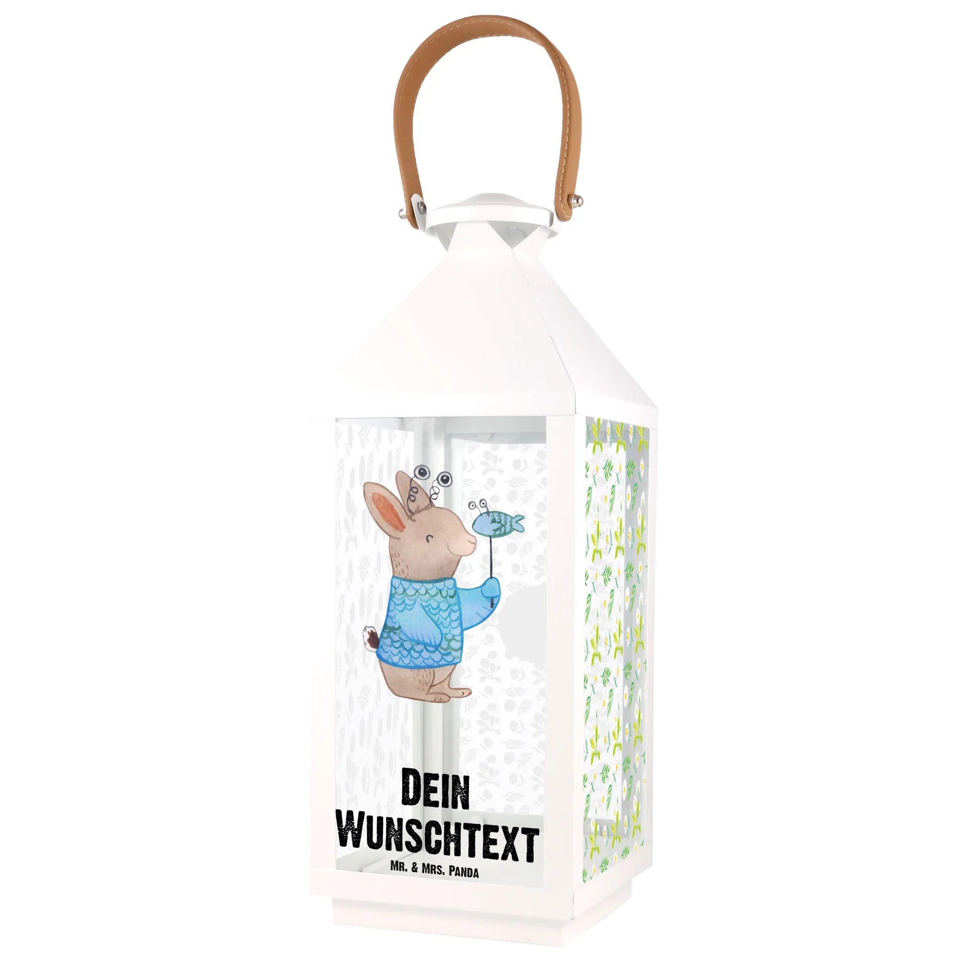 Diese Laterne ist mit dem bezaubernden Motiv eines freundlichen Kaninchens im Fischkostüm versehen, das die Eigenschaften des Tierkreiszeichens Fische verkörpert. Neben der süßen Illustration kannst du die Laterne ganz nach deinem Wunsch personalisieren, indem du einen Namen oder einen Wunschtext hinzufügst.