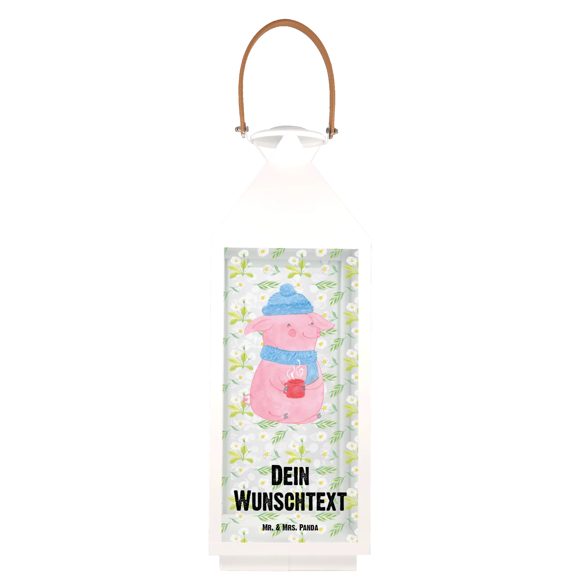 Die personalisierte Deko Laterne von Mr. & Mrs. Panda ist der perfekte Begleiter für die Winter- und Weihnachtszeit! Mit ihrem liebevollen Glühschwein-Motiv, das einen fröhlichen, rosa Schweinchen in warmer Winterkleidung zeigt, zaubert sie jedem ein Lächeln ins Gesicht.