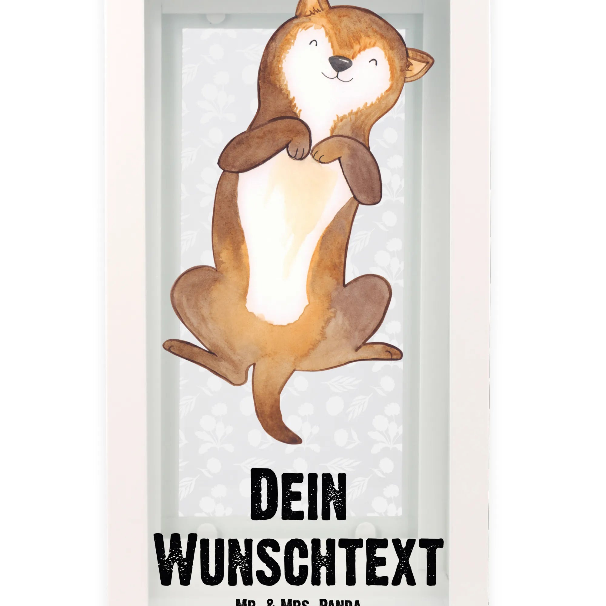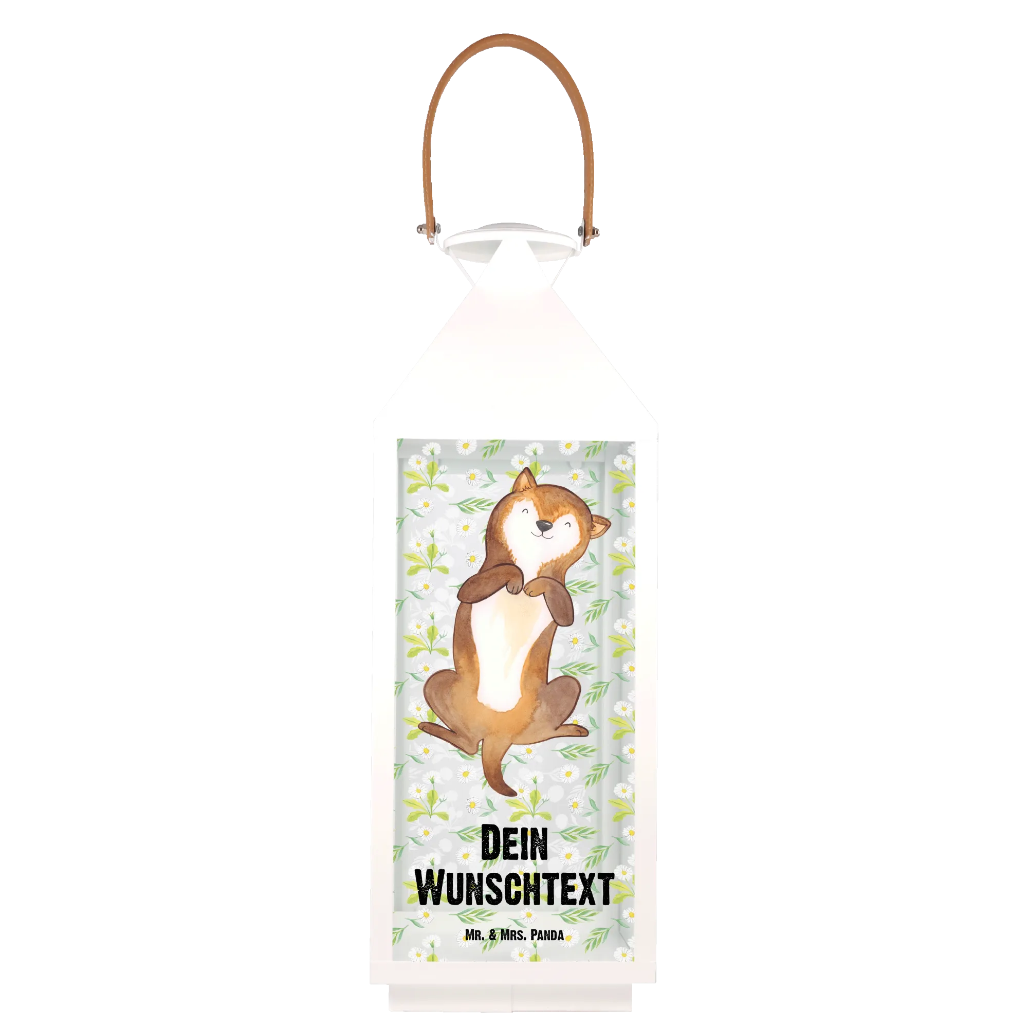 Die personalisierte Deko Laterne mit dem süßen Hundemotiv Bauchkraulen aus der Hunde Kollektion von Mr. & Mrs. Panda ist das perfekte Geschenk für alle Tierliebhaber und Hundebesitzer! Diese bezaubernde Laterne zeigt einen fröhlichen Hund, der sich genüsslich auf den Rücken rollt und wohlige Bauchkratz-Momente genießt.