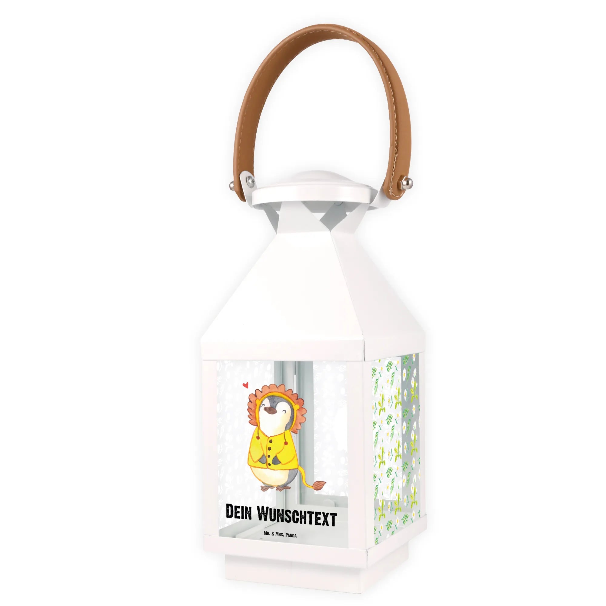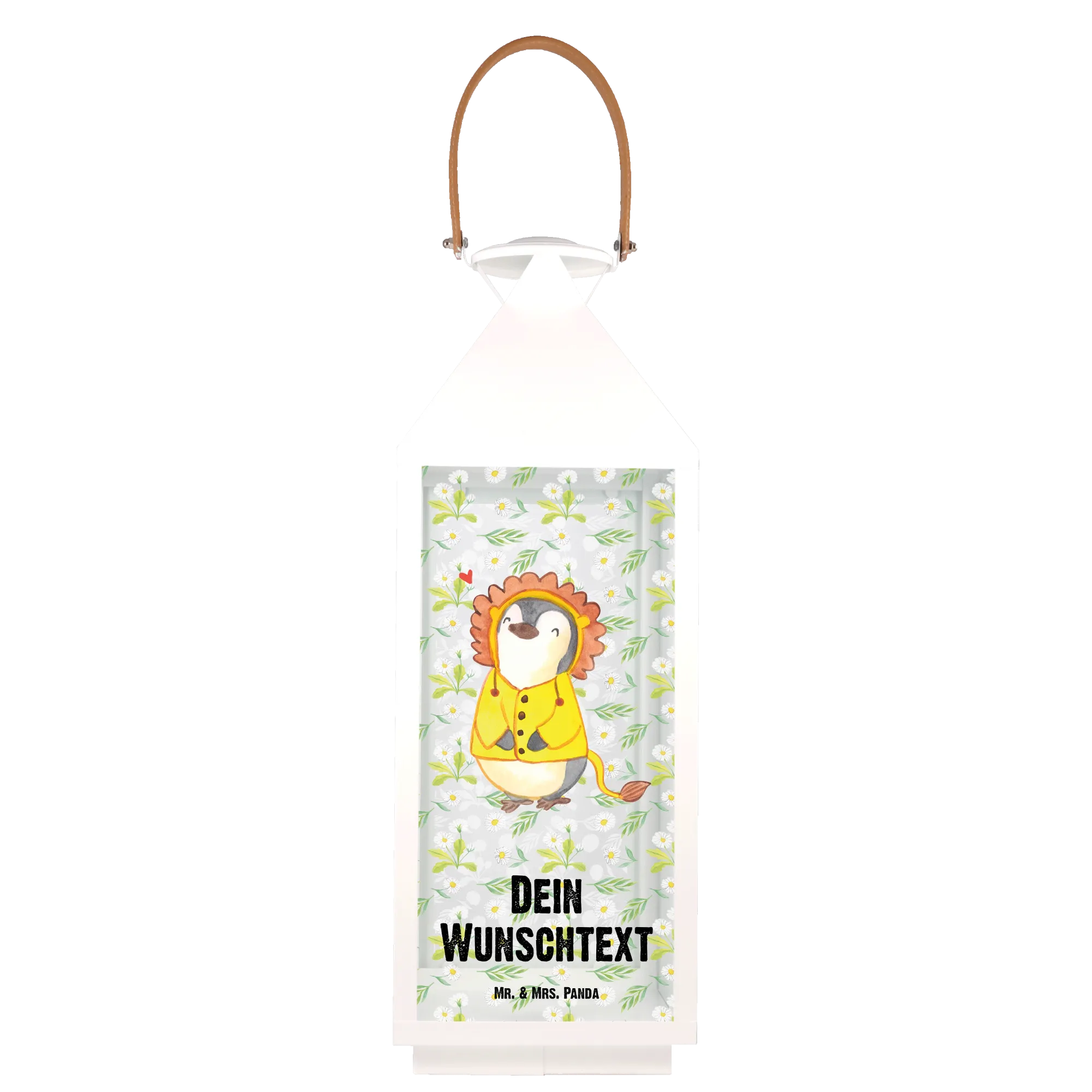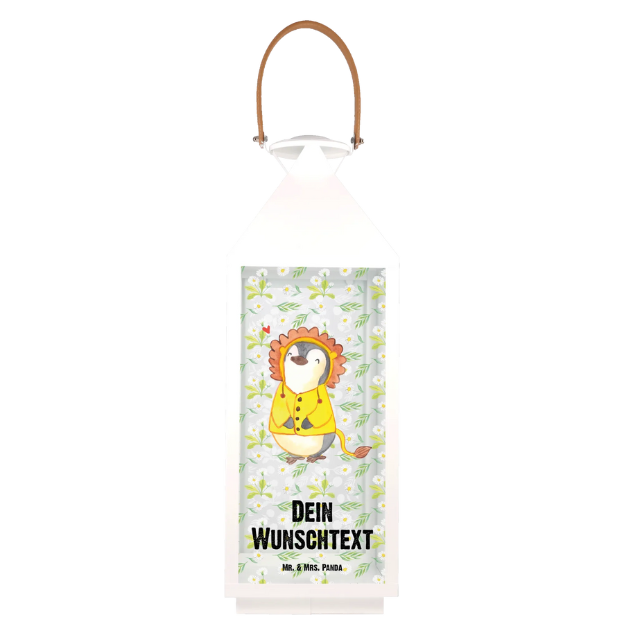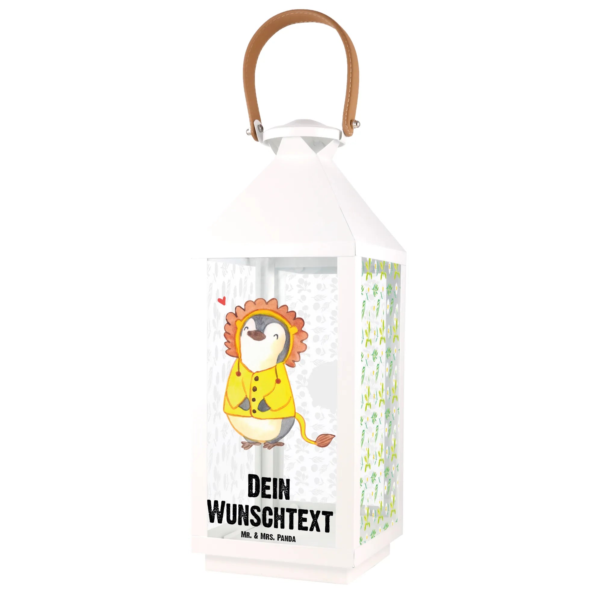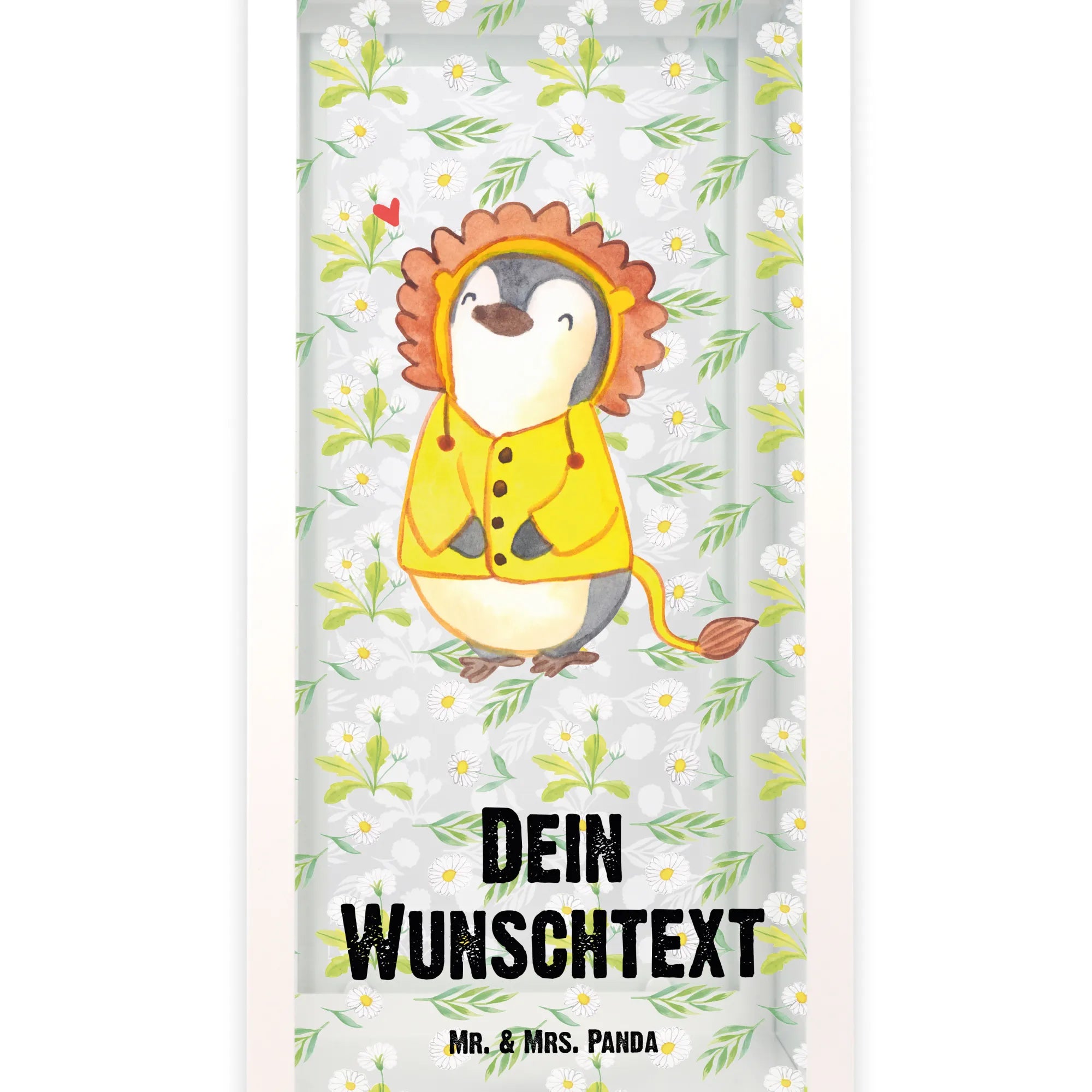 Die personalisierte Deko Laterne Löwe Astrologie von Mr. & Mrs. Panda ist das ideale Geschenk für alle, die im Sternzeichen Löwe geboren sind. Diese einzigartige Laterne kombiniert stimmungsvolles Licht mit einem charmanten, handgezeichneten Motiv, das einen fröhlichen Pinguin zeigt, der stolz in einem Löwenkostüm gekleidet ist. Der Spruch "Im Herzen Löwe: Kühn wie der Sonnenaufgang, majestätisch wie der König." gibt der Laterne eine persönliche Note und macht sie zu einem besonderen Highlight in jedem Garten oder auf jedem Balkon.