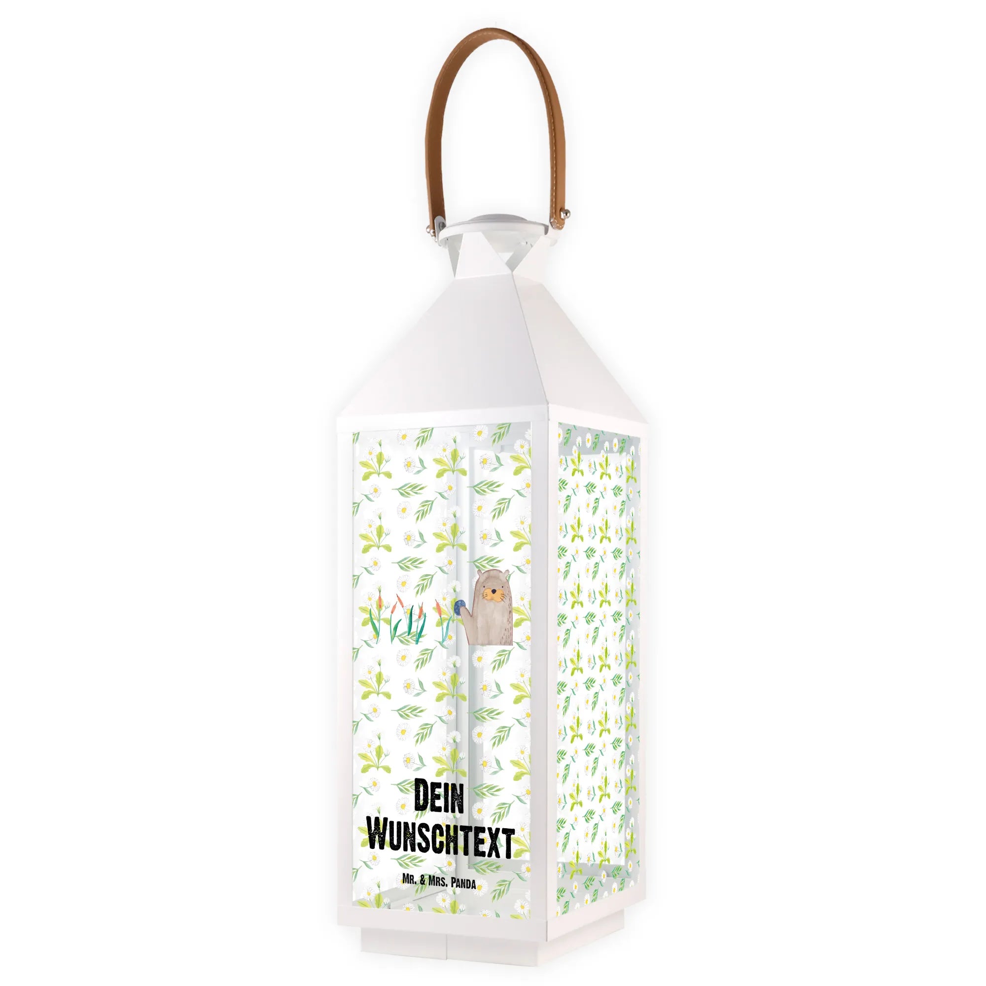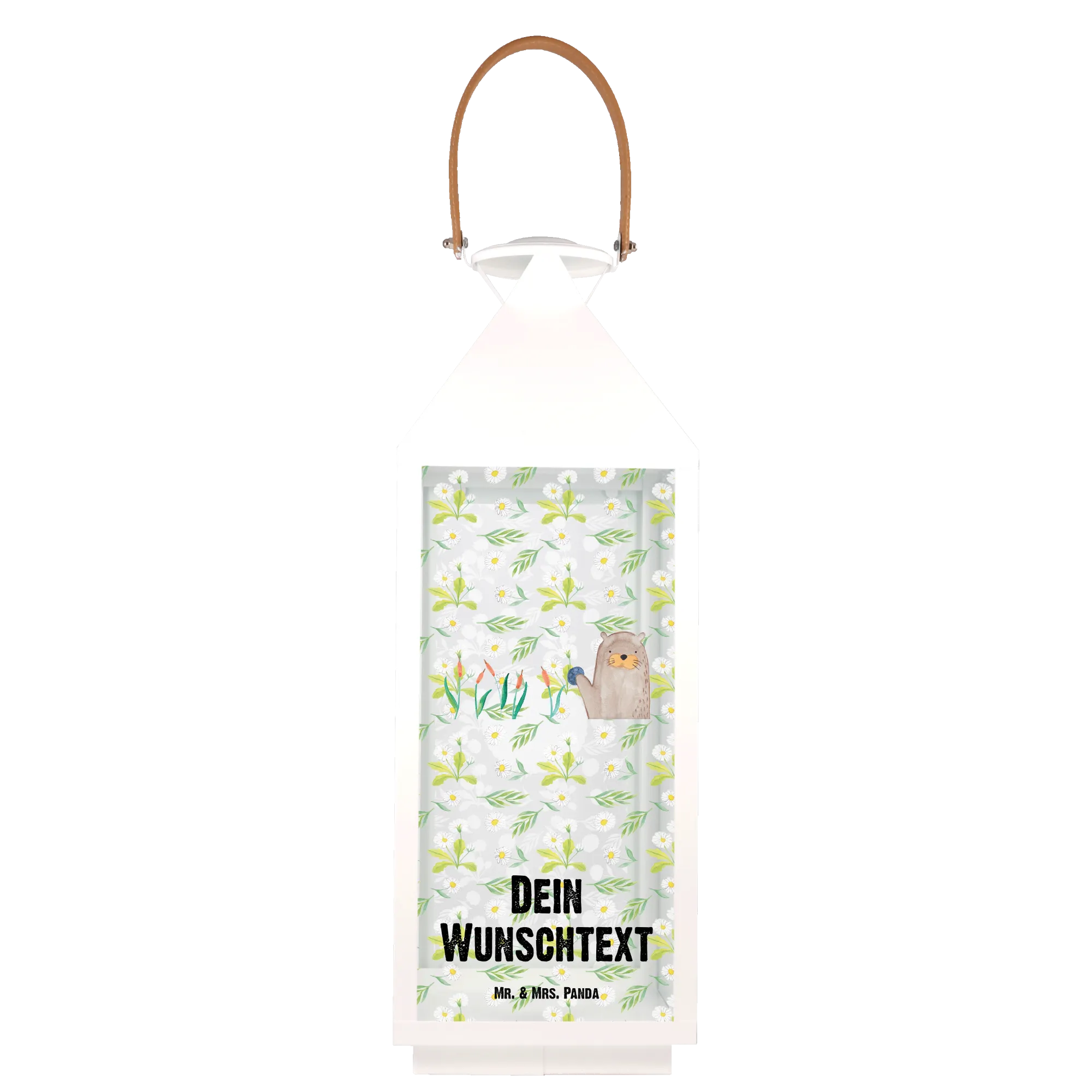 Die personalisierte Deko Laterne mit dem süßen Otter-Motiv von Mr. & Mrs. Panda ist das perfekte Geschenk für alle Otter-Liebhaber und Gartenfreunde!