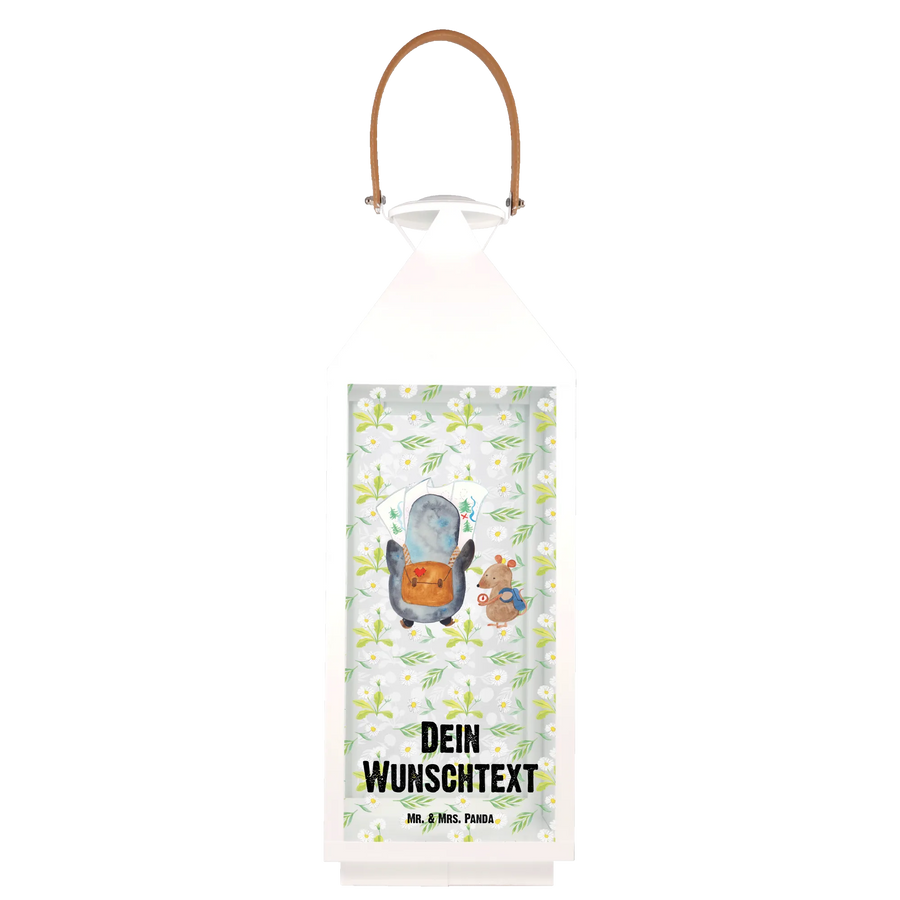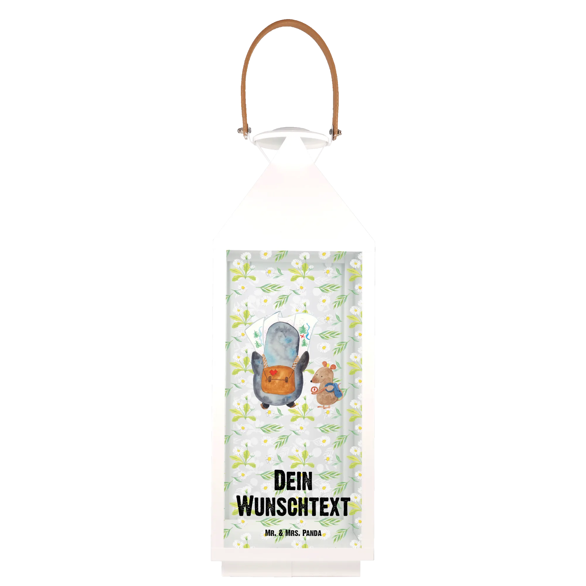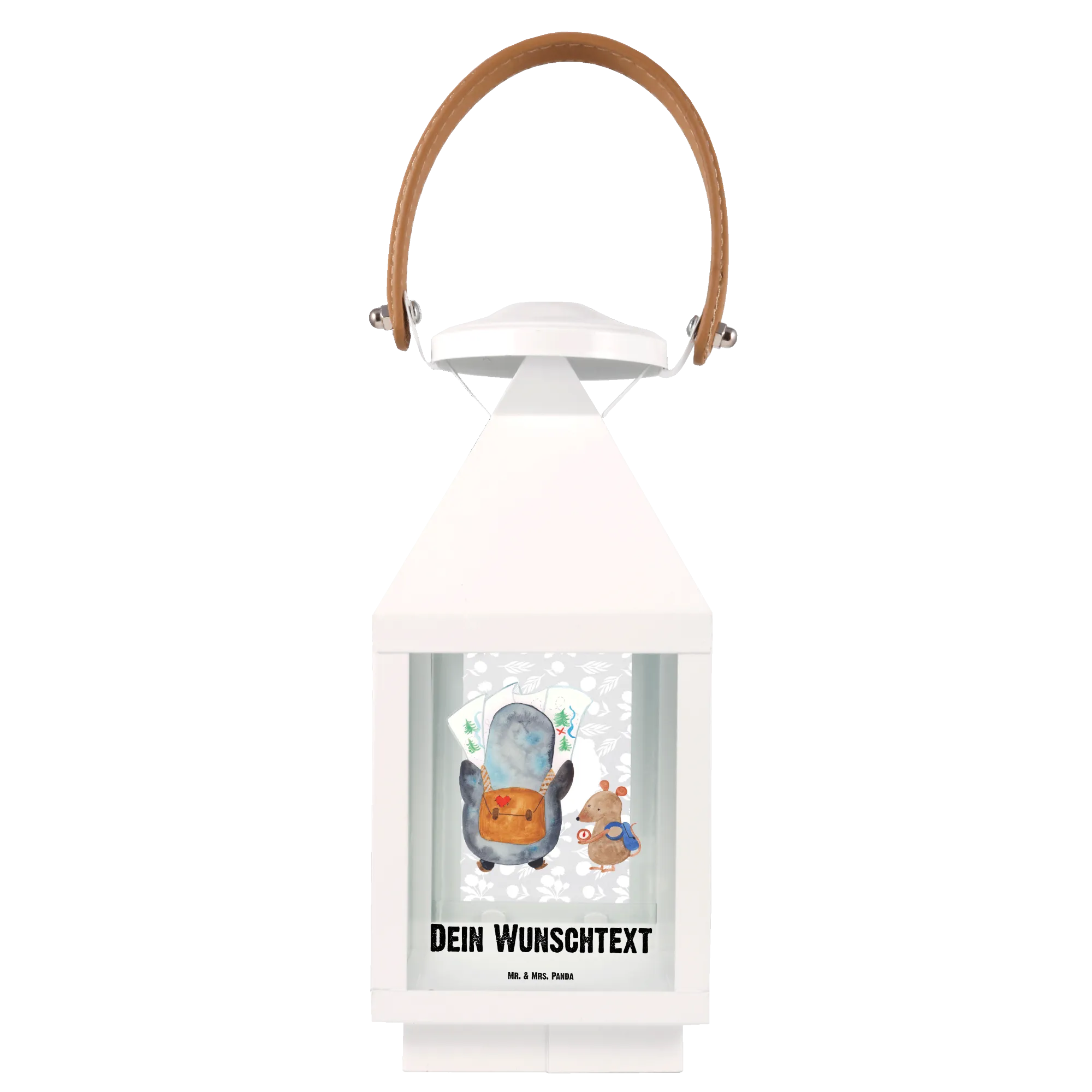Die personalisierte Deko Laterne "Pinguin & Maus Wanderer" aus der Pinguin-Kollektion von Mr. & Mrs. Panda ist das perfekte Geschenk für alle Abenteuerliebhaber und Gartenenthusiasten.