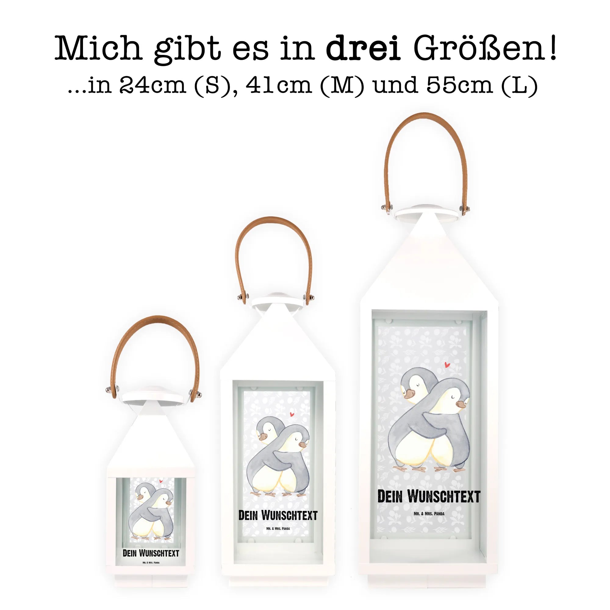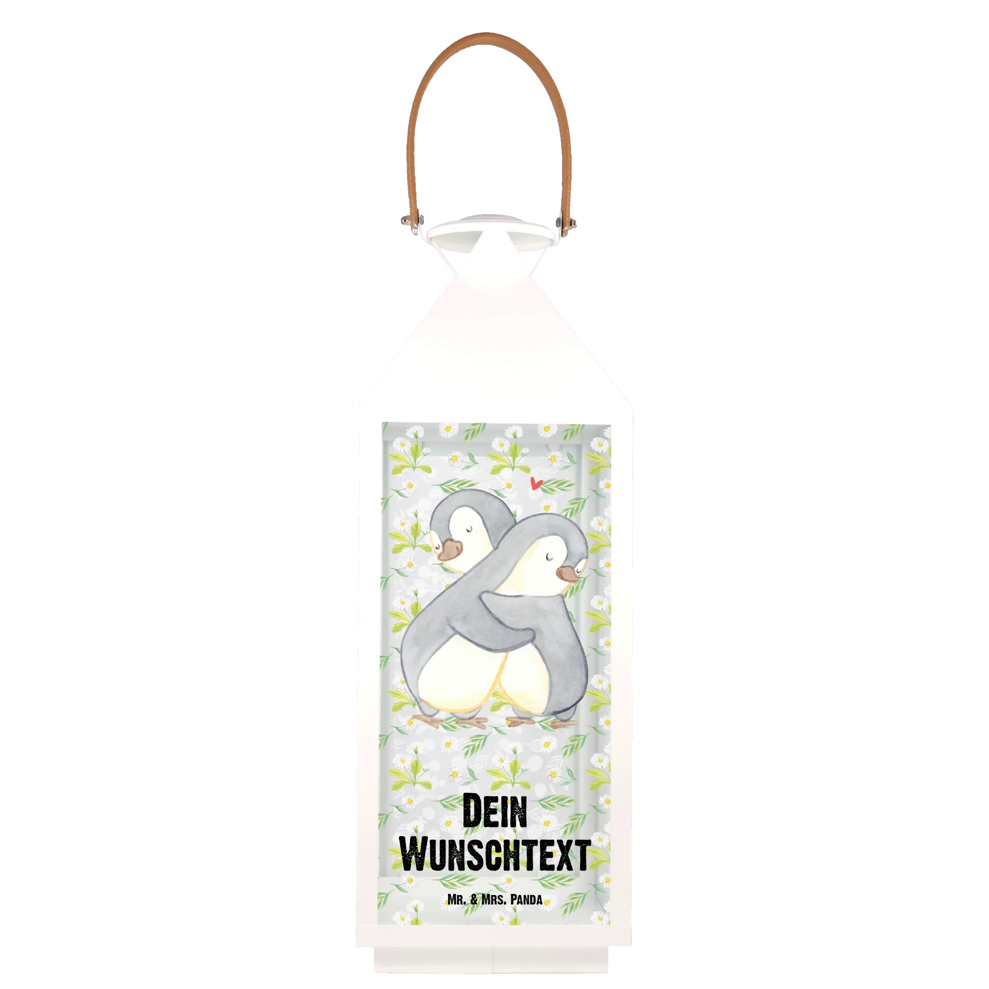Die personalisierte Deko Laterne mit dem süßen Motiv "Pinguine Kuscheln" von Mr. & Mrs. Panda ist das perfekte Geschenk für all die lieben Menschen in deinem Leben. Sie bringt nicht nur Licht in dunkle Ecken, sondern auch Wärme in dein Herz und in das deiner Liebsten.