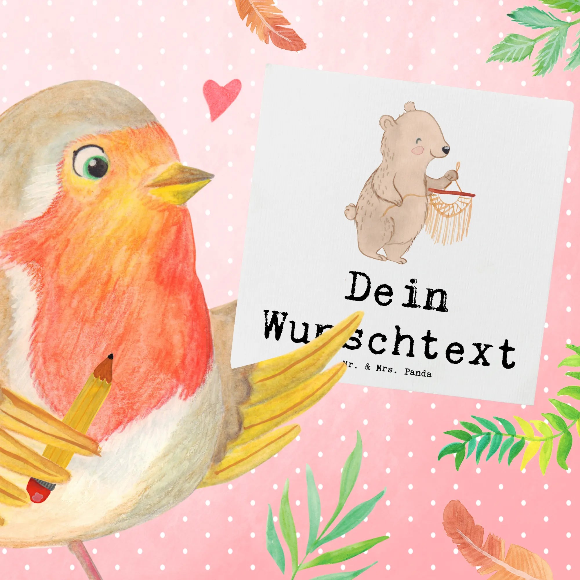 Personalized Deluxe Card bear macrame - White