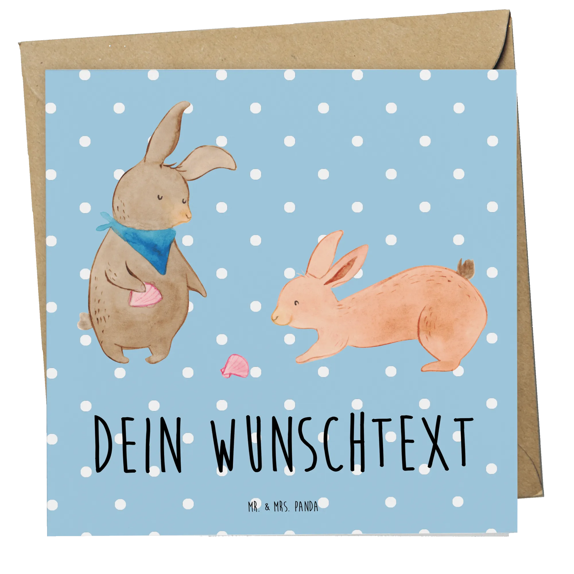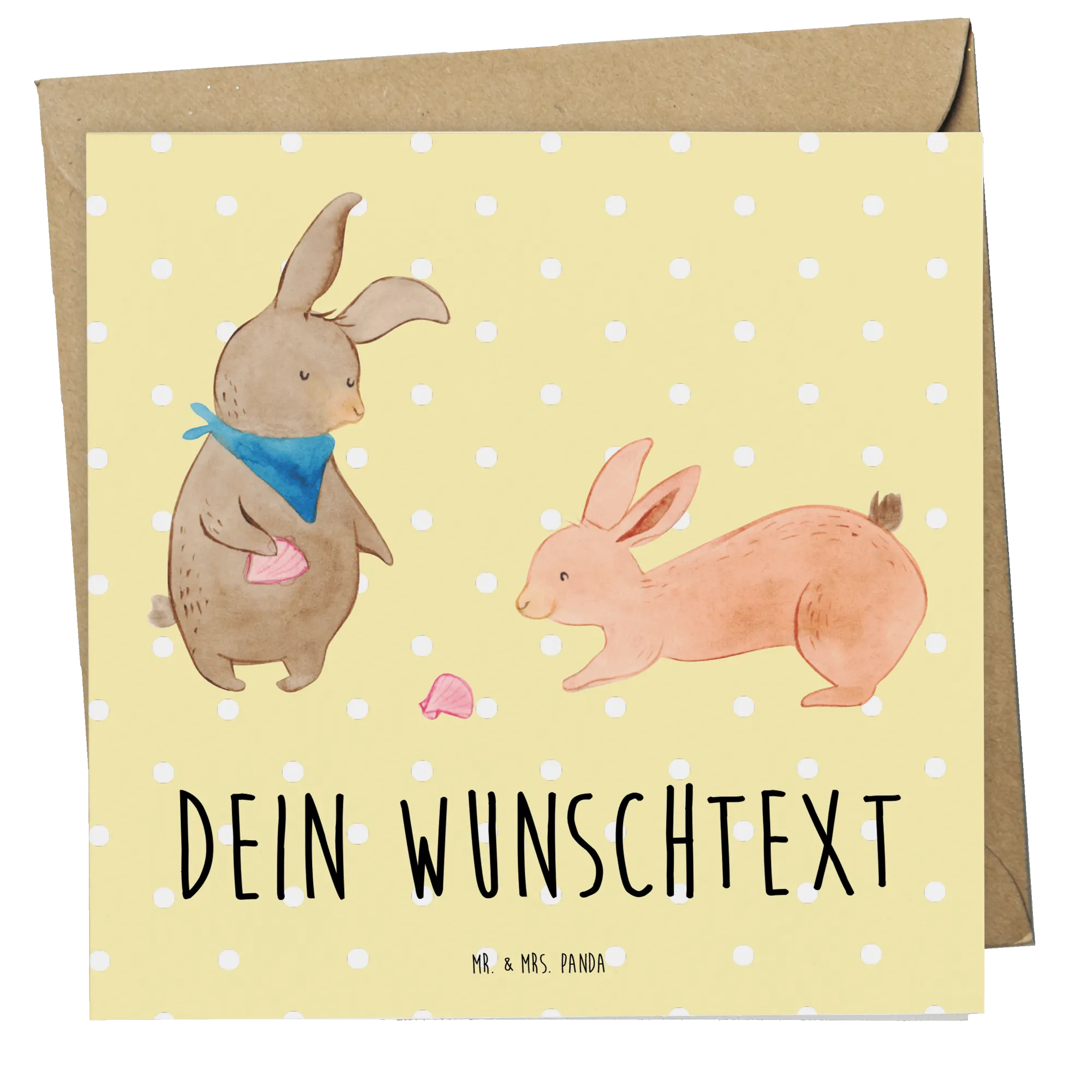 Personalized Deluxe Card Bunnies with seashell - Yellow Pastel