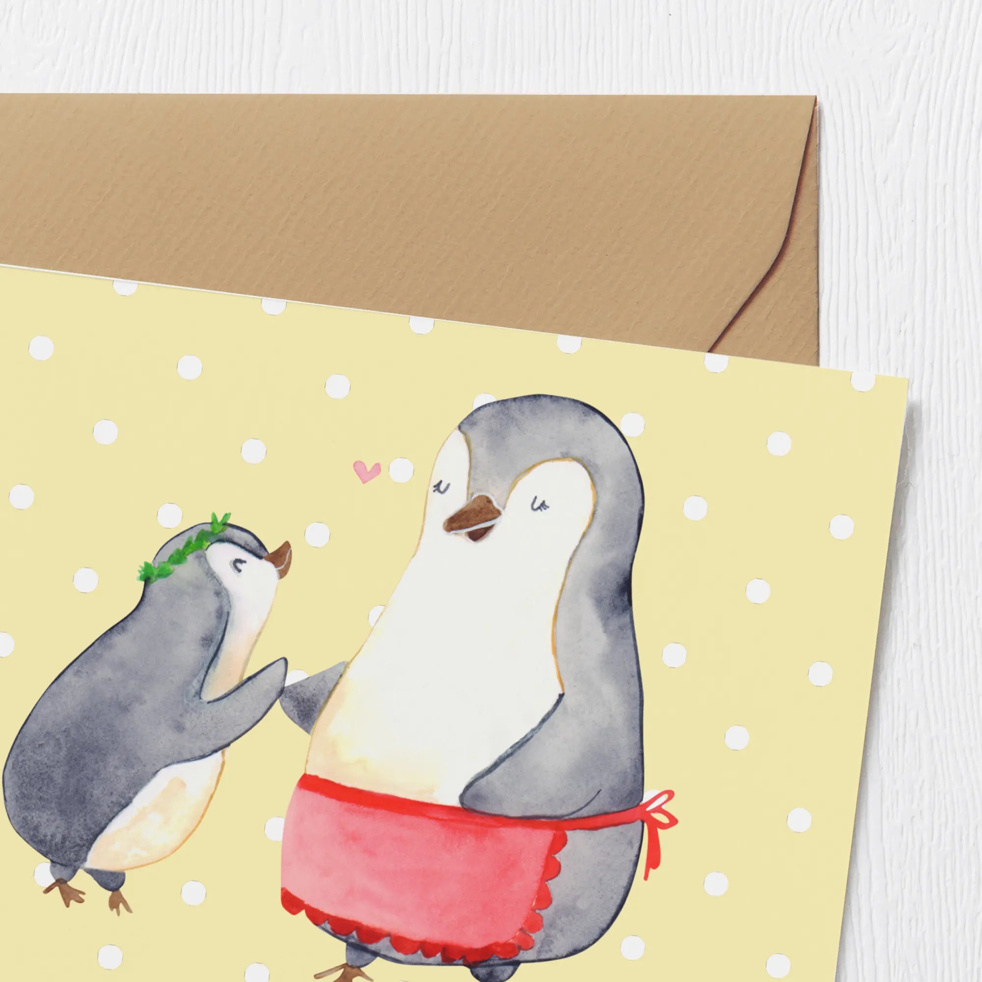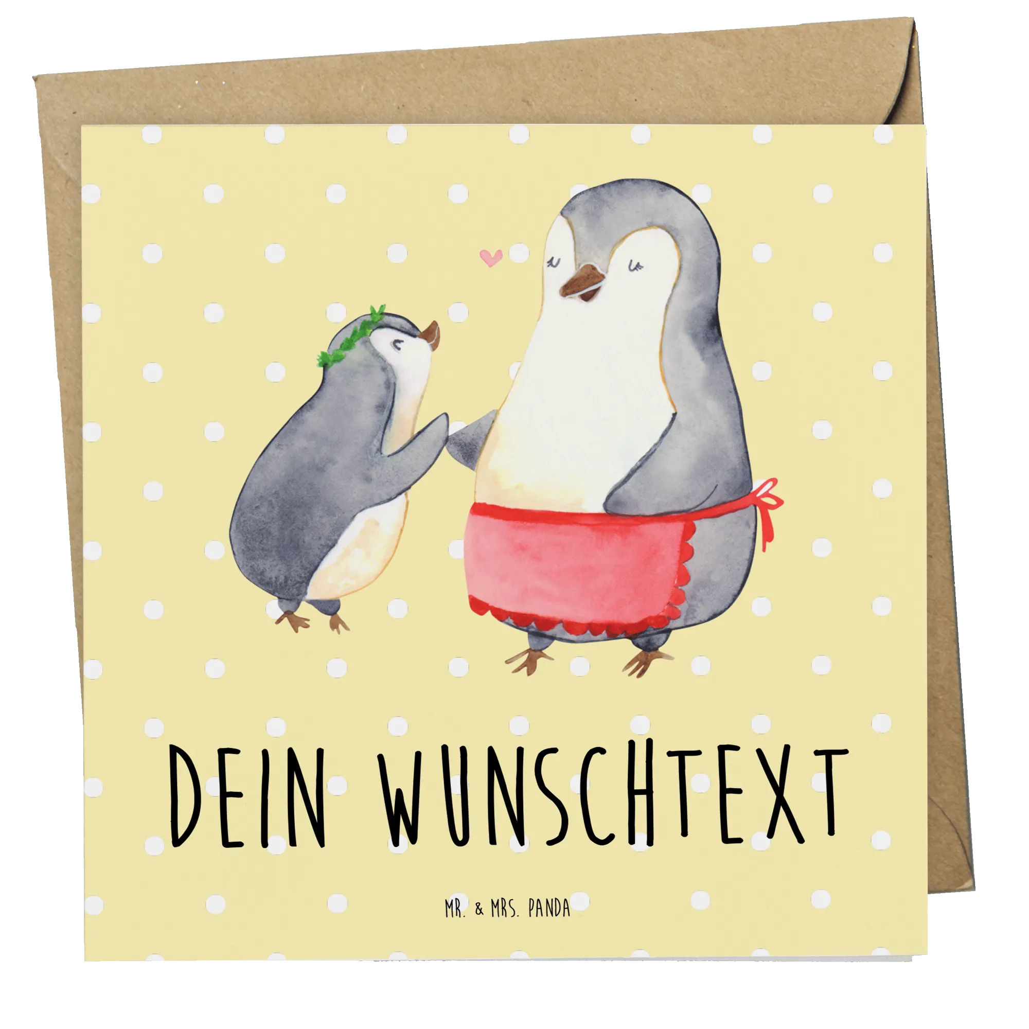 Personalized Deluxe Card Penguin with child - Yellow Pastel