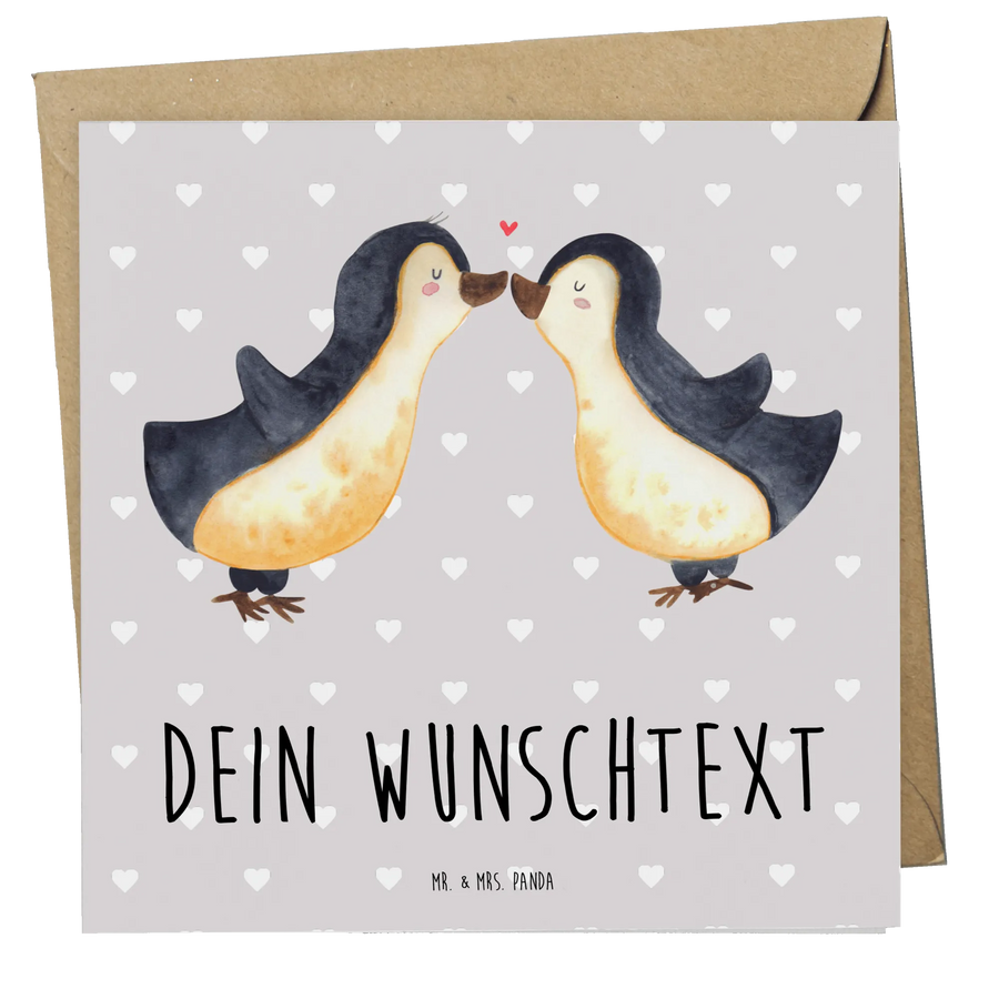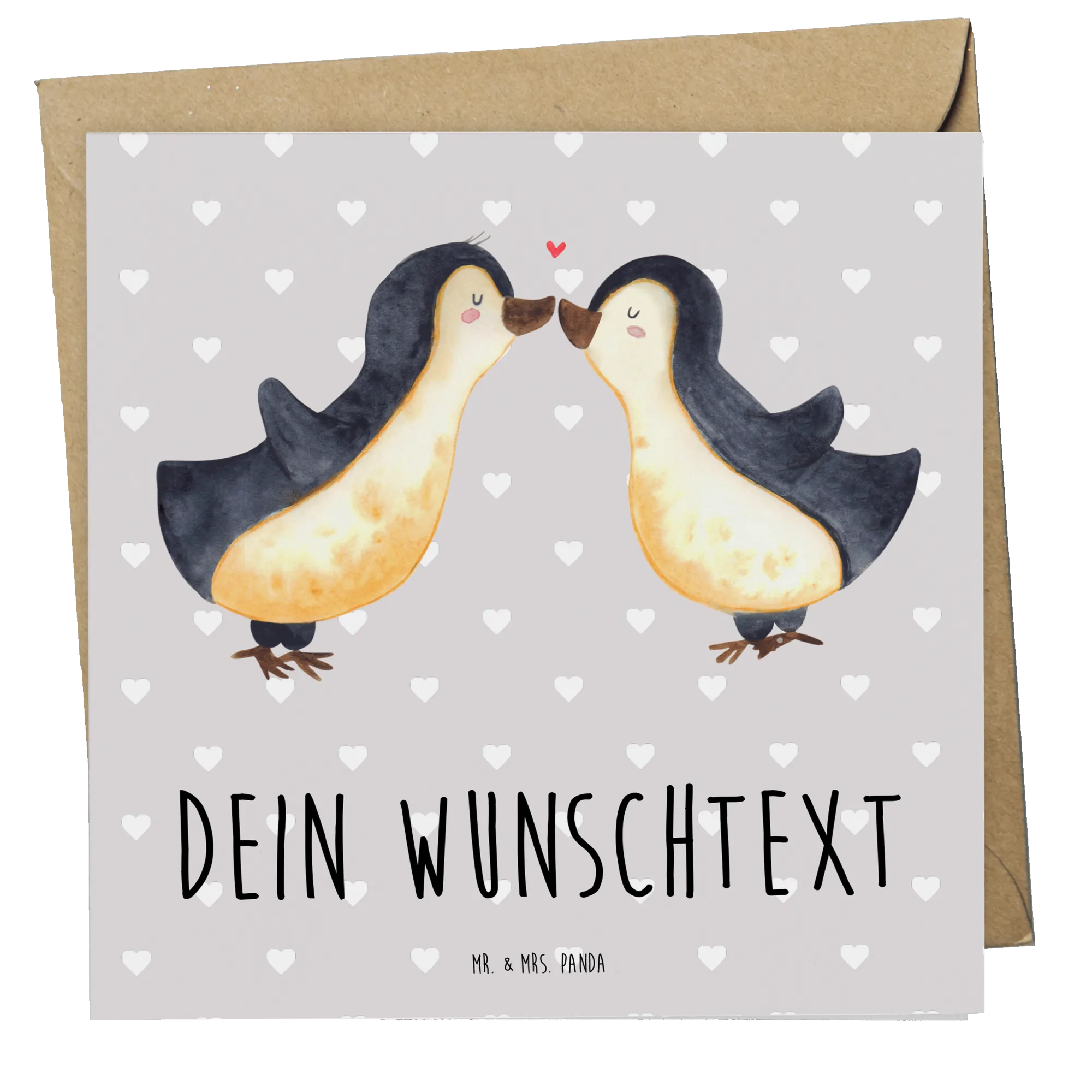 Personalized Deluxe Card penguins kiss - Grey Pastel