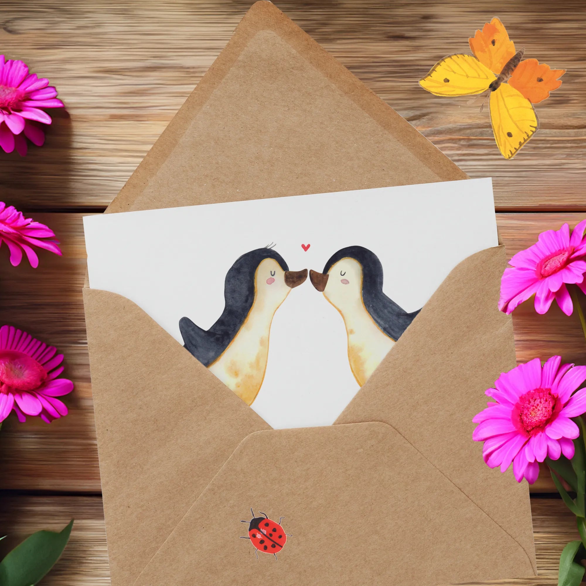 Personalized Deluxe Card penguins kiss - Pastel Gray