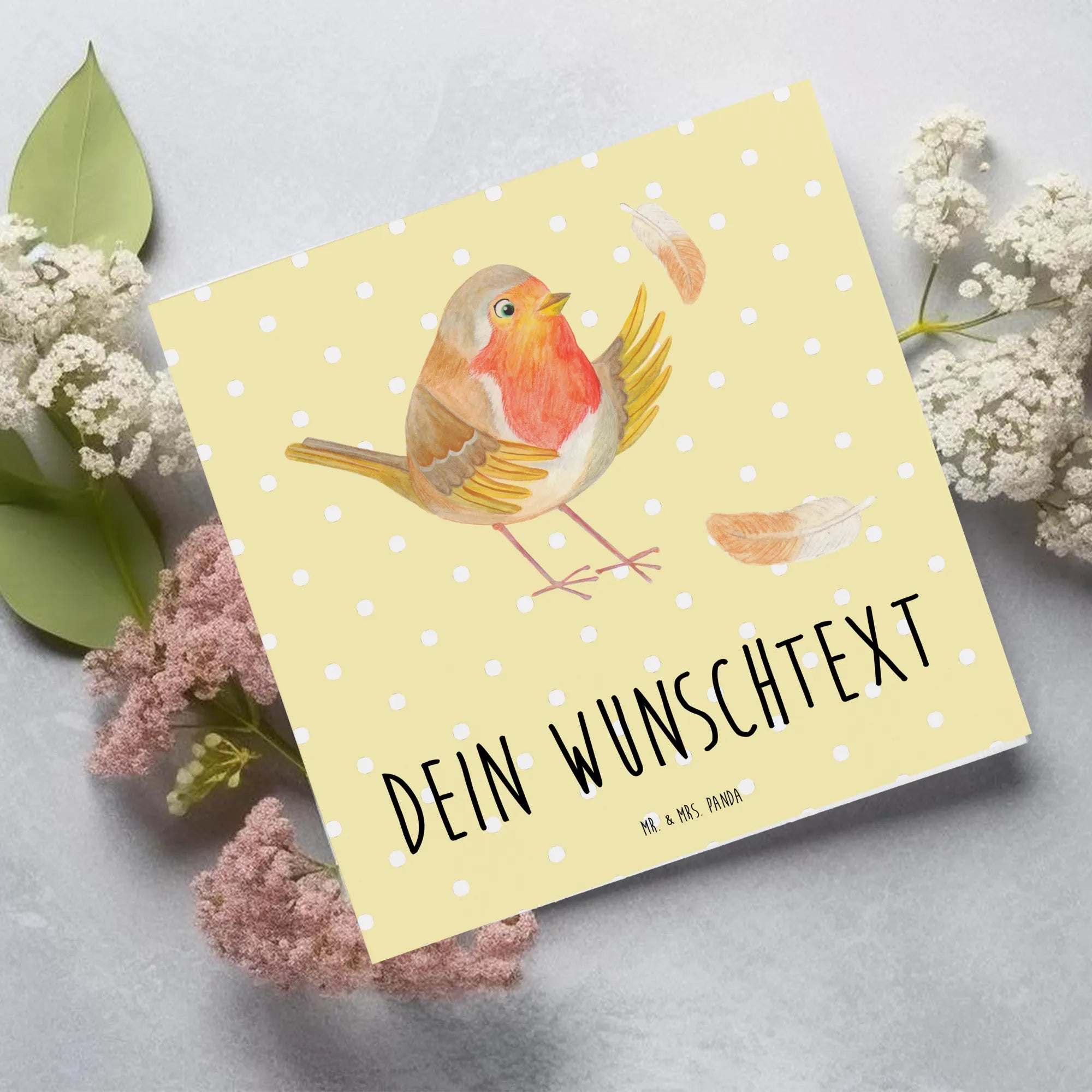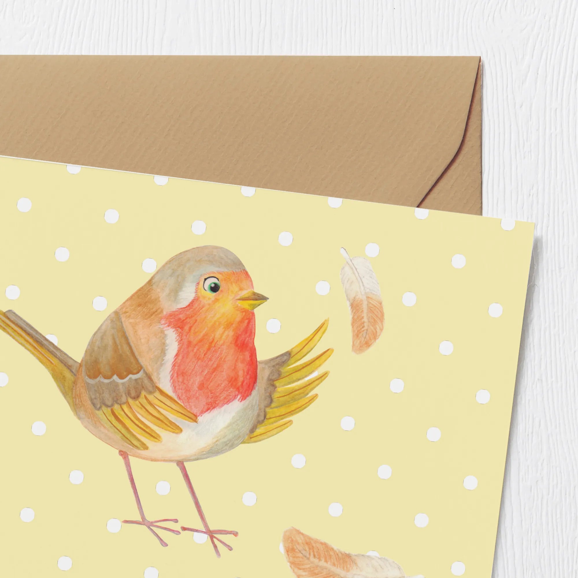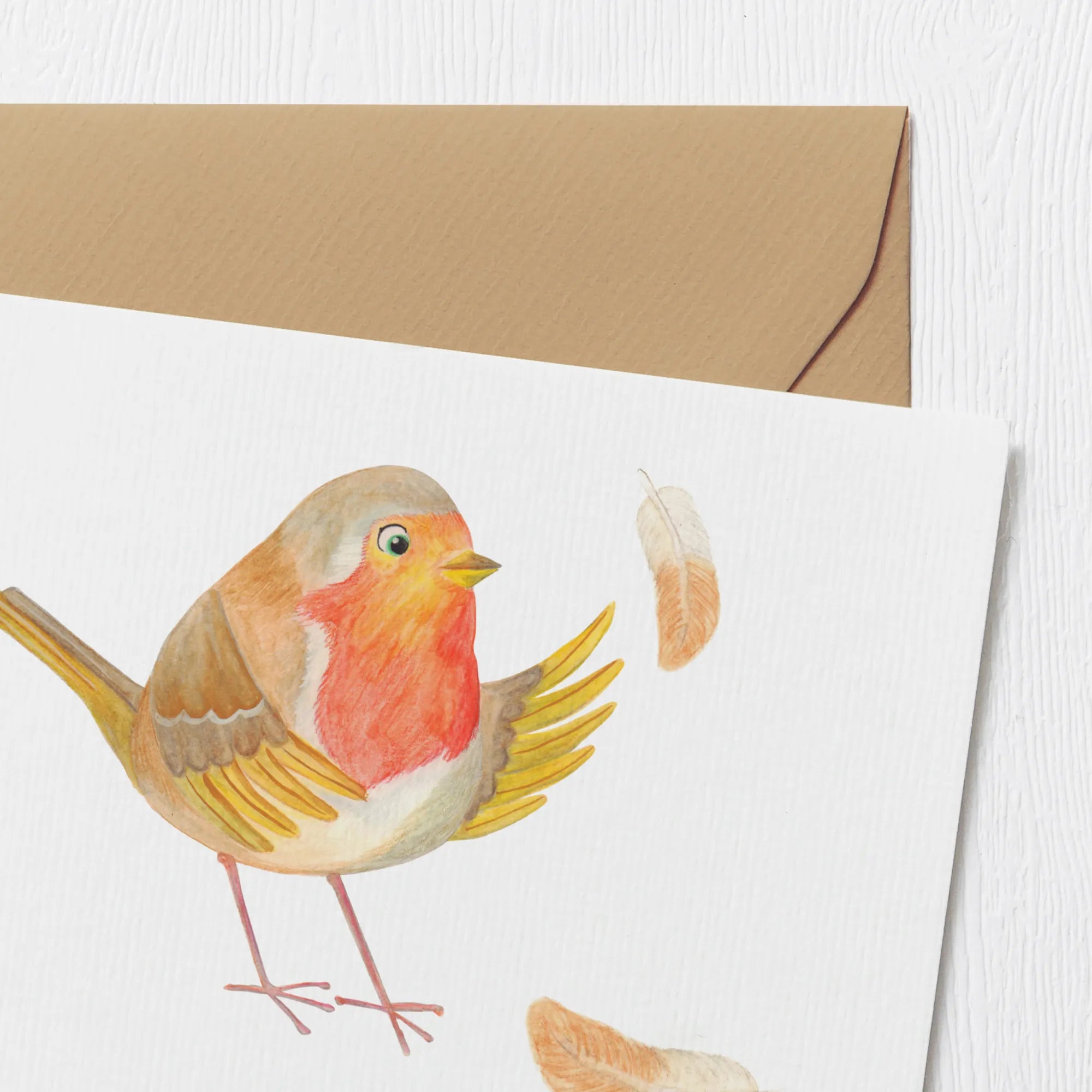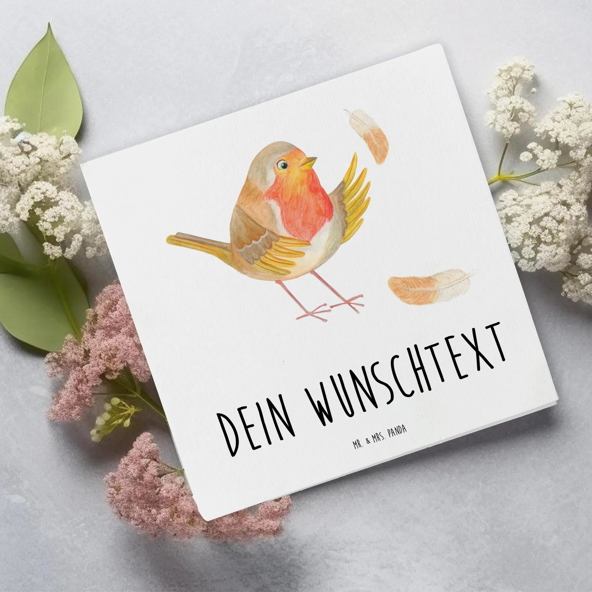 Personalized Deluxe Card robin feathers - White