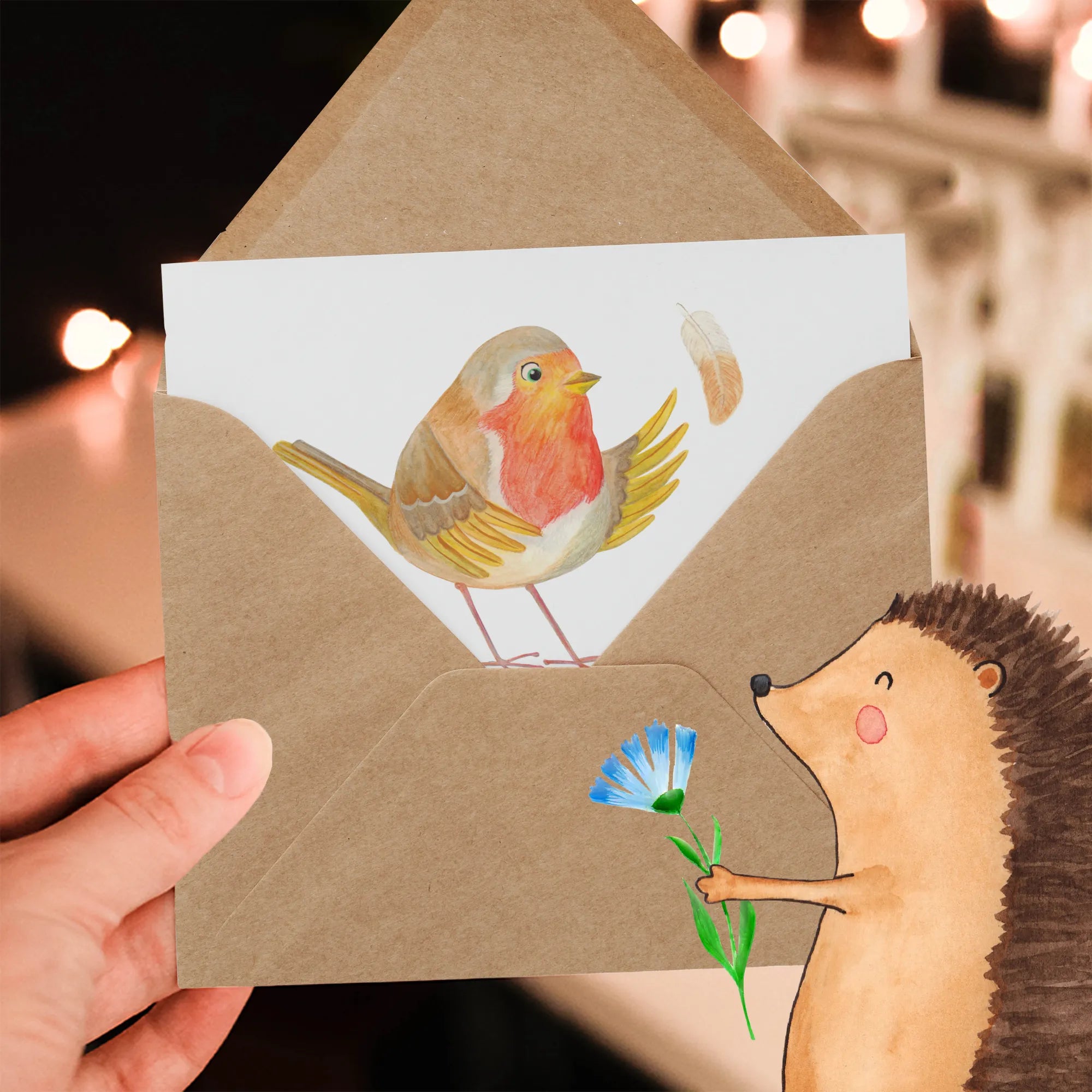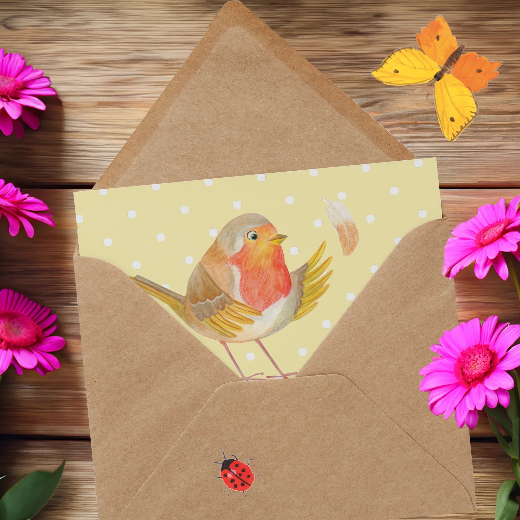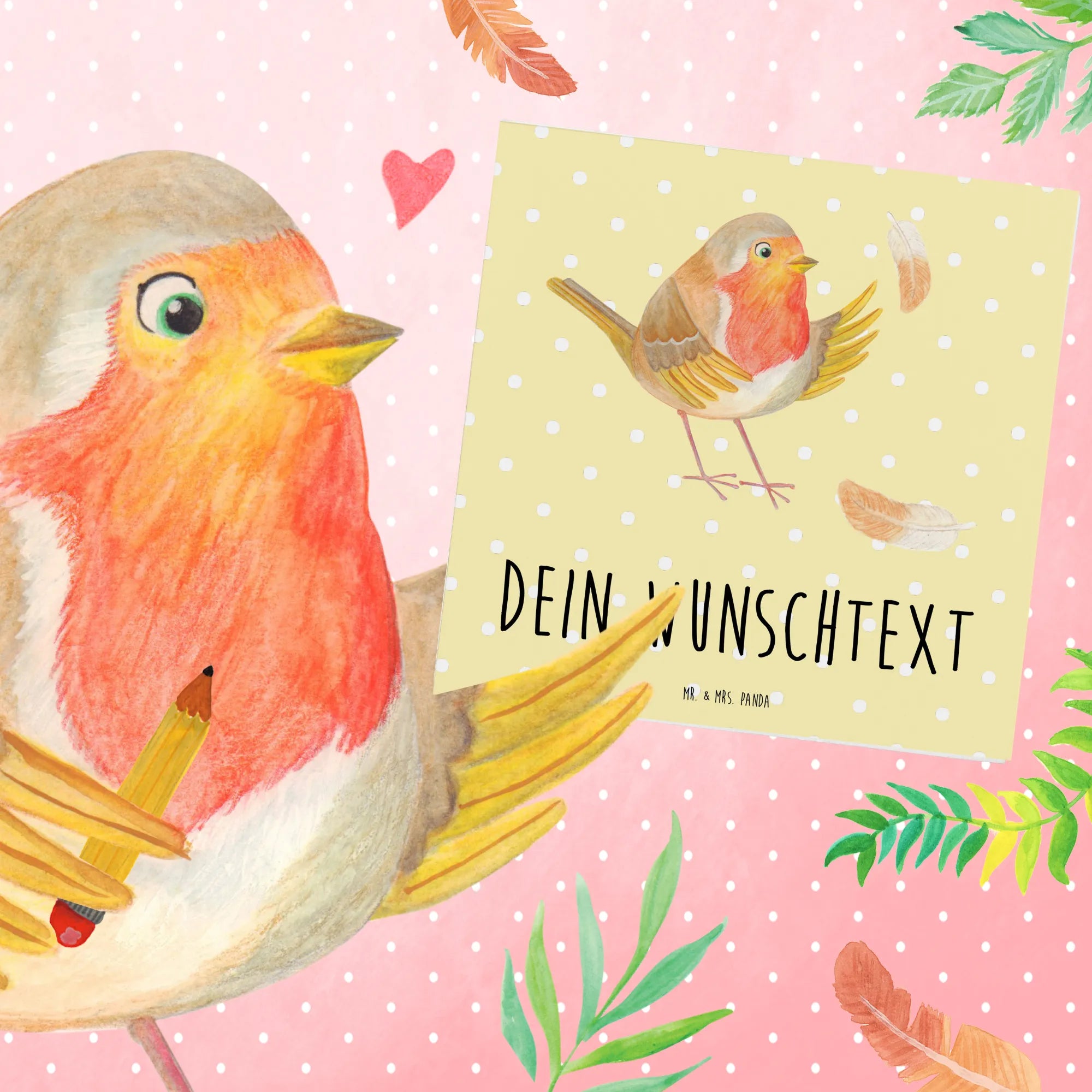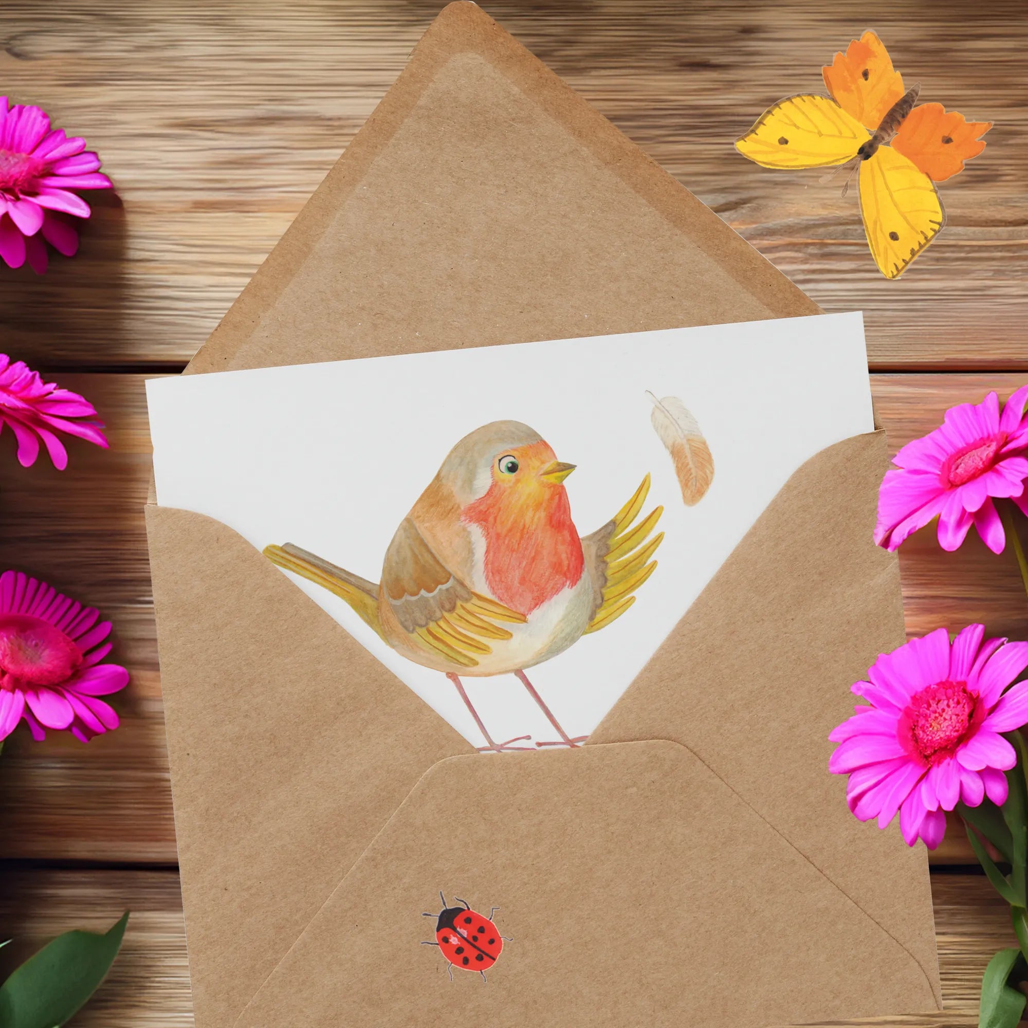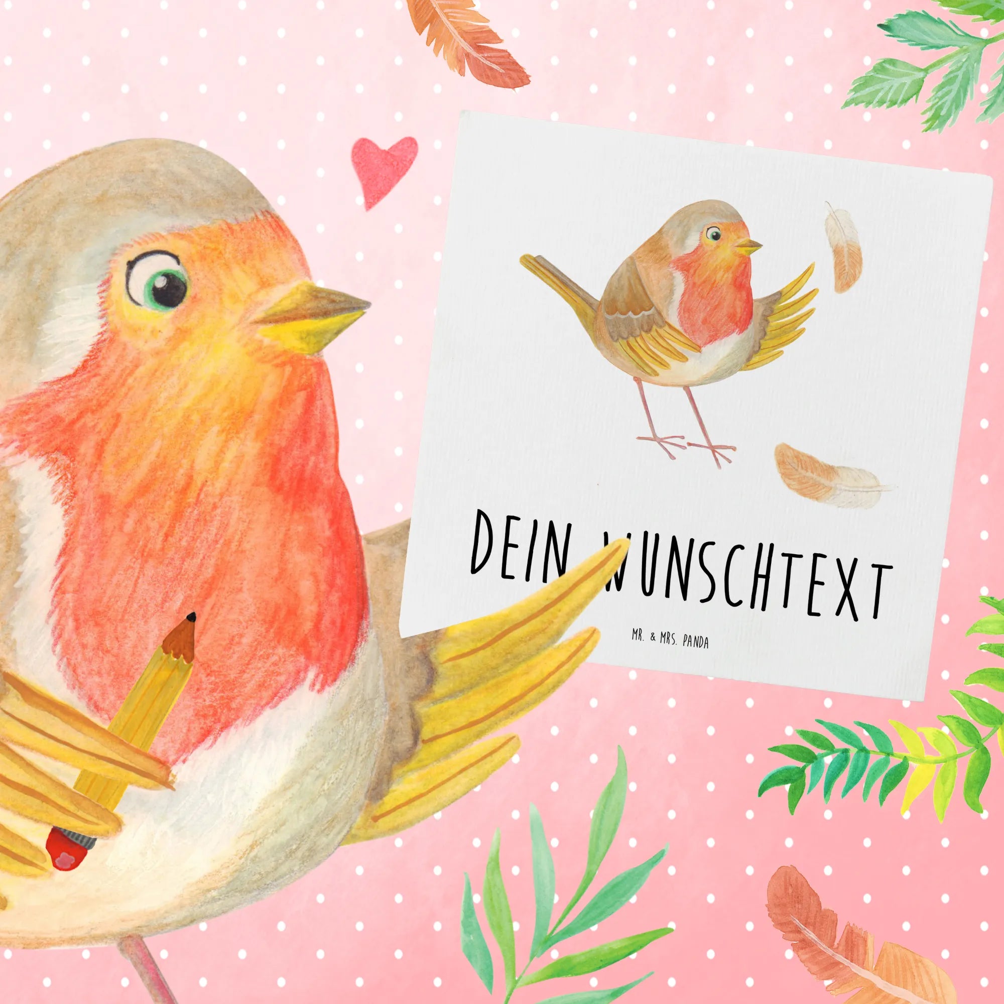 Personalized Deluxe Card robin feathers - White