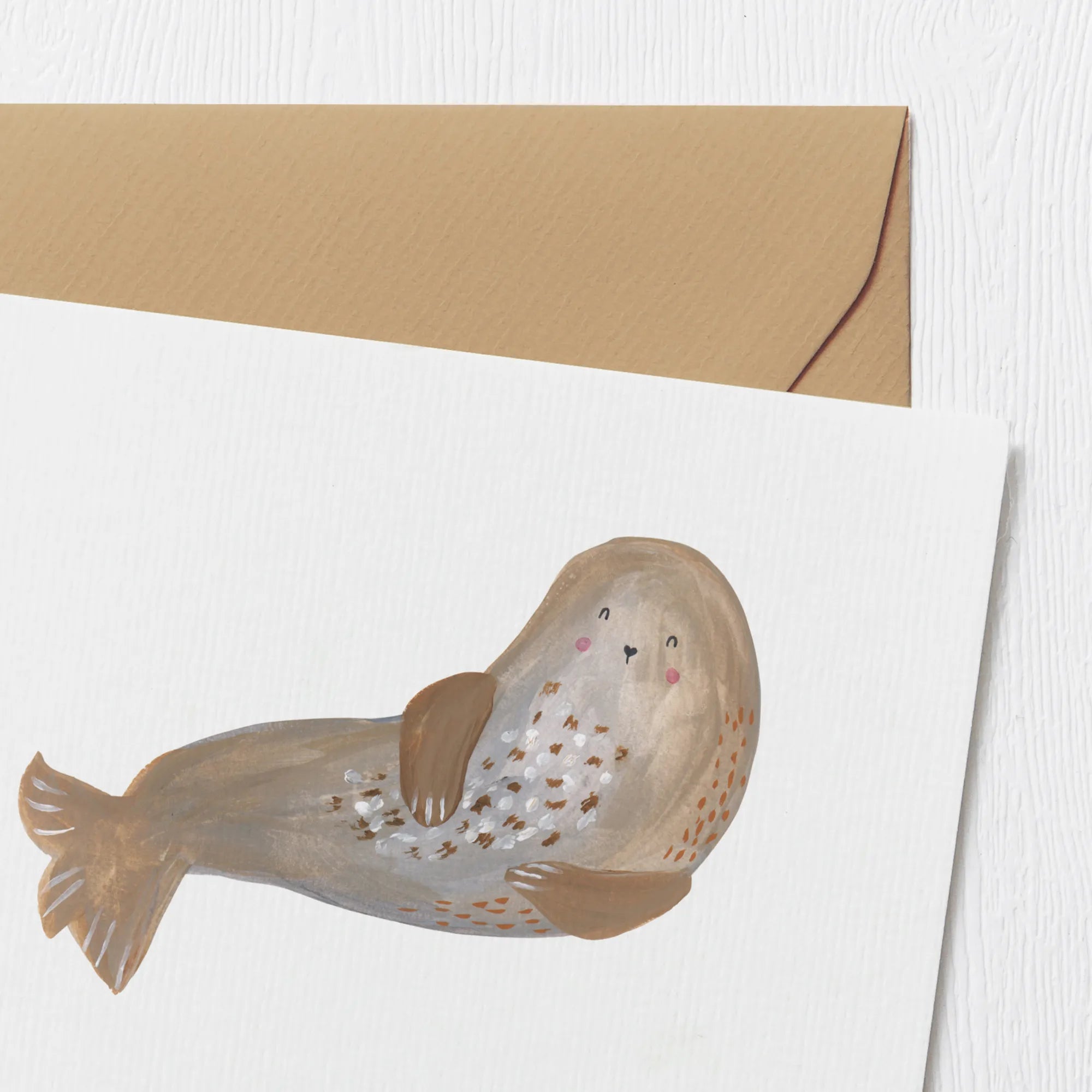 Seals are very cute, peaceful and comfortable animals. They love to lie on the beach in groups and let the sun shine on their fur. The seals were lovingly drawn in watercolour by Mrs. Panda.