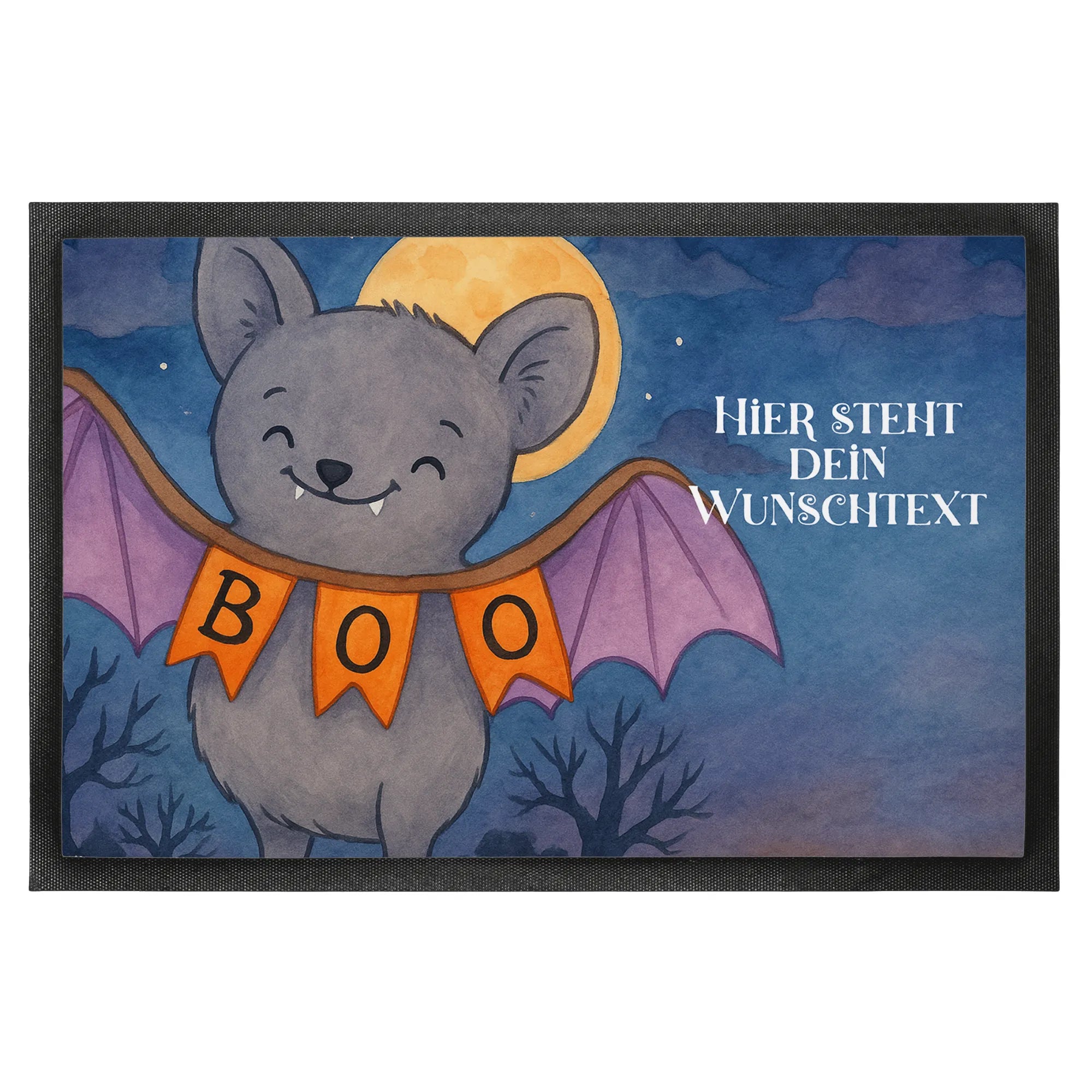 Personalisierte Fußmatte Fledermaus Boo Design Fußmatte bedrucken, Wunschnamen, Bedrucken, Türvorleger mit Namen, Türvorleger personalisiert, Haustürmatte personalisiert, Fußmatte mit Namen, Personalisieruung, Personalisierte Fußmatte, Namensfussmatte, Personalisiert, Halloween, Deko, Martinssingen, Dekoration, Geschenke, Schenken