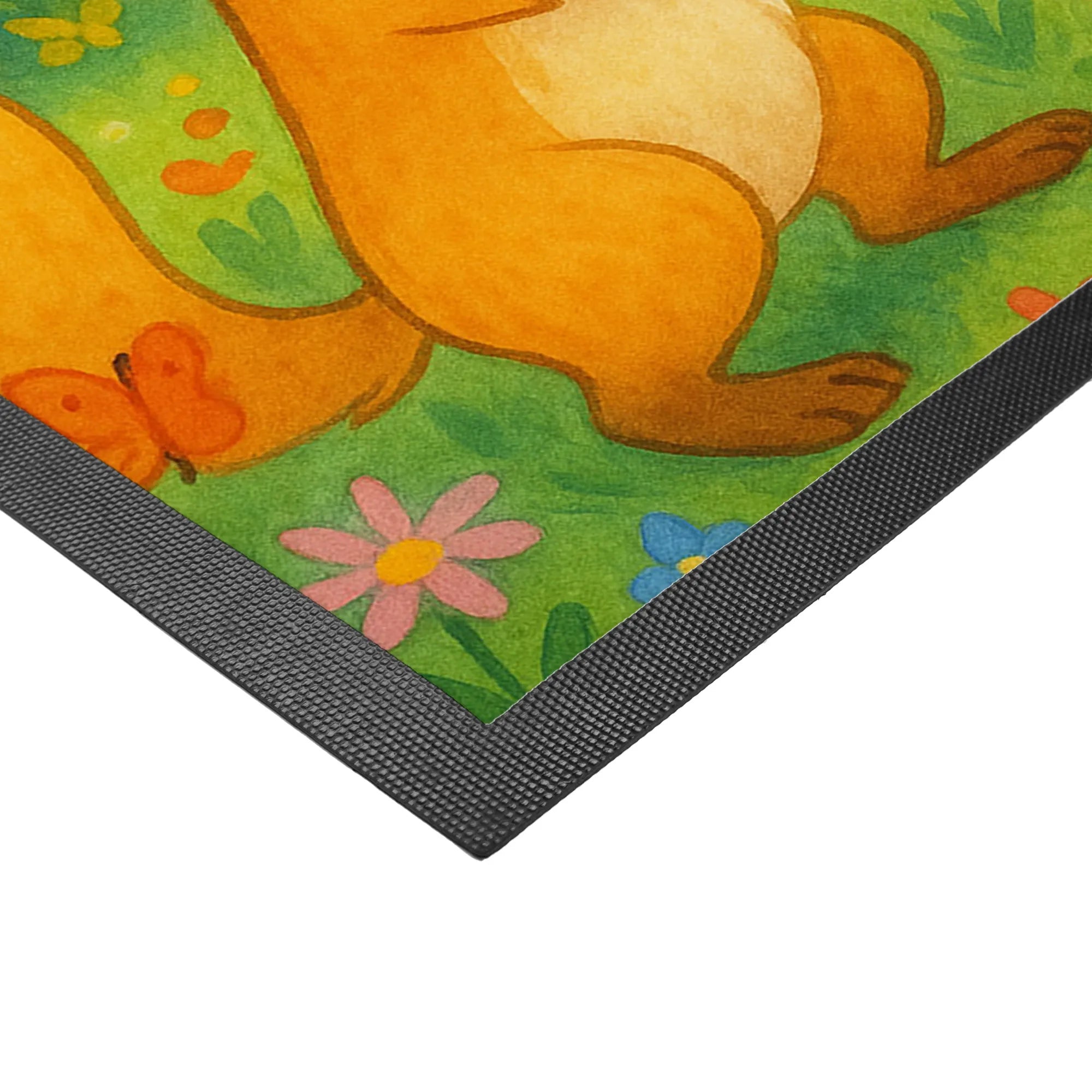 Mit der personalisierten Fußmatte von Mr. & Mrs. Panda setzt du einen kreativen Akzent in deinem Zuhause! Diese Matte misst 400 mm x 600 mm x 5 mm und besteht aus strapazierfähigem Polyesterfilz. Die gummierte Rückseite macht sie besonders rutschfest, sodass du keine Sorge haben musst, auszurutschen. Sie kann mit deinem Wunschtext oder einem persönlichen Spruch gestaltet werden und wird damit zum echten Blickfang. Das Material ist wetterbeständig und abriebfest, perfekt für sowohl Innen- als auch Außeneinsätze. Die Pflege der Matte ist unkompliziert: einfach ausklopfen, absaugen oder bei hartnäckigen Flecken bis zu 30°C waschen. Der breite Gummirand verhindert das Ausfransen und verlängert die Lebensdauer dieser besonderen Matte. Lass dein Zuhause einladend wirken mit dieser einzigartigen Fußmatte, die zu deinem Stil passt!