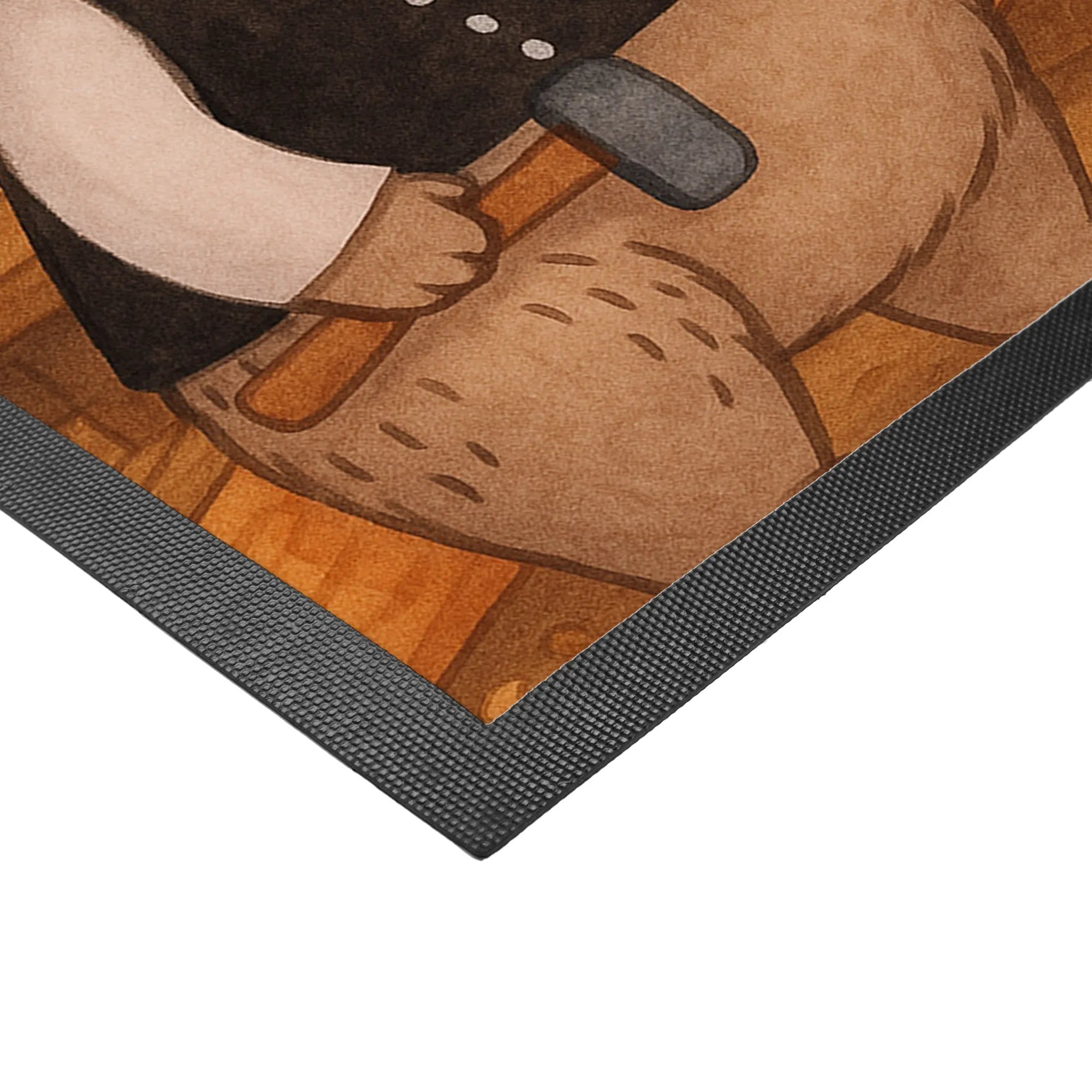 Mache den ersten Eindruck unvergesslich mit der personalisierten Fußmatte von Mr. & Mrs. Panda! Sie misst 500 mm x 780 mm x 5 mm und ist ein echtes Must-Have für jeden Eingangsbereich. Wähle deinen ganz persönlichen Spruch oder Namen, und mache diese Matte einzigartig und individuell. Die Vorderseite besteht aus strapazierfähigem Polyesterfilz, das nicht nur schön aussieht, sondern auch robust ist. Die gummierte Rückseite sorgt dafür, dass die Matte an ihrem Platz bleibt und nicht verrutscht. Unsere Fußmatte ist abriebfest und wetterbeständig, sodass sie jeden Widrigkeiten standhält. Die Pflege ist denkbar einfach: einfach ausklopfen oder absaugen oder bis zu 30°C in der Waschmaschine waschen. Dank des breiten Gummirands bleibt die Matte auch bei häufigem Betreten in Topform. Lass dein Zuhause liebevoll errichten und gleichzeitig praktisch sein mit dieser bezaubernden und personalisierten Fußmatte!