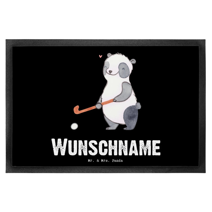 Personalized doormat panda play hockey
