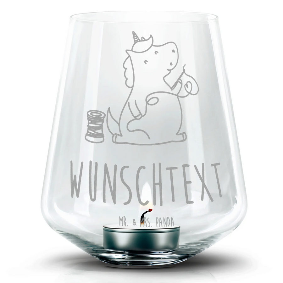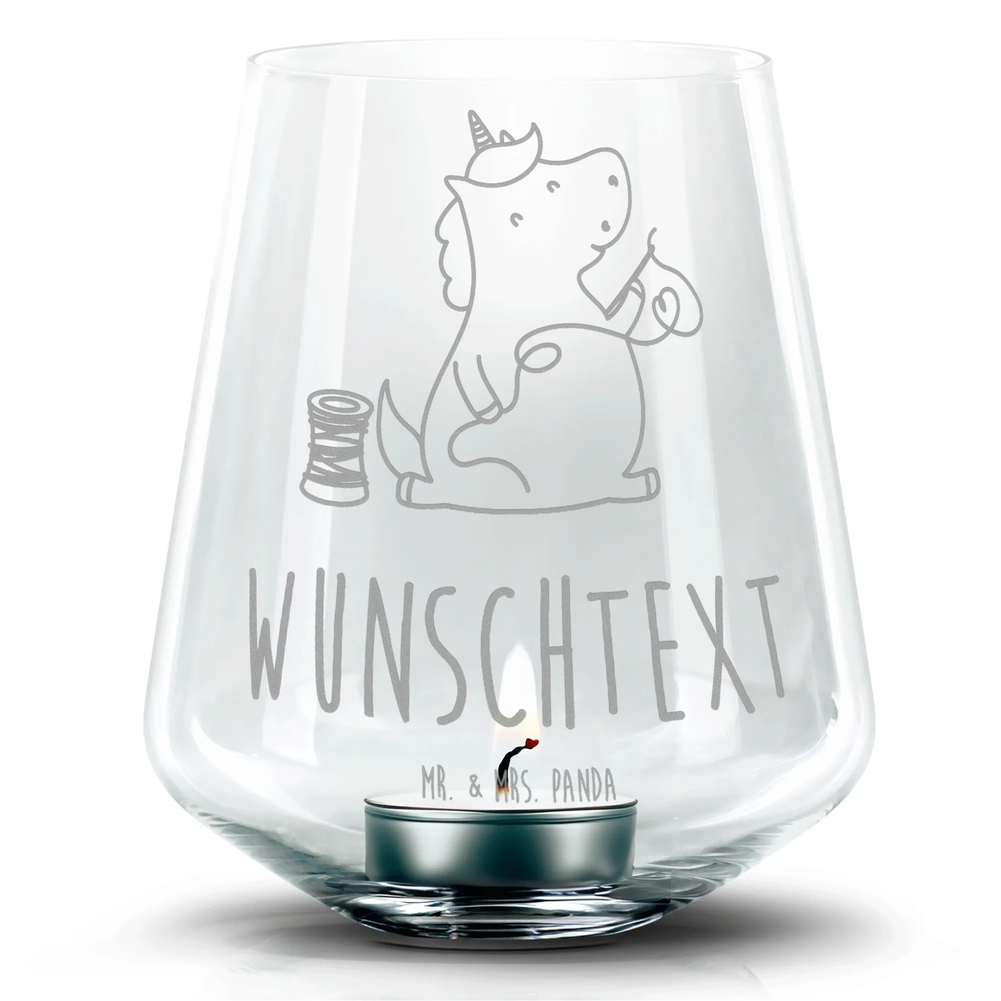Personalisiertes Gravur Windlicht Einhorn Näherin