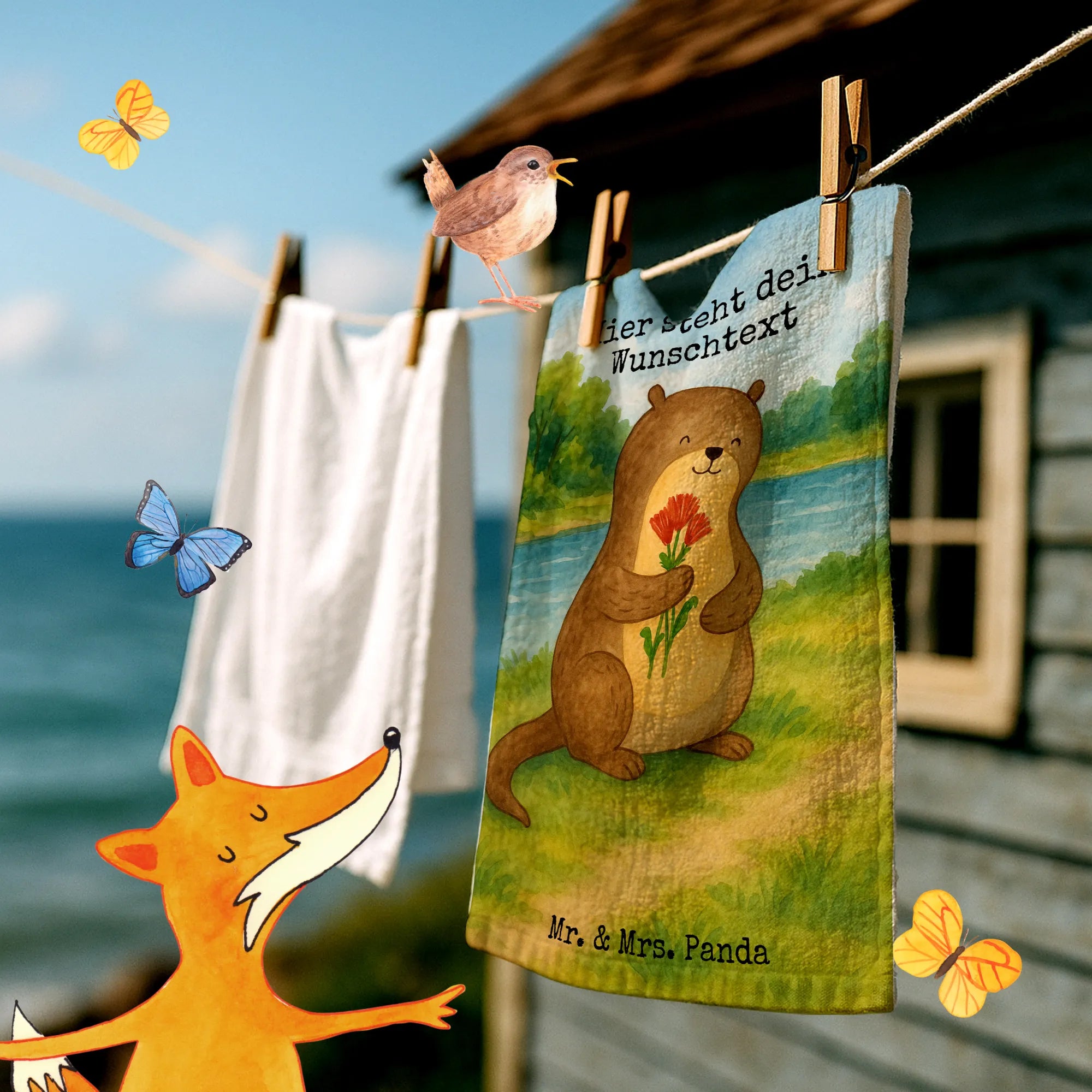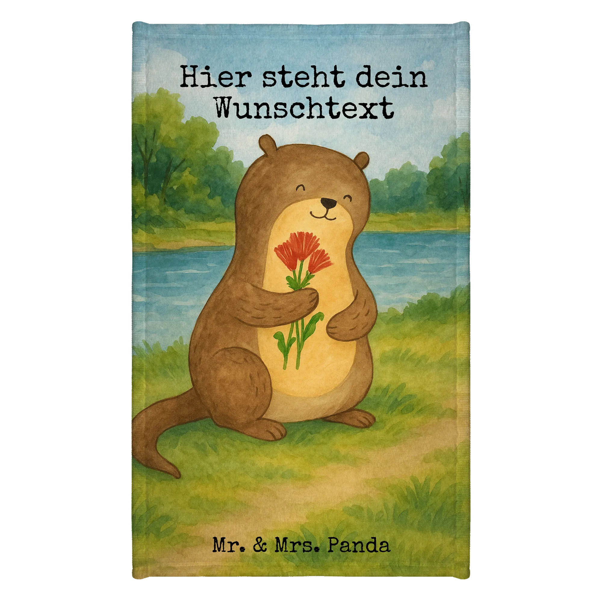 Personalisiertes Gästehandtuch Otter Blumenstrauß Design – Mr. & Mrs. Panda