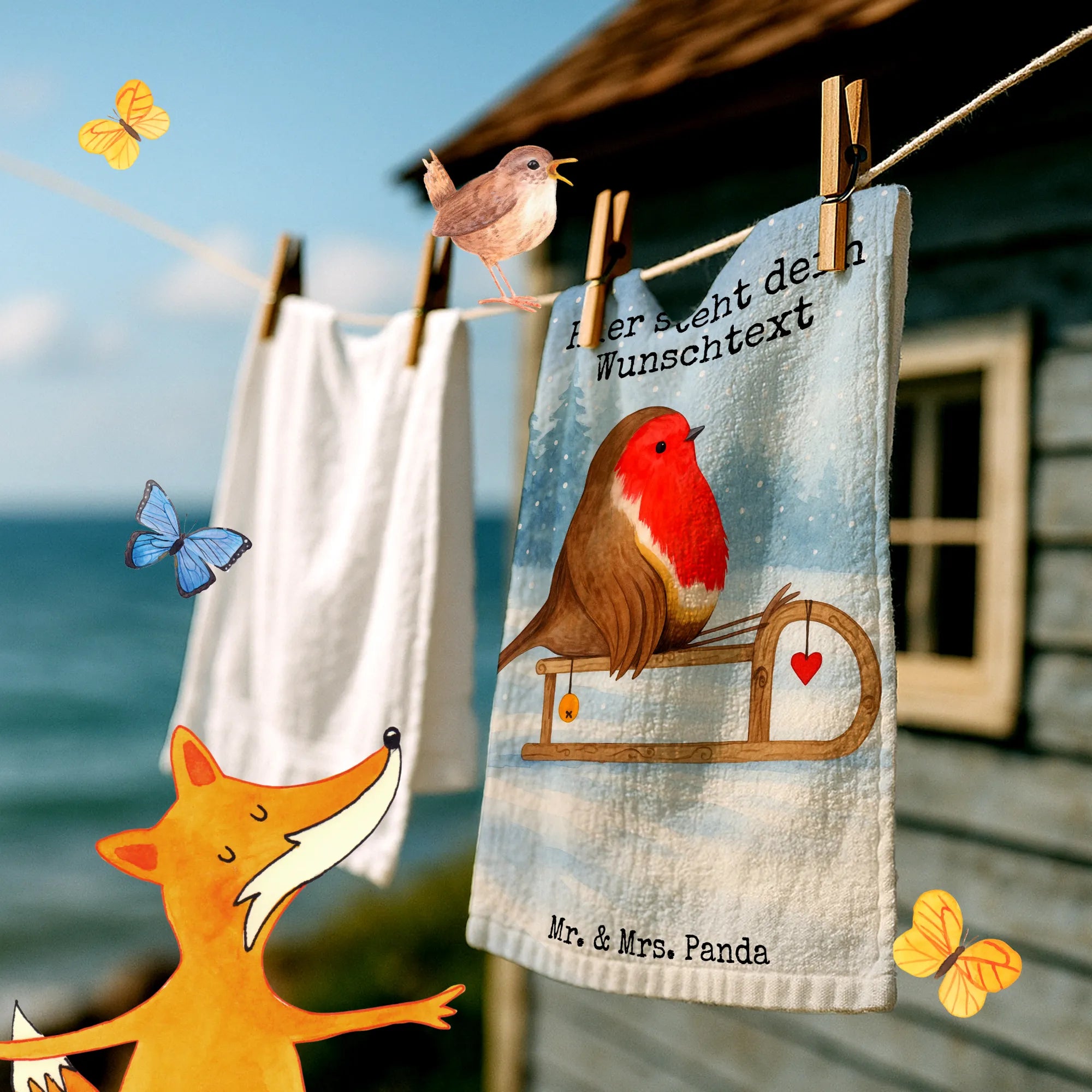 Personalized Guest Towel robin Sleds Design