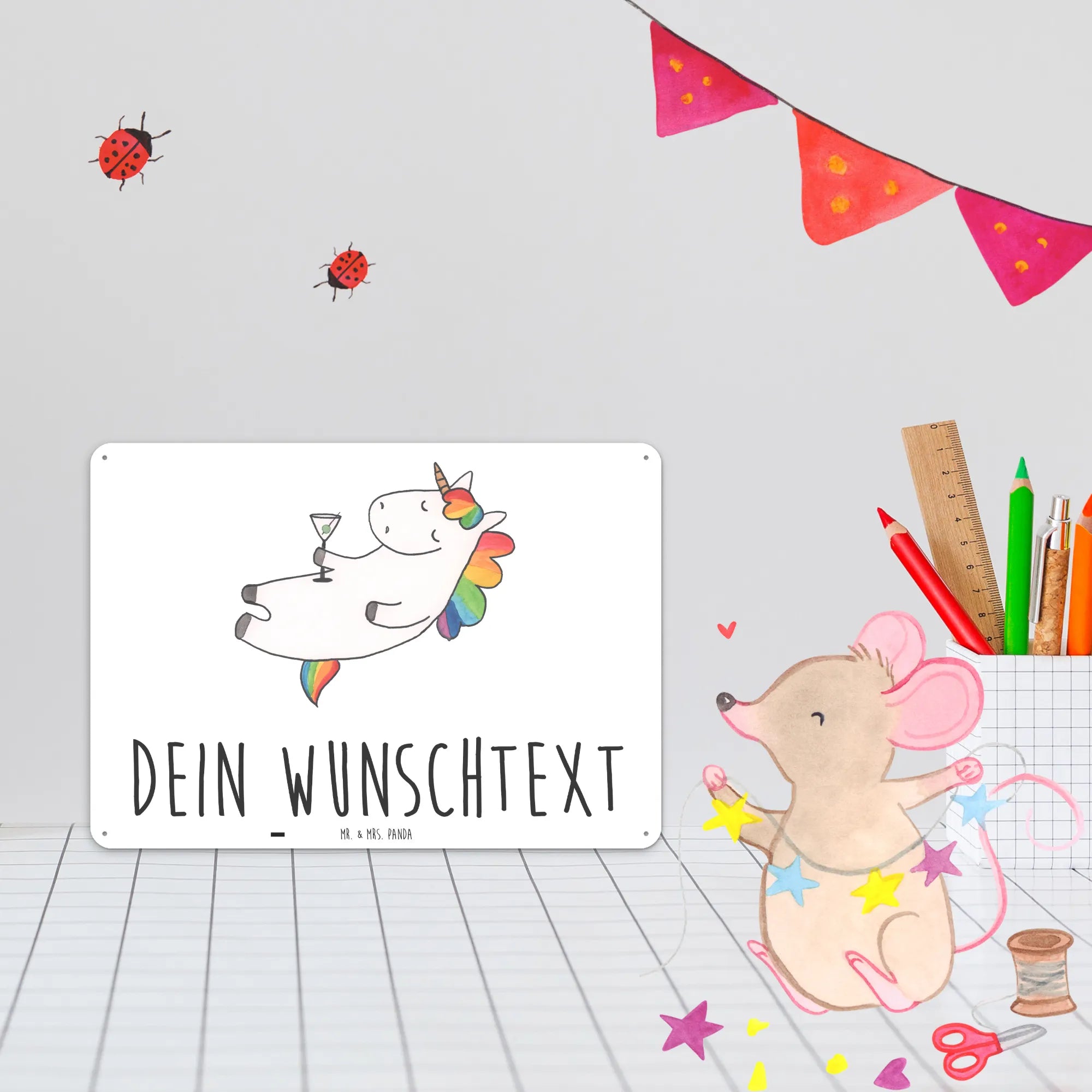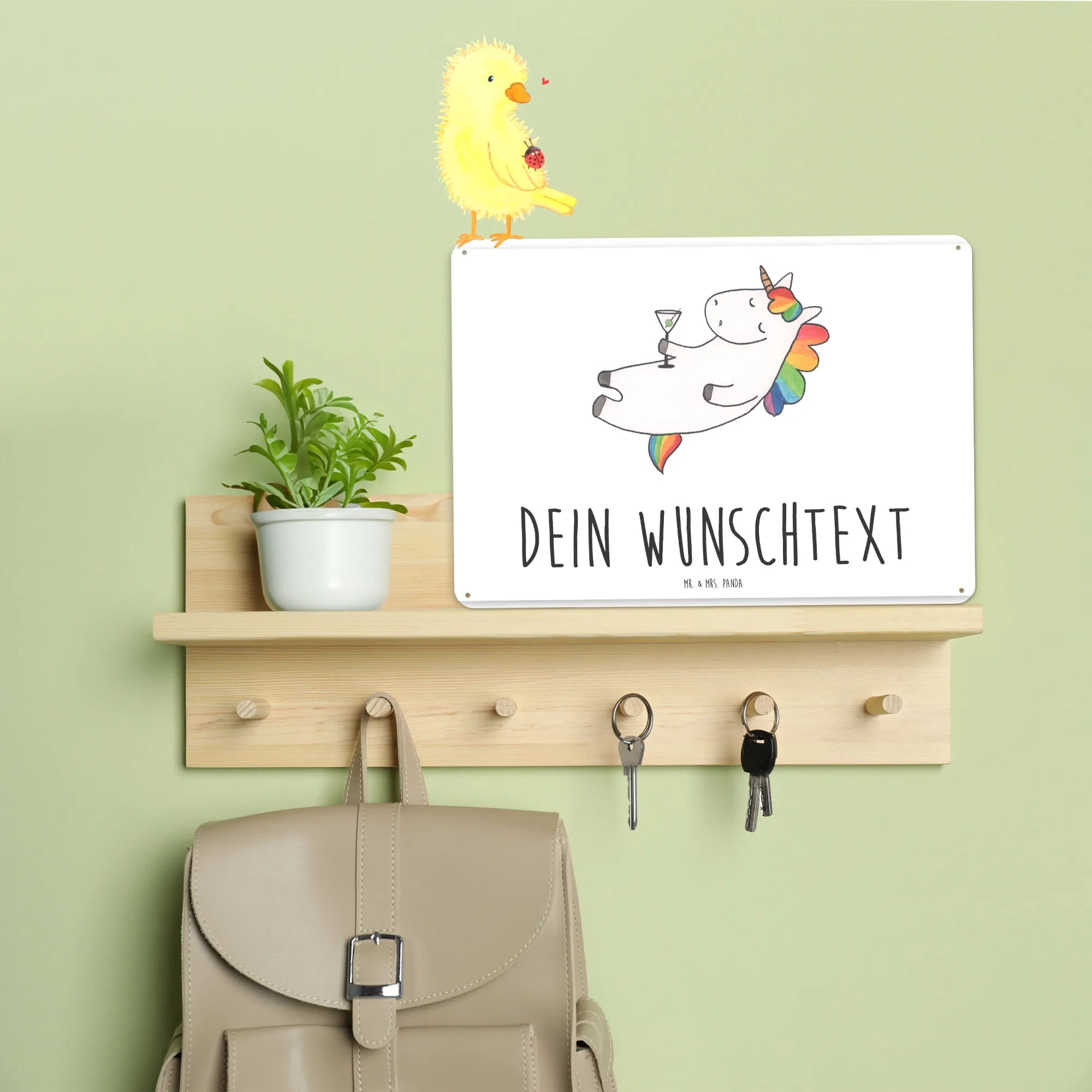 Das personalisierte Blechschild mit dem zauberhaften Motiv "Einhorn Cocktail" aus der Einhorn-Kollektion von Mr. & Mrs. Panda ist der perfekte Hingucker für jeden Raum! Ob für die Wand oder die Tür – dieses Schild bringt nicht nur Freude, sondern auch eine Portion Glitzer in dein Leben. Mit jedem Blick auf das fröhliche Einhorn, das entspannt einen bunten Cocktail hält, wird die Erinnerung an viele lustige Partys und unvergessliche Momente wach. Das Schild ist ideal als Geschenk für die beste Freundin, die genau weiß, wie man das Leben feiert! Perfekt für Geburtstage, Einladungen zu einer Cocktailparty oder einfach als kleine Aufmerksamkeit zwischendurch. Auch als witzige Deko für den Mädelsabend ist es hervorragend geeignet!