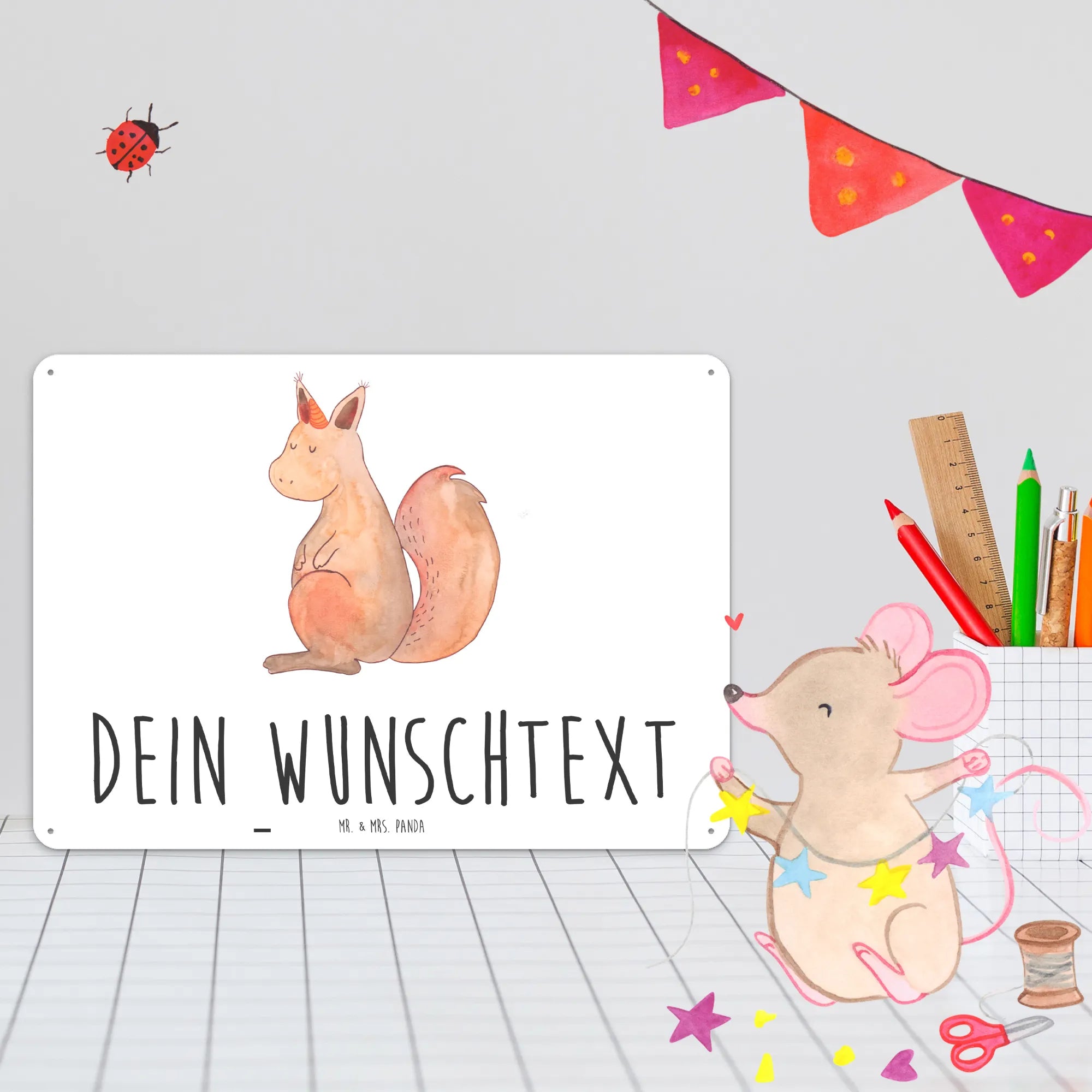 Entdecke unser personalisiertes Blechschild "Einhörnchen Glaube" aus der zauberhaften Einhorn-Kollektion von Mr. & Mrs. Panda! 🦄 Dieses liebevoll gestaltete Schild bringt nicht nur Freude in dein Zuhause, sondern ist auch ein ideales Geschenk für all diejenigen, die an Magie und das Besondere im Leben glauben. Mit einem süßen Eichhörnchen, das ein Horn trägt, und dem inspirierenden Spruch "Ich glaubte an mich. Und wurde ein Einhörnchen." wird dieses Schild zum perfekten Blickfang in jeder Wanddekoration oder an deiner Tür.