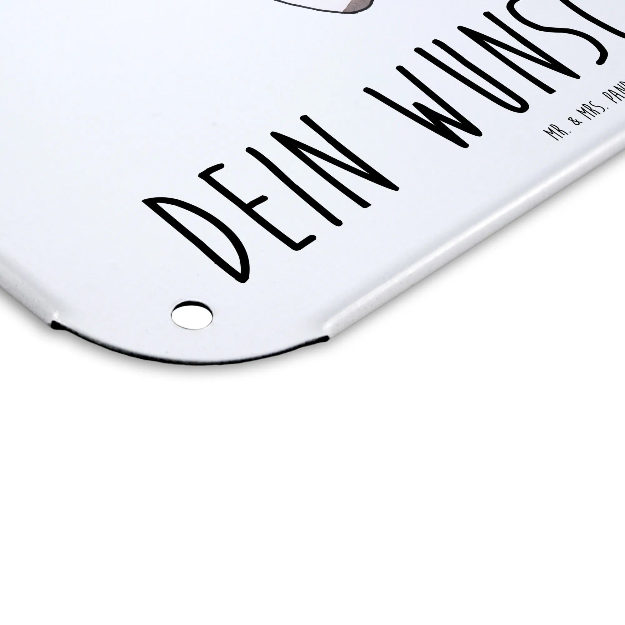 Entdecke das wunderschöne und edle personalisierte Blechschild von Mr. & Mrs. Panda! Mit einem Maß von 70 mm x 148 mm x 105 mm passt es perfekt an jede Wand oder Tür. Dieses Schild ist aus hochwertigem Stahlblech gefertigt und hat eine seidenmatte Oberfläche, die Eleganz ausstrahlt. Jedes Schild kann mit deinem Wunschnamen oder Wunschtext personalisiert werden, was es zu einem einzigartigen Geschenk für Freunde und Familie macht. Dank der vier Bohrungen wird die Befestigung zum Kinderspiel. Ob als charmante Wanddeko oder als originelle Geschenkidee, dieses personalisierte Blechschild wird sicher für Freude sorgen. Zudem ist es pflegeleicht und lässt sich einfach mit einem feuchten Tuch reinigen. Es kommt mit abgerundeten Ecken und umgefalzten Kanten, damit es sowohl schön als auch sicher ist.