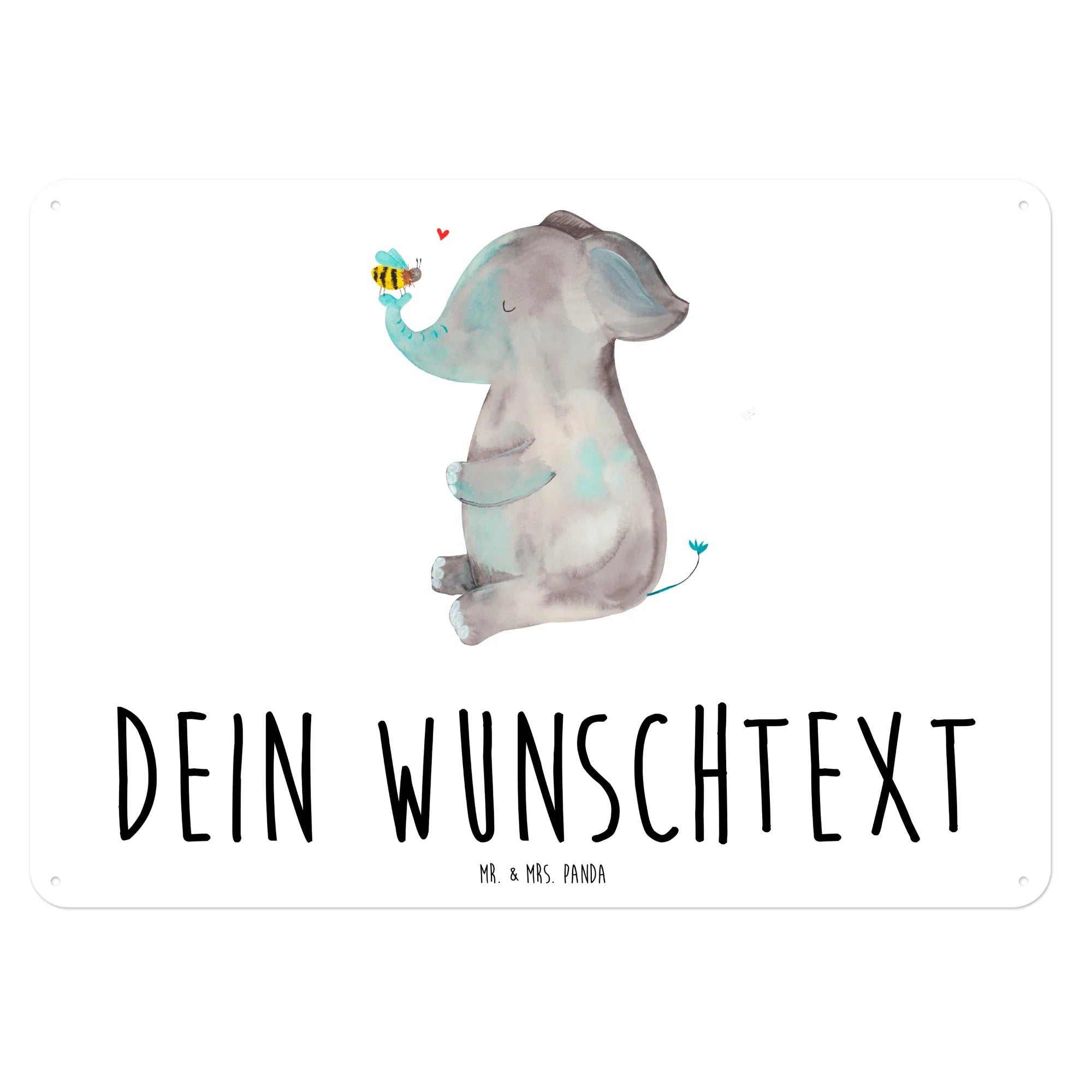 Personalisiertes Blechschild Elefant & Biene - DIN A3 - Weiß