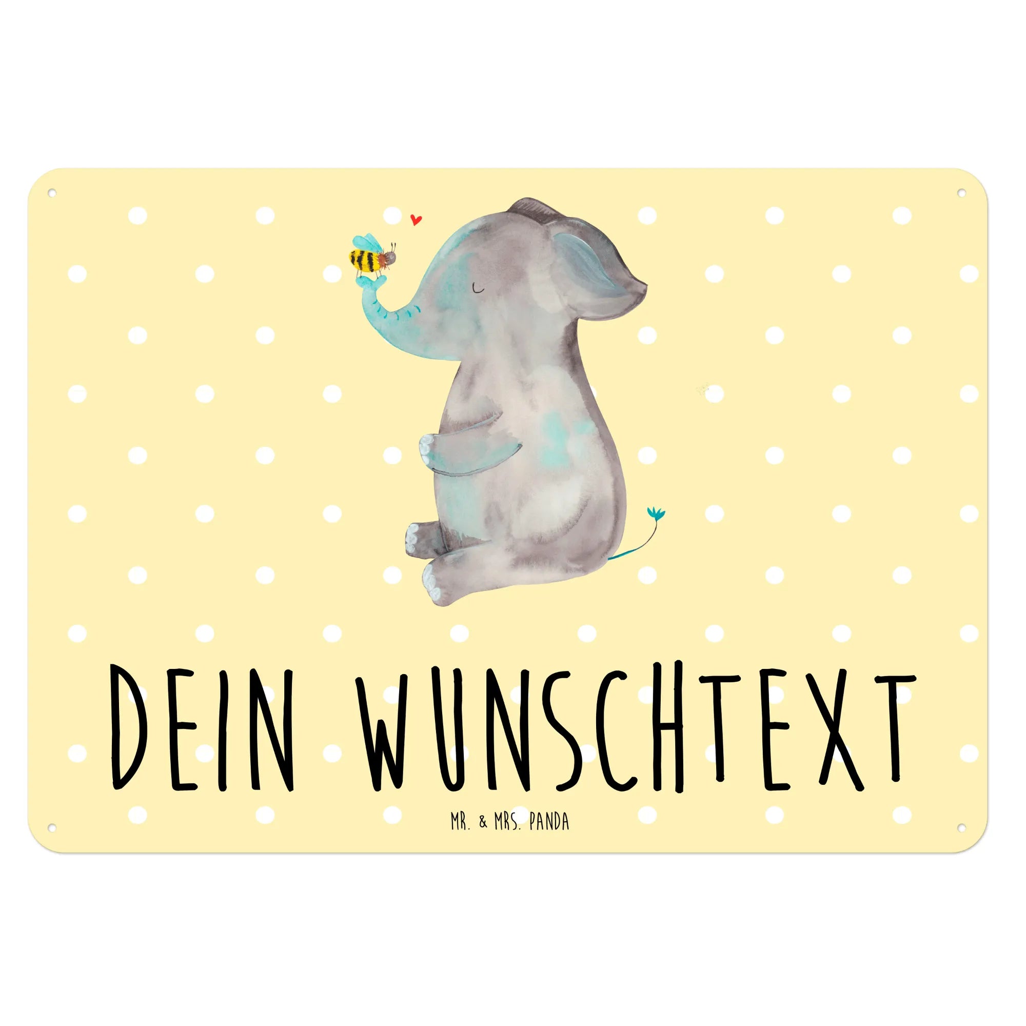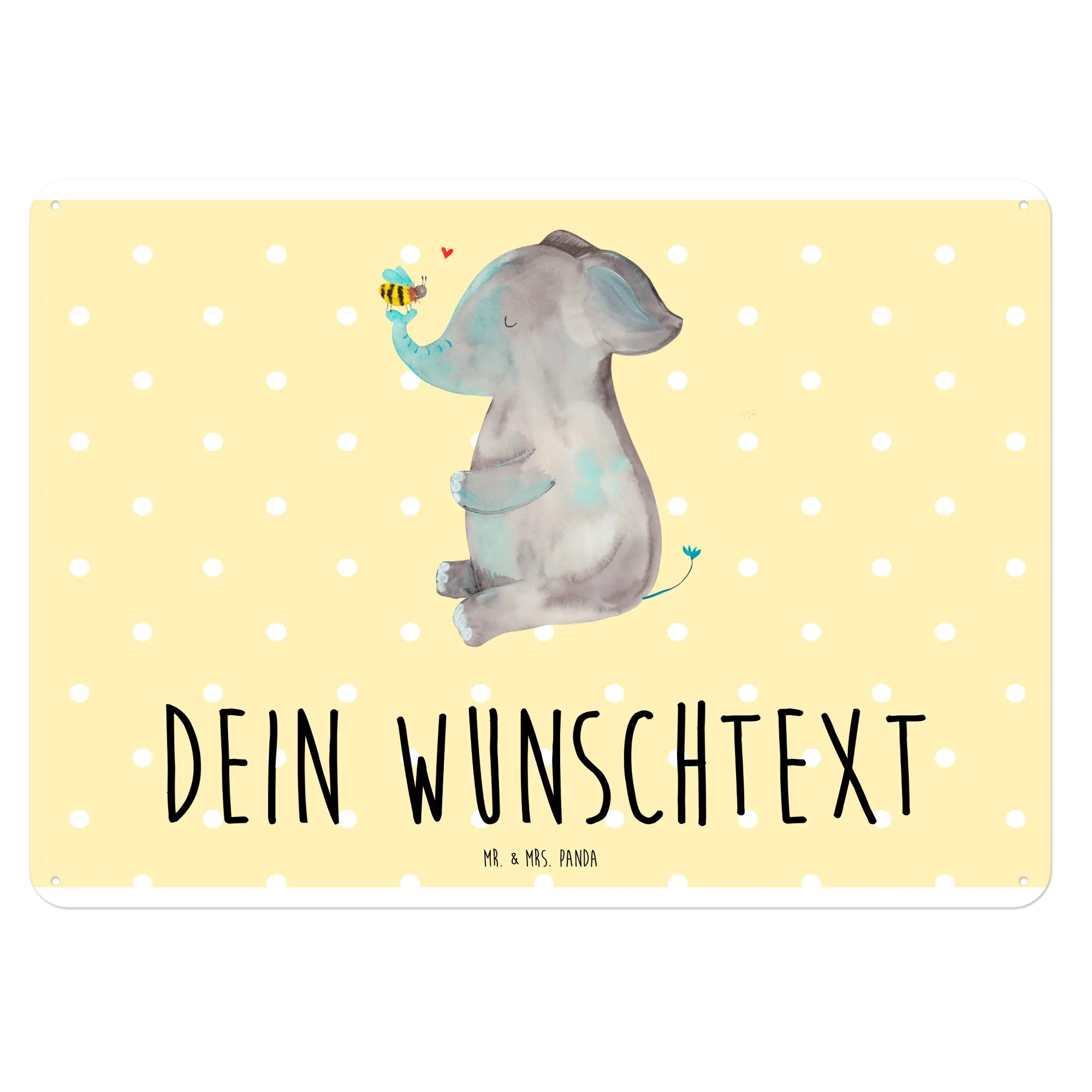 Entdecke das wunderbare personalisierte Blechschild "Elefant & Biene" aus der Kollektion Small World von Mr. & Mrs. Panda – das perfekte Geschenk für jeden Anlass!