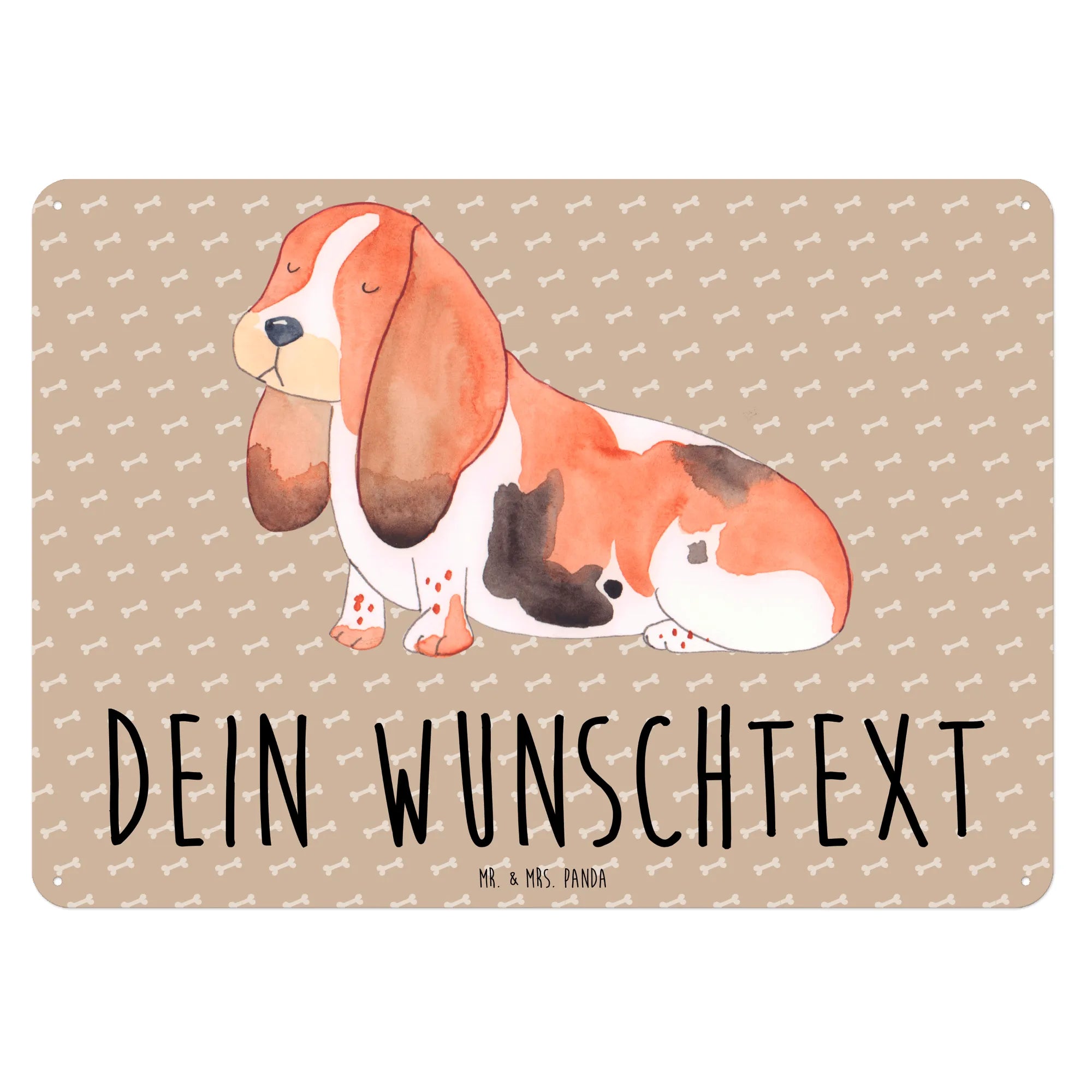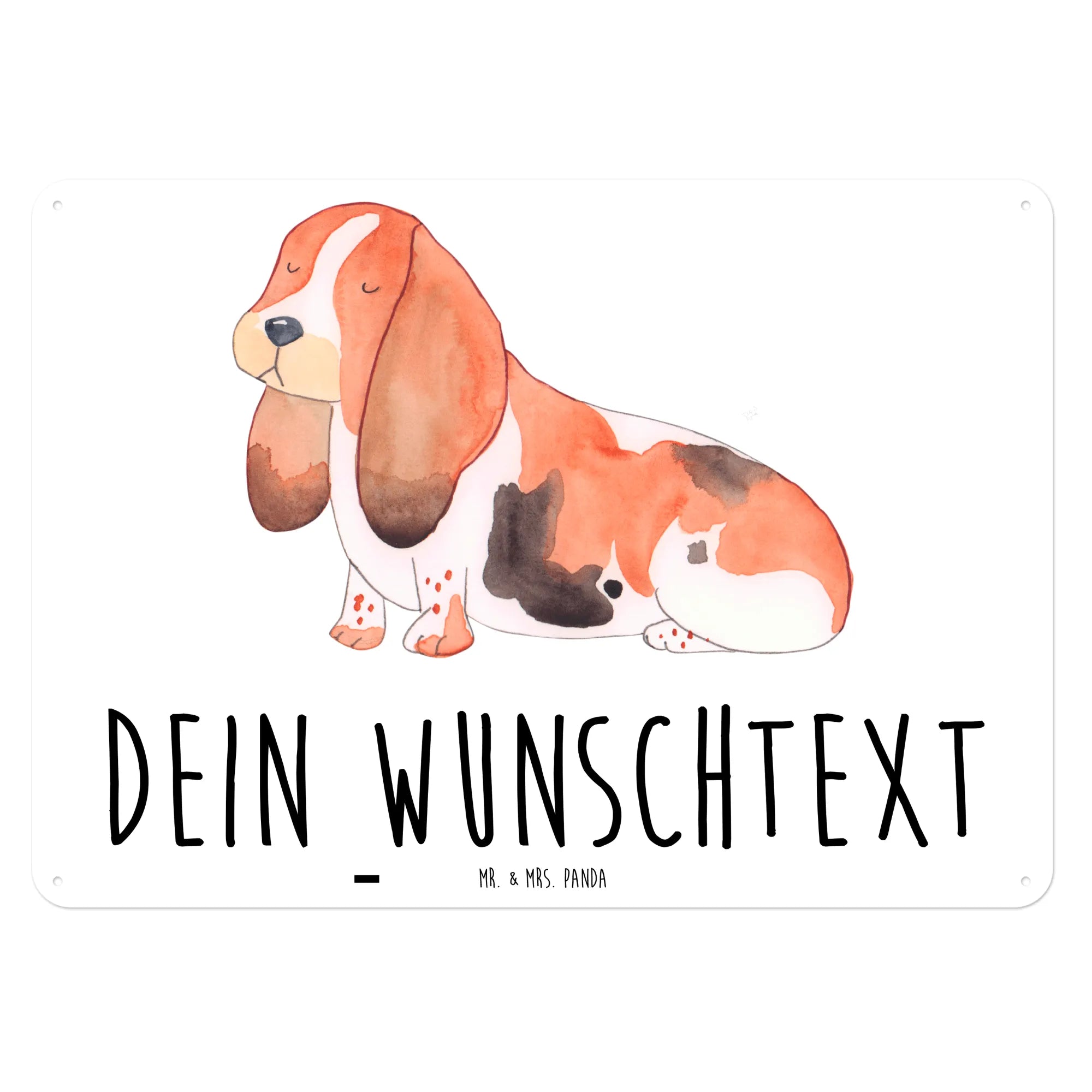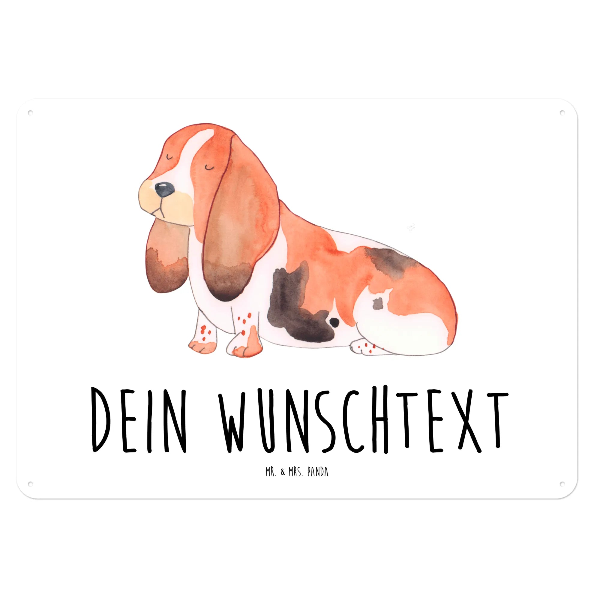 Entdecke das personalisierte Blechschild mit dem süßen Basset Hound Motiv aus der Hunde Kollektion von Mr. & Mrs. Panda!