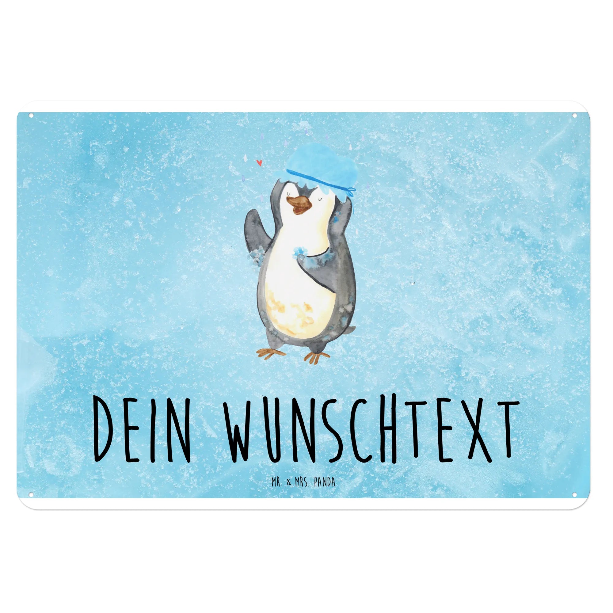 Mr. & Mrs. Panda präsentiert: Personalisiertes Blechschild „Pinguin duscht“