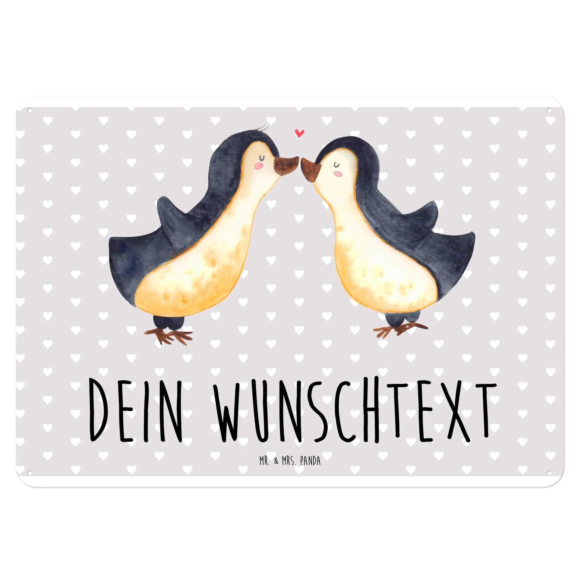 Das personalisierte Blechschild Pinguin Liebe von Mr. & Mrs. Panda ist das perfekte Geschenk für all jene, die ihre Liebe stilvoll ausdrücken möchten. Mit einem zauberhaften Motiv von zwei verliebten Pinguinen, die sich sanft an den Schnäbeln berühren, vermittelt dieses Schild eine herzerwärmende Botschaft.
