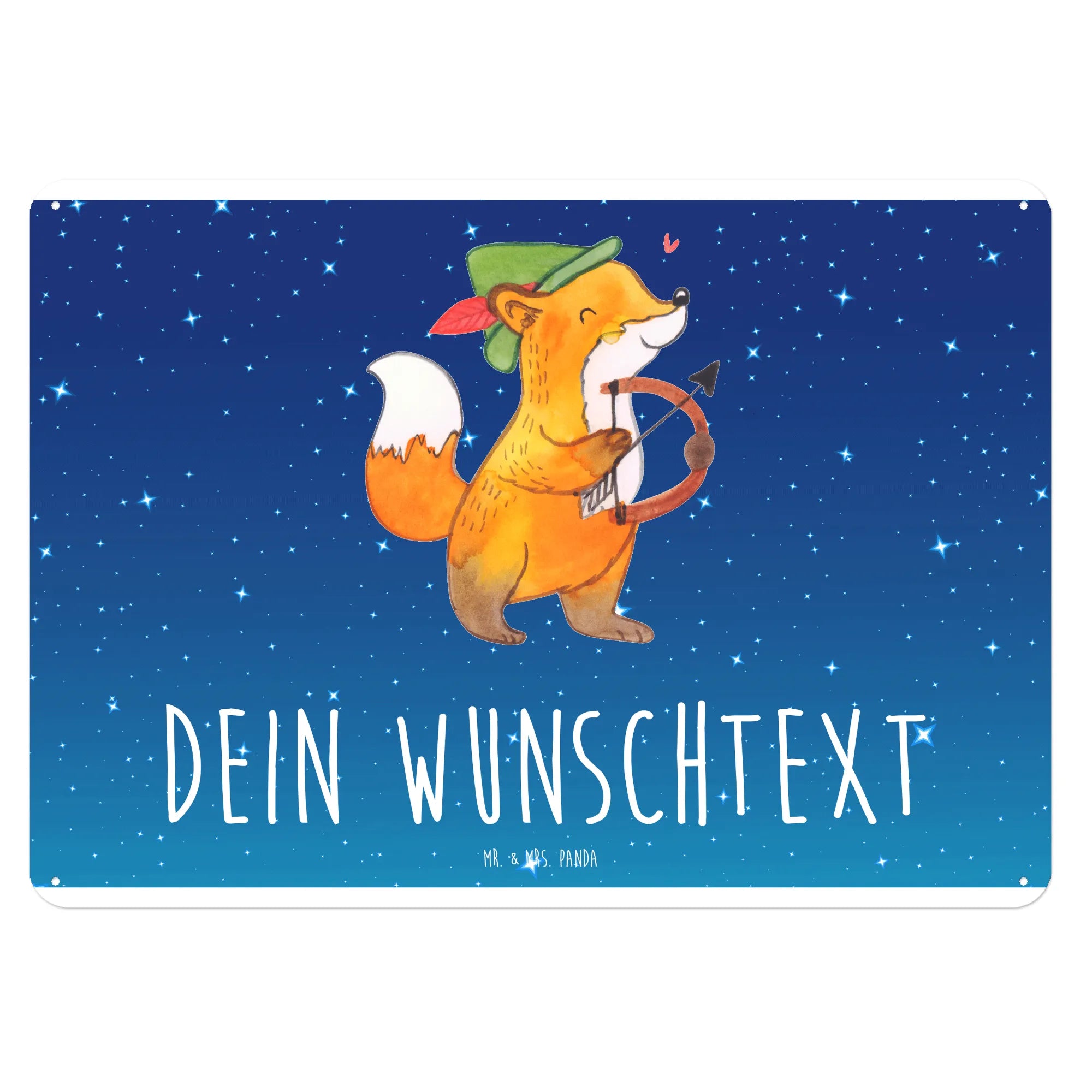 Das personalisiertes Blechschild Schütze Astrologie von Mr. & Mrs. Panda ist das perfekte Geschenk für alle, die sich mit ihrem Sternzeichen identifizieren. Dieses wunderschöne Schild, handgezeichnet von Mrs. Panda, zeigt einen charmanten Fuchs im Schütze-Outfit, der voller Energie ist und mit seinem Bogen bereit ist, das Leben zu feiern.