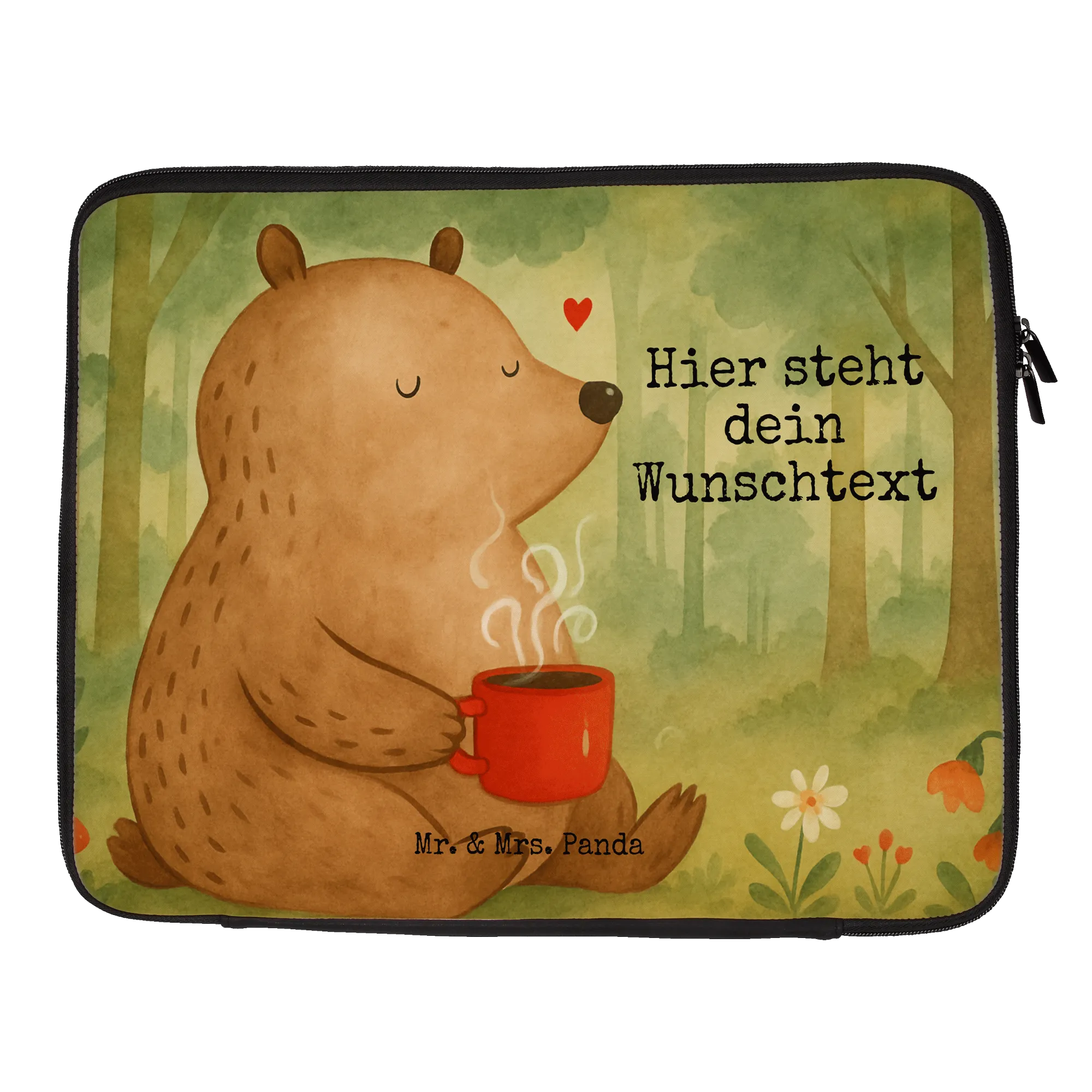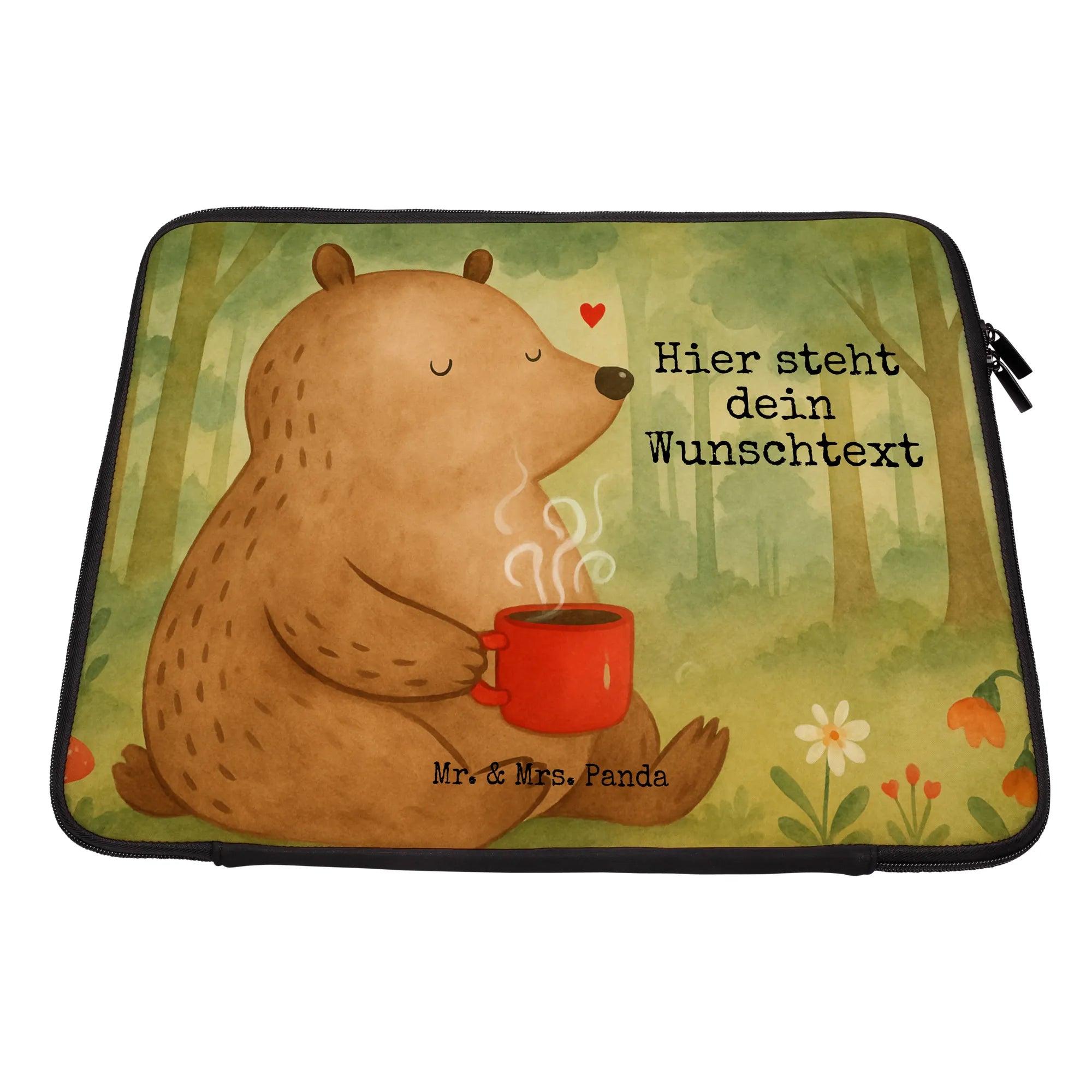 Personalisierte Notebook Tasche Bär Morgenkaffee Design – Mr. & Mrs. Panda