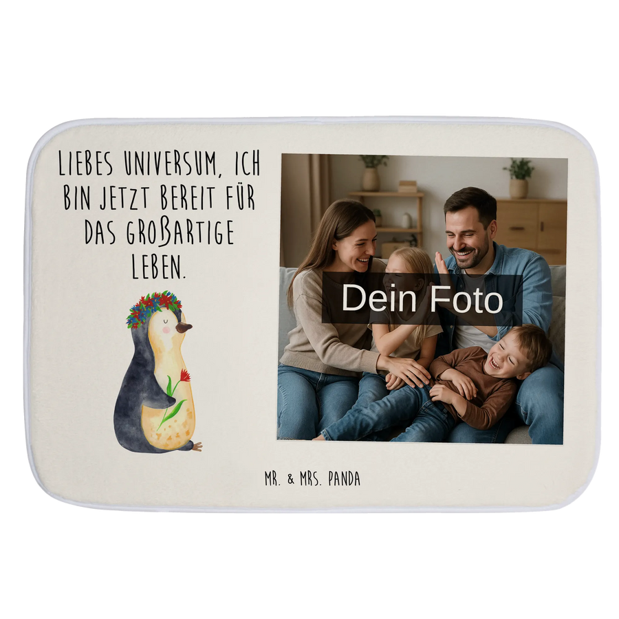 Personalisierte Foto Badematte Pinguin Blumen