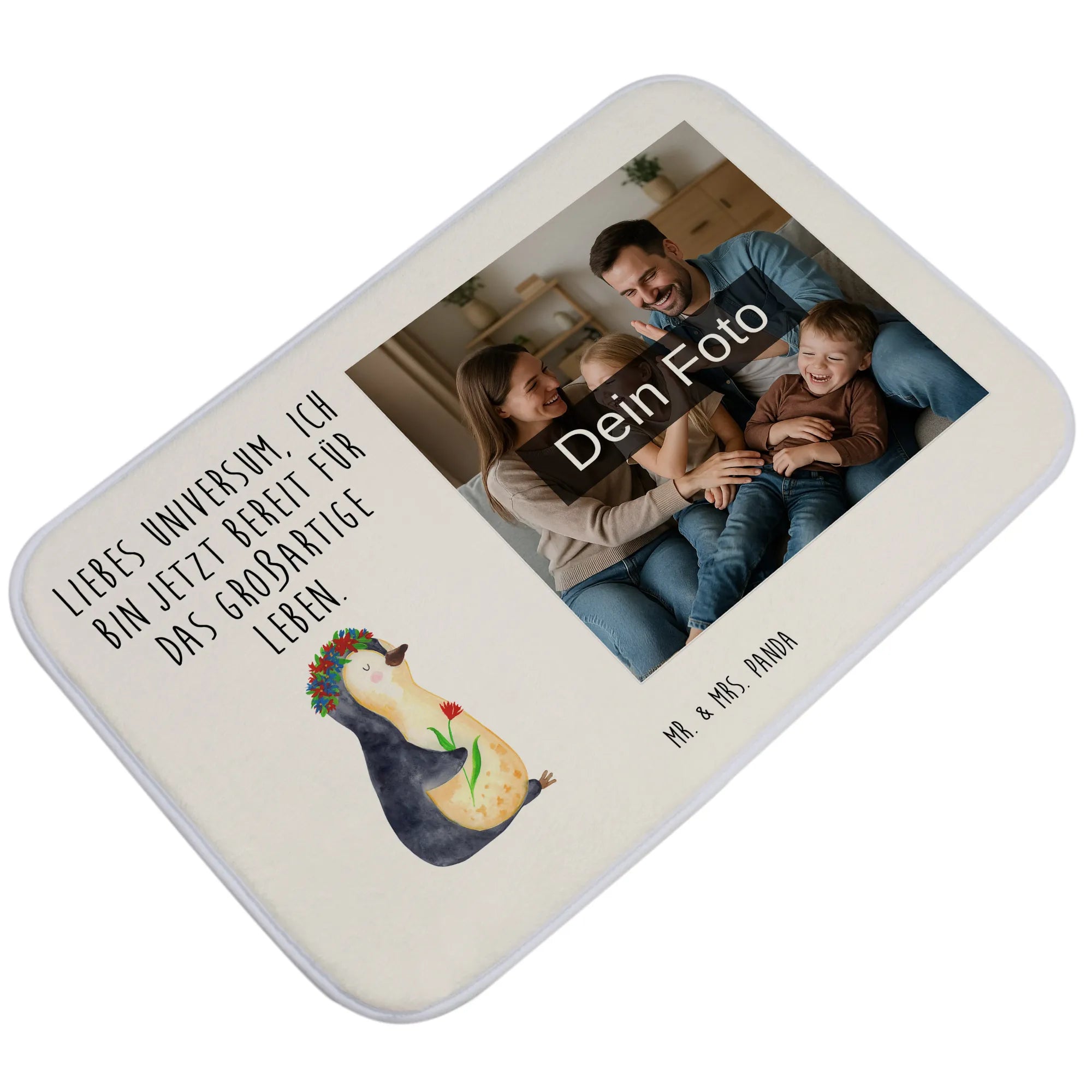 Gönn dir einen Hauch von Gemütlichkeit in deinem Badezimmer mit der personalisierten Foto Badematte von Mr. & Mrs. Panda! Die großzügigen Maße von 590 mm x 400 mm bieten nicht nur Komfort, sondern auch Sicherheit dank der antirutsch Gummibeschichtung. Lass dein Lieblingsfoto auf die besonders flauschige Premium Kunstfaser drucken und bringe so deine besten Erinnerungen in deinen Alltag. Die Matte ist nicht nur ein schöner Anblick, sondern auch extrem saugstark und sorgt dafür, dass du nach dem Duschen schnell trockene Füße bekommst. Das liebevoll gestaltete Design und die Möglichkeit der Personalisierung machen diese Badematte zu einem ganz persönlichen Geschenk, für dich selbst oder deine Liebsten. Achte darauf, dass das hochgeladene Foto eine hohe Auflösung hat, damit das Druckergebnis perfekt aussieht. Leichte Pflege ist garantiert, denn die Badematte ist bei 30°C waschbar in der Maschine. Verwandle dein Badezimmer mit dieser einzigartigen Matte in eine Wohlfühloase!