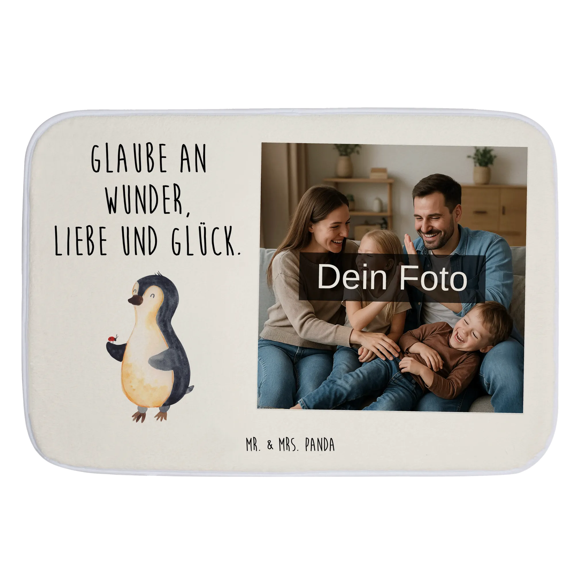 Personalisierte Foto Badematte Pinguin Marienkäfer